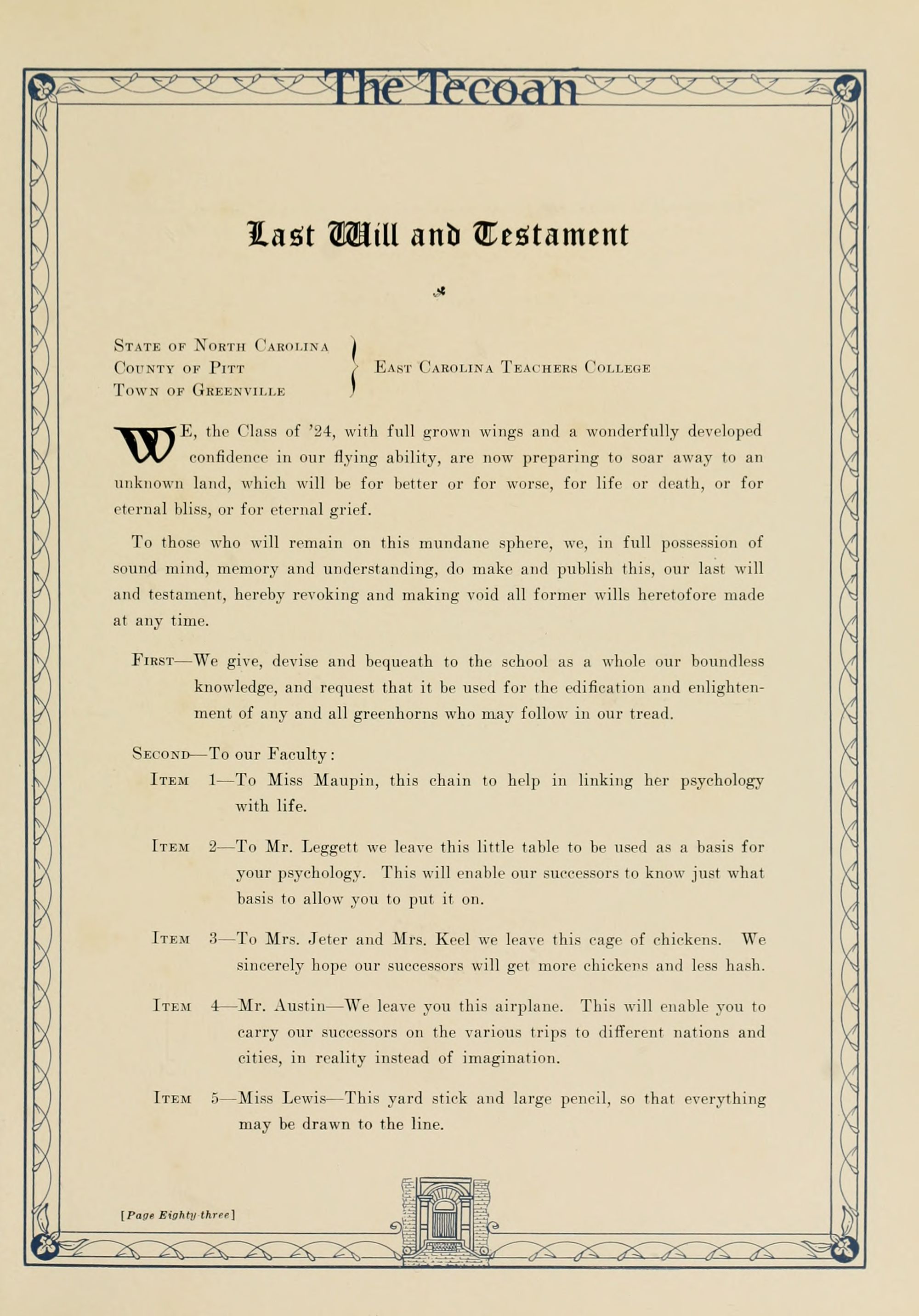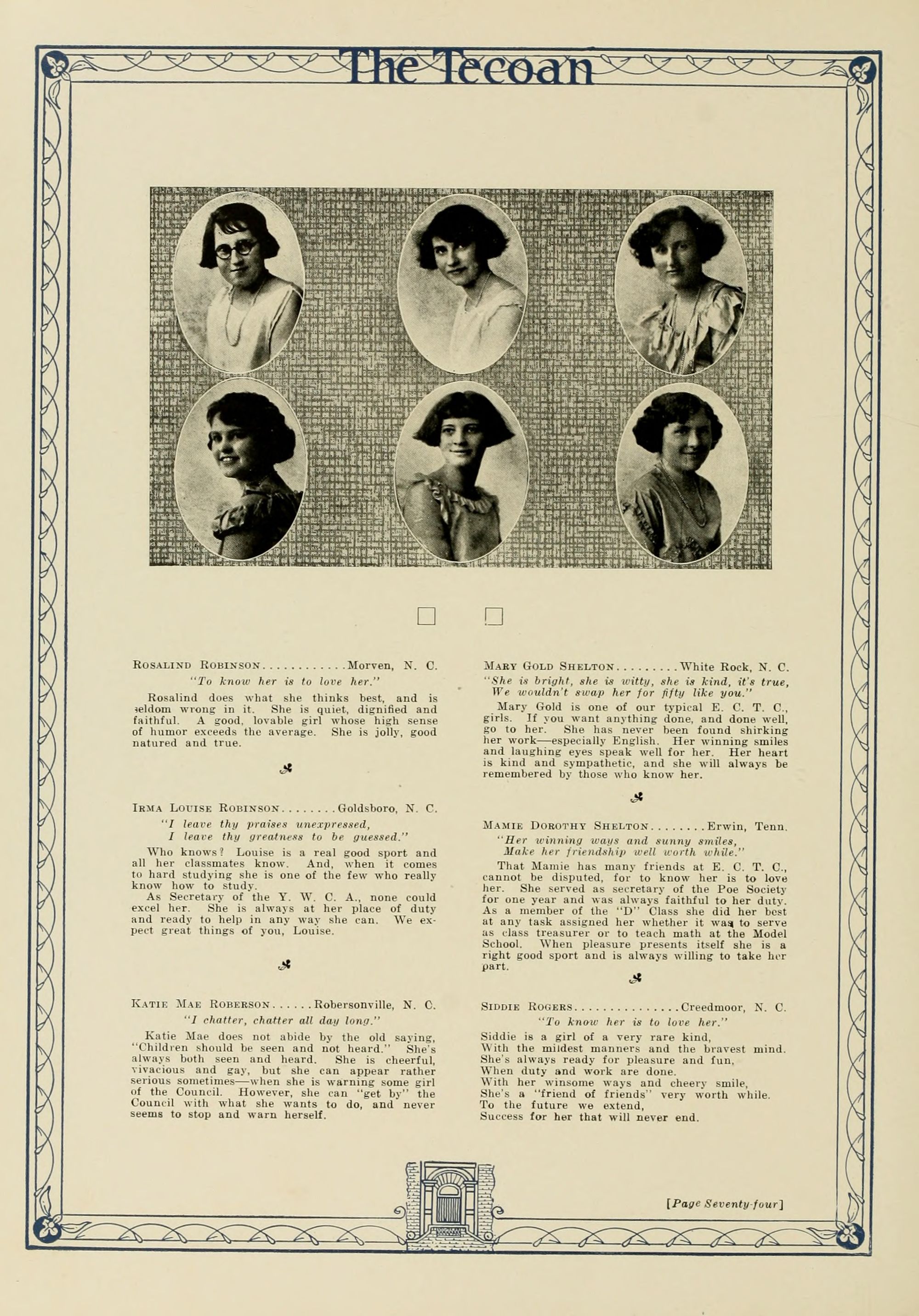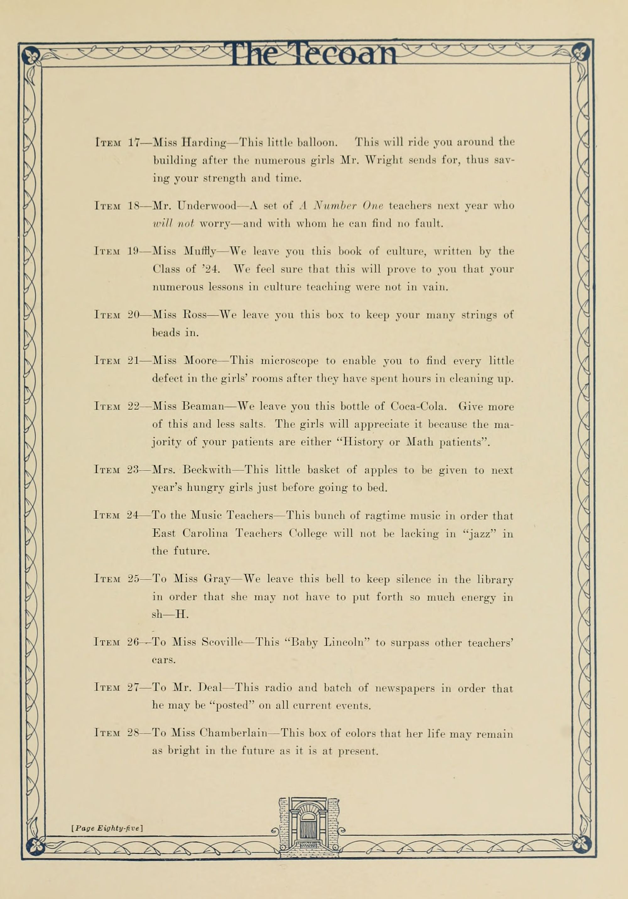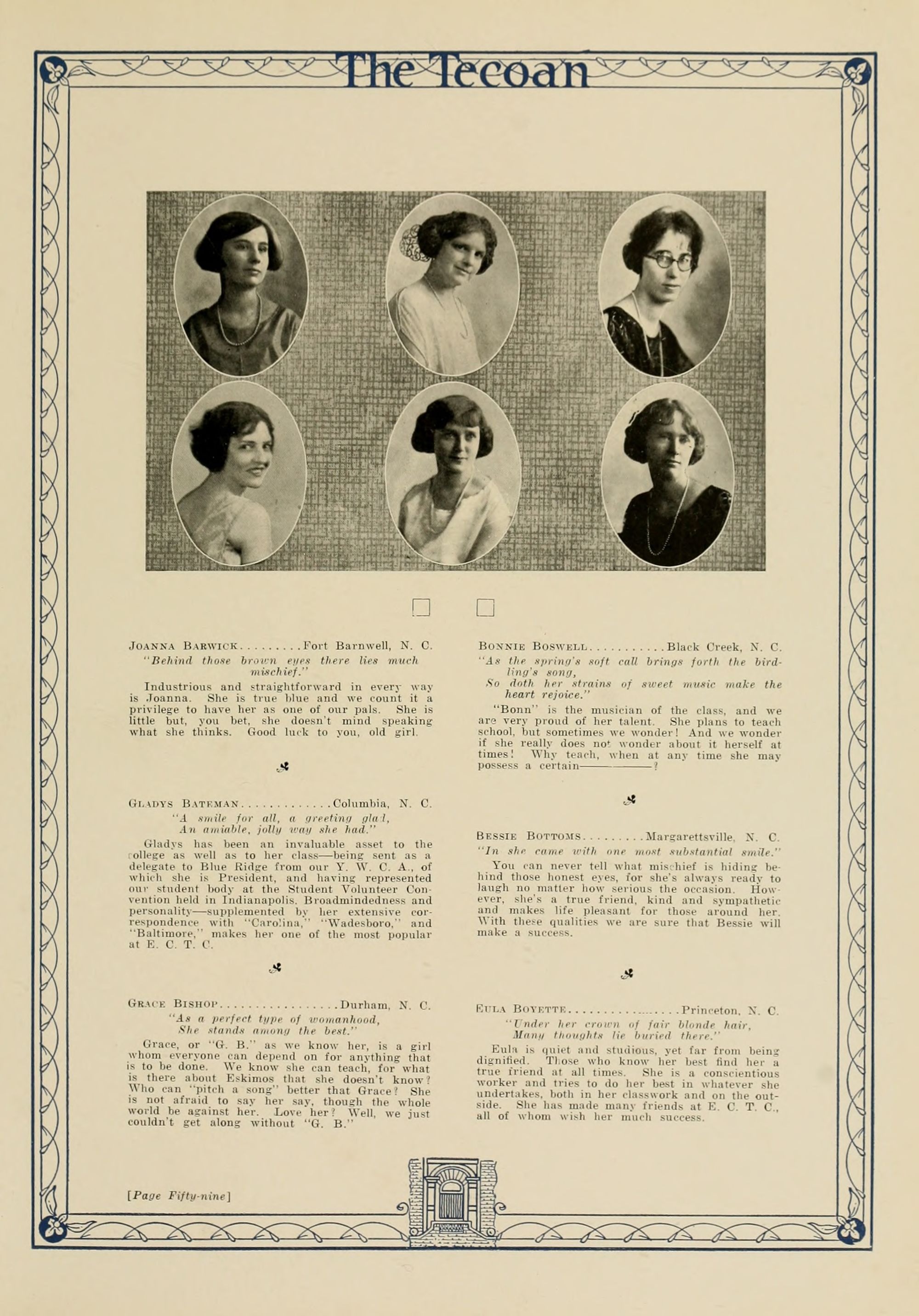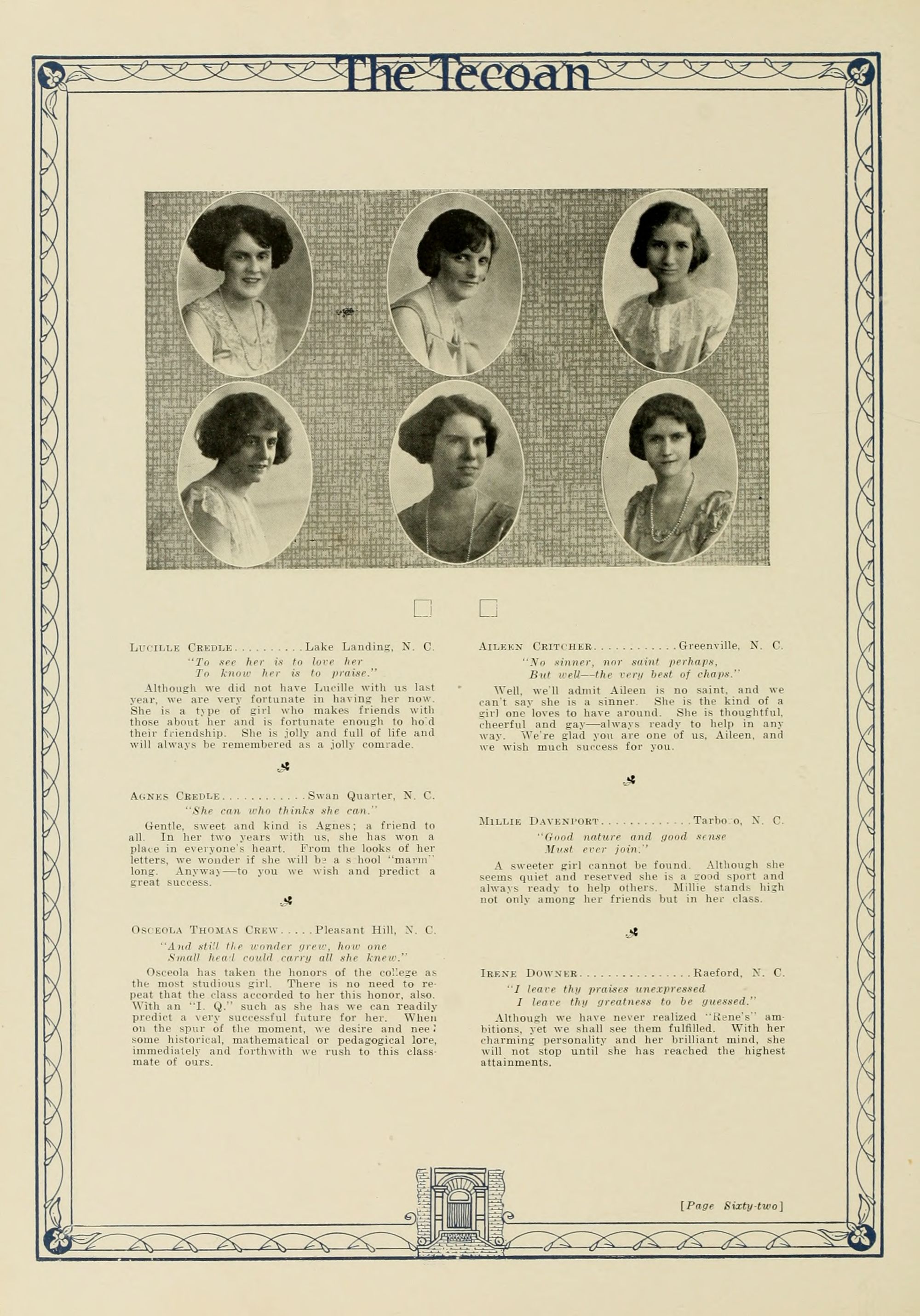 In presenting the second volume of The Tecoan, the students of East Carolina Teachers College offer no apologies for the contents of the book; it is but a brief chronicle of the everyday events and scenes of our college life. Had life at Teachers College been different, the book would have been different. Every effort has been put forth to give a picture of conditions as they actually existed during the school year 1923-'24; it is the only pictorial record of the year's events, therefore, we believe it will be valuable for future reference.