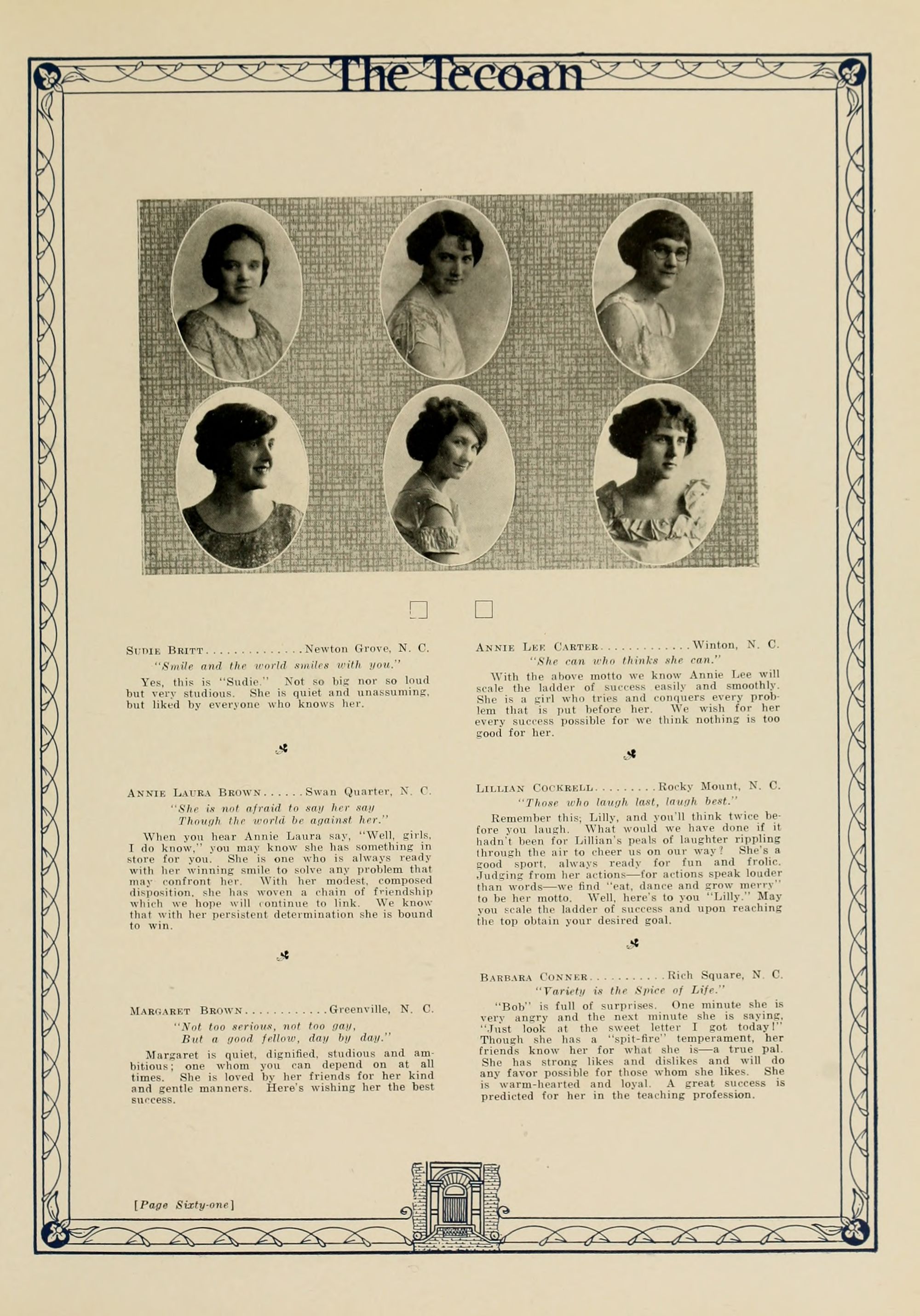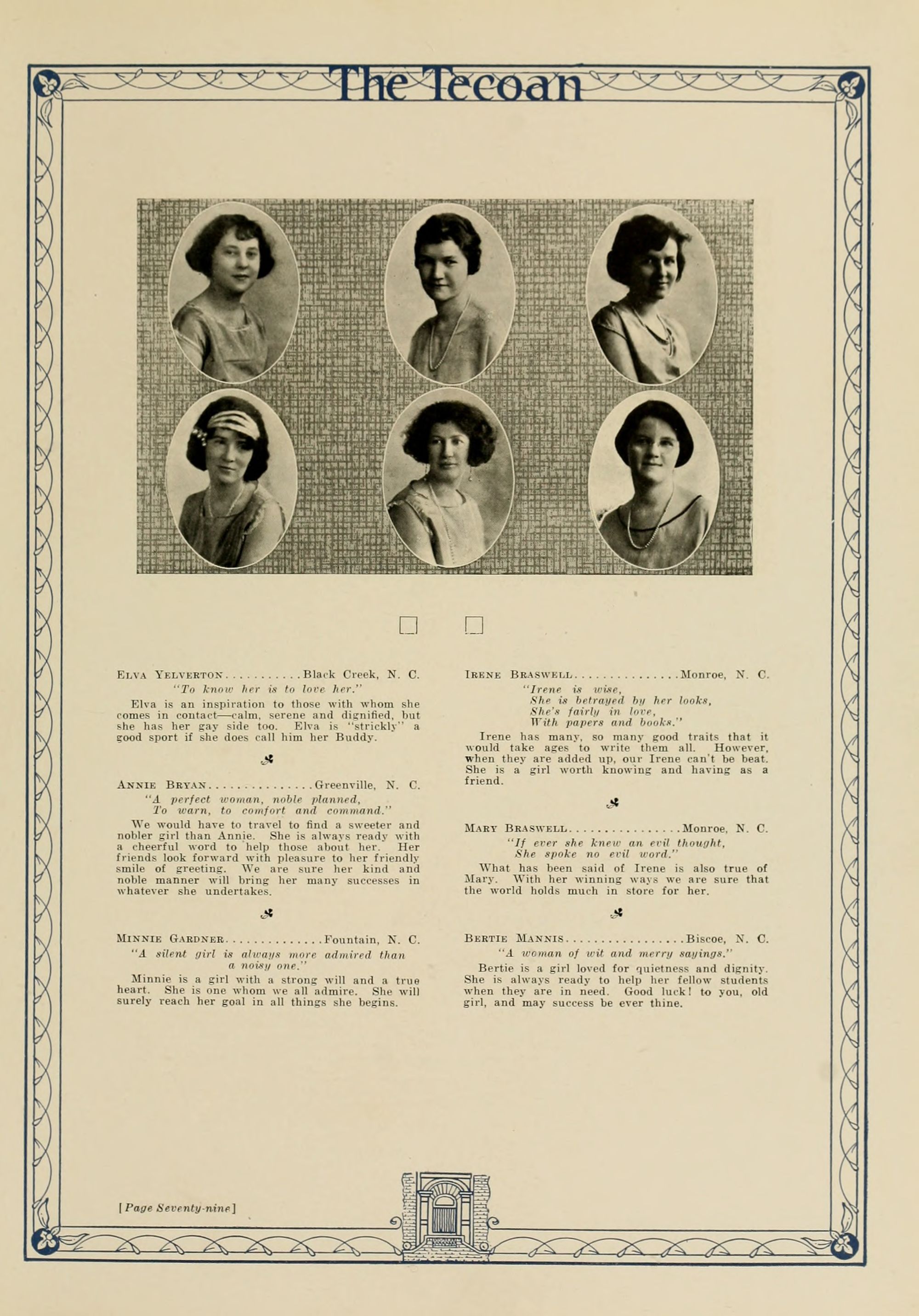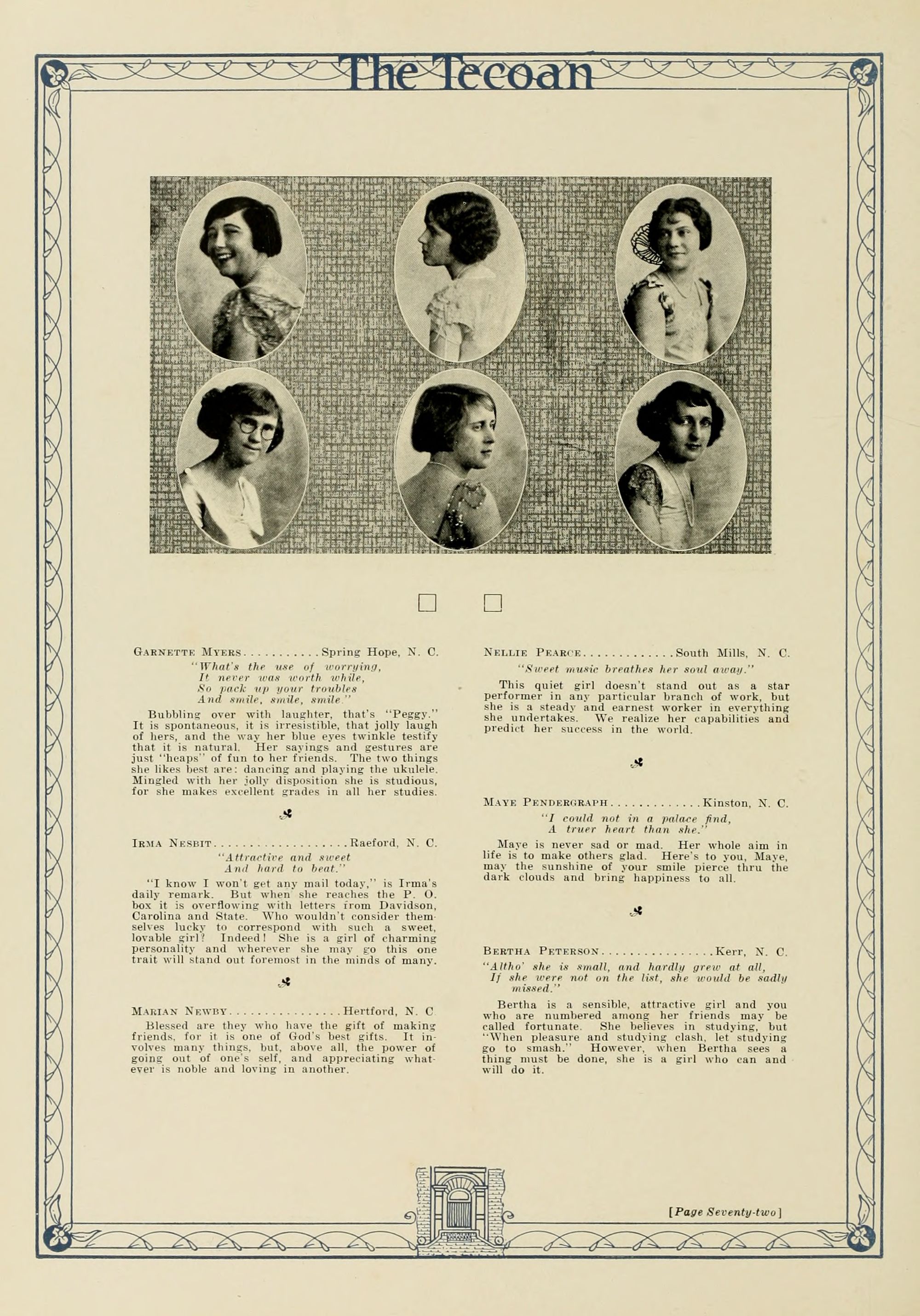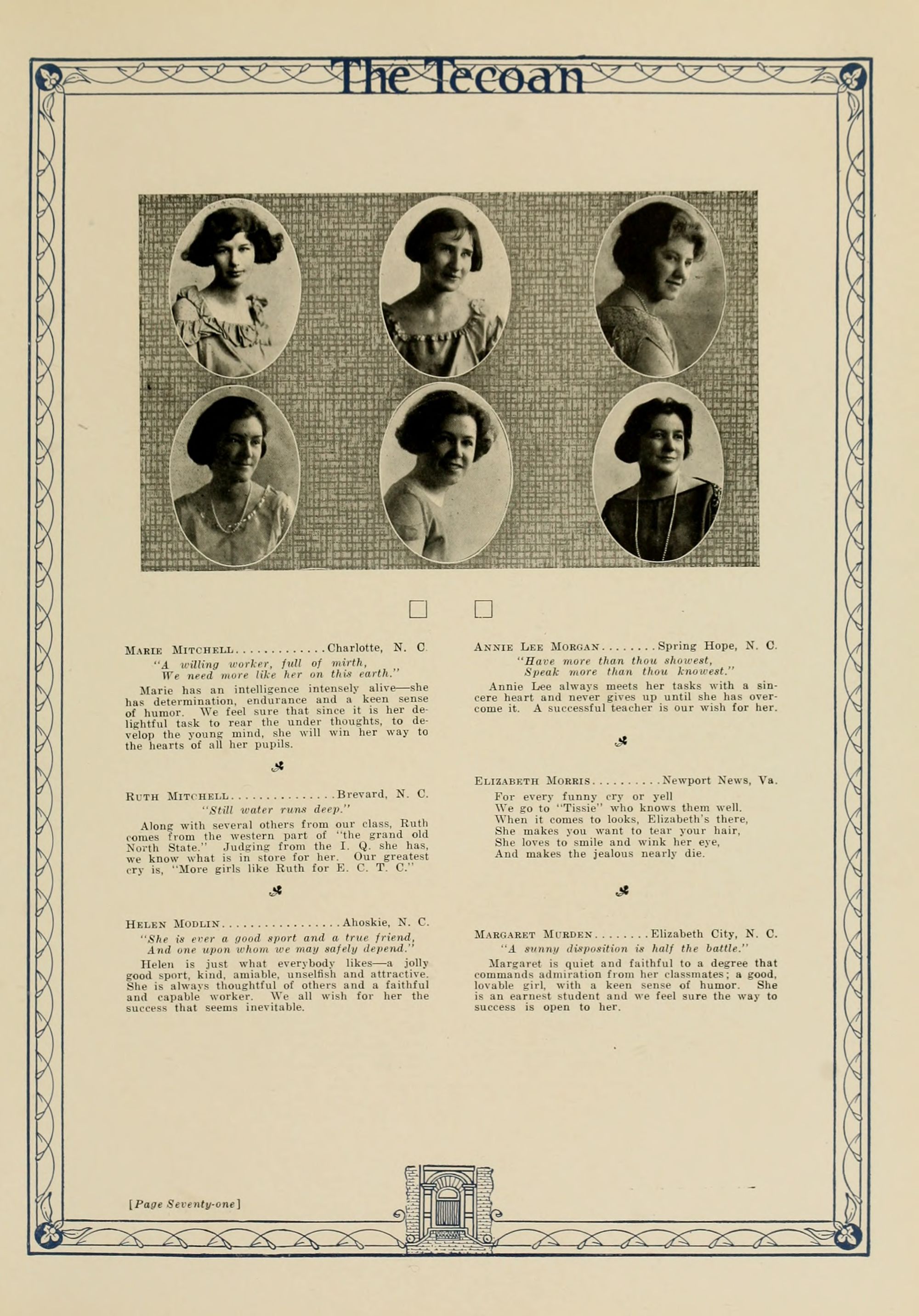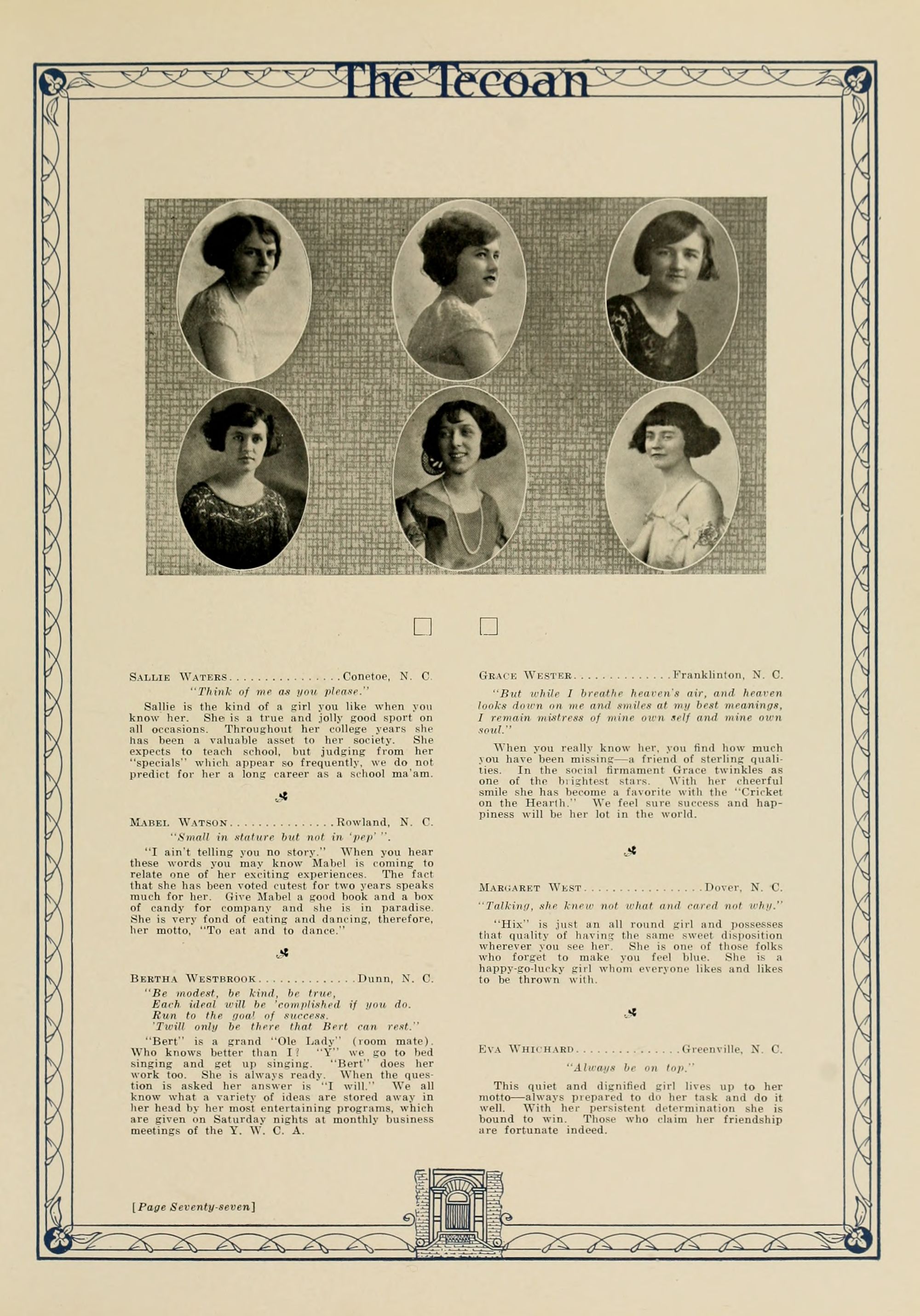 In presenting the second volume of The Tecoan, the students of East Carolina Teachers College offer no apologies for the contents of the book; it is but a brief chronicle of the everyday events and scenes of our college life. Had life at Teachers College been different, the book would have been different. Every effort has been put forth to give a picture of conditions as they actually existed during the school year 1923-'24; it is the only pictorial record of the year's events, therefore, we believe it will be valuable for future reference.