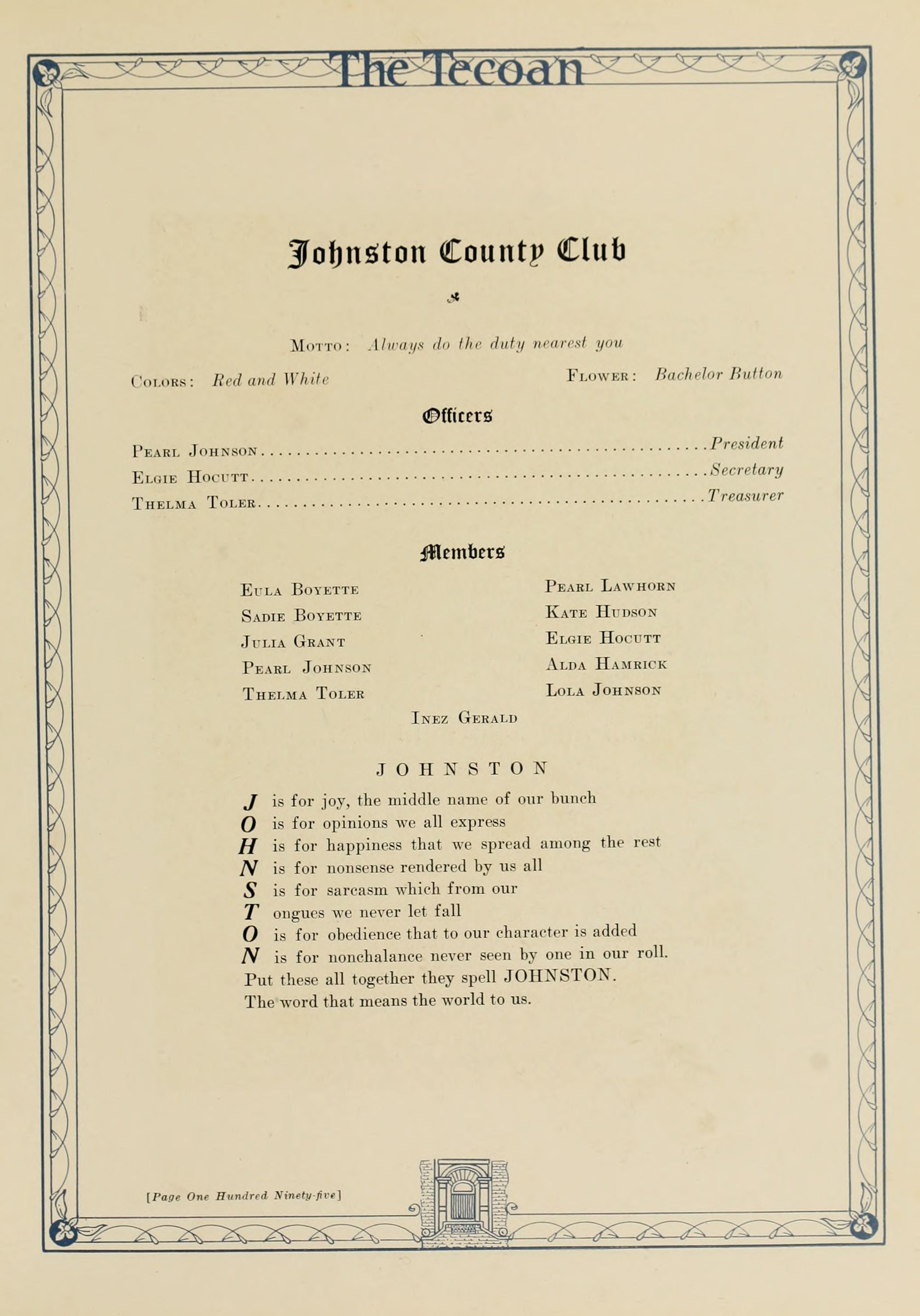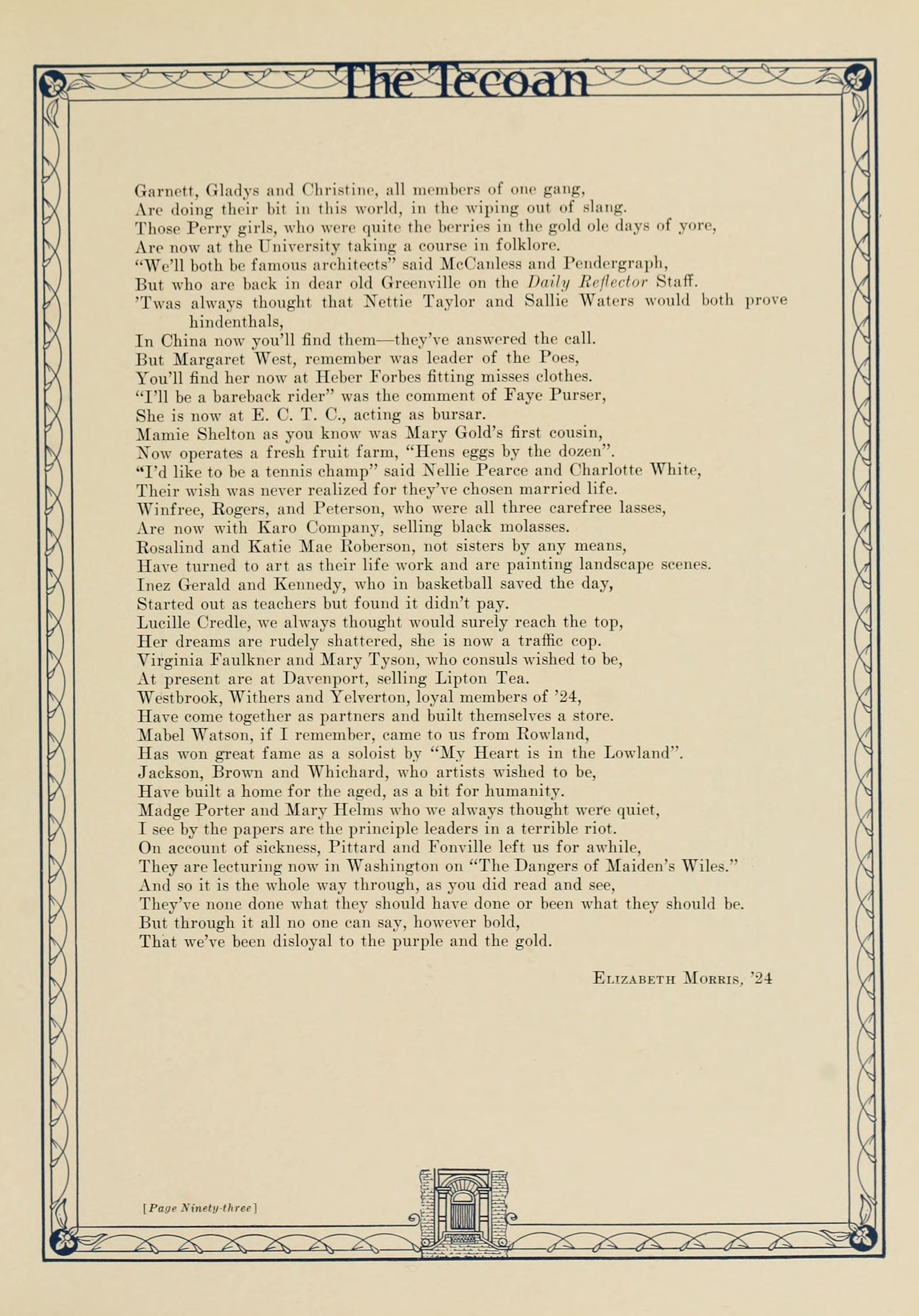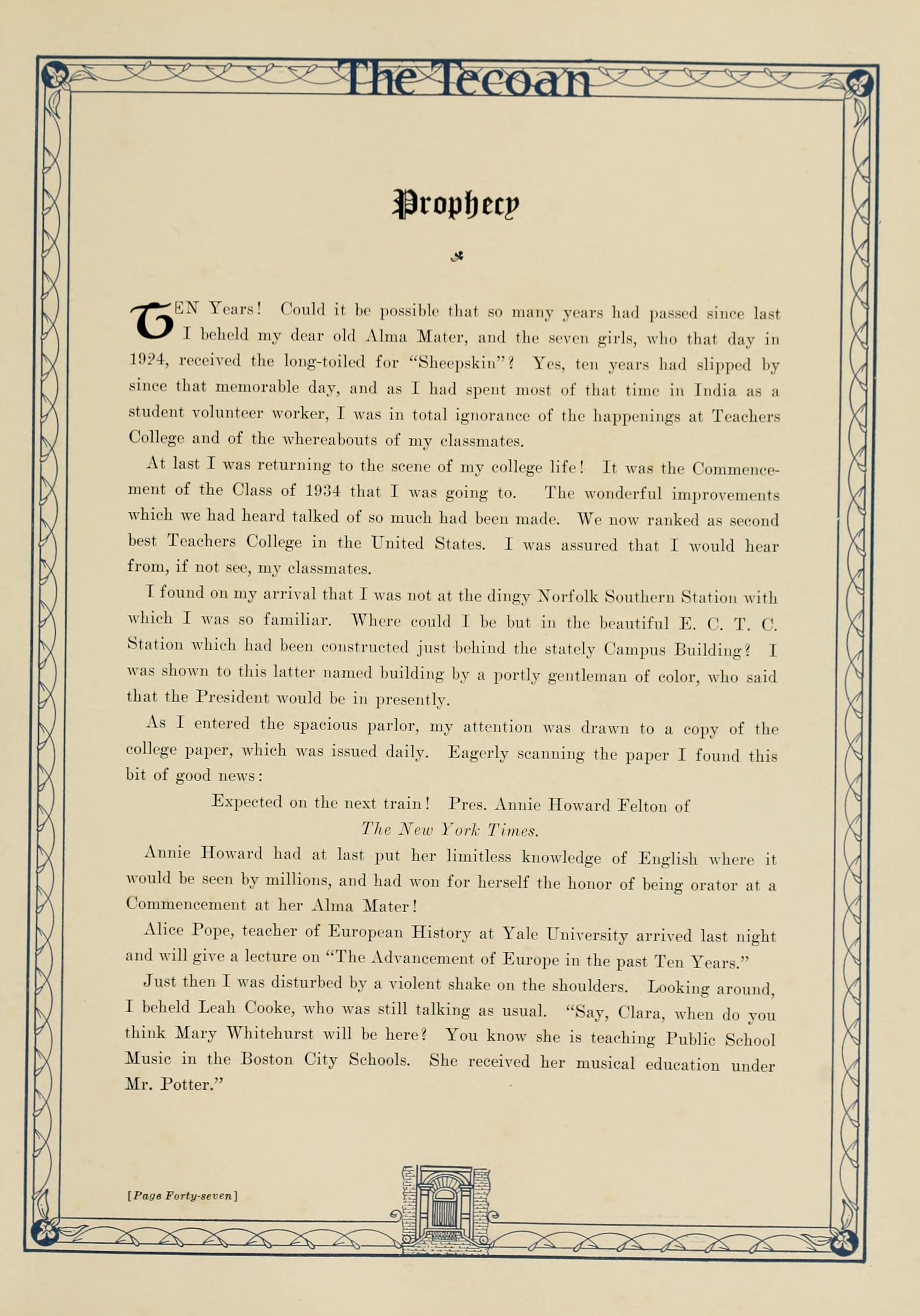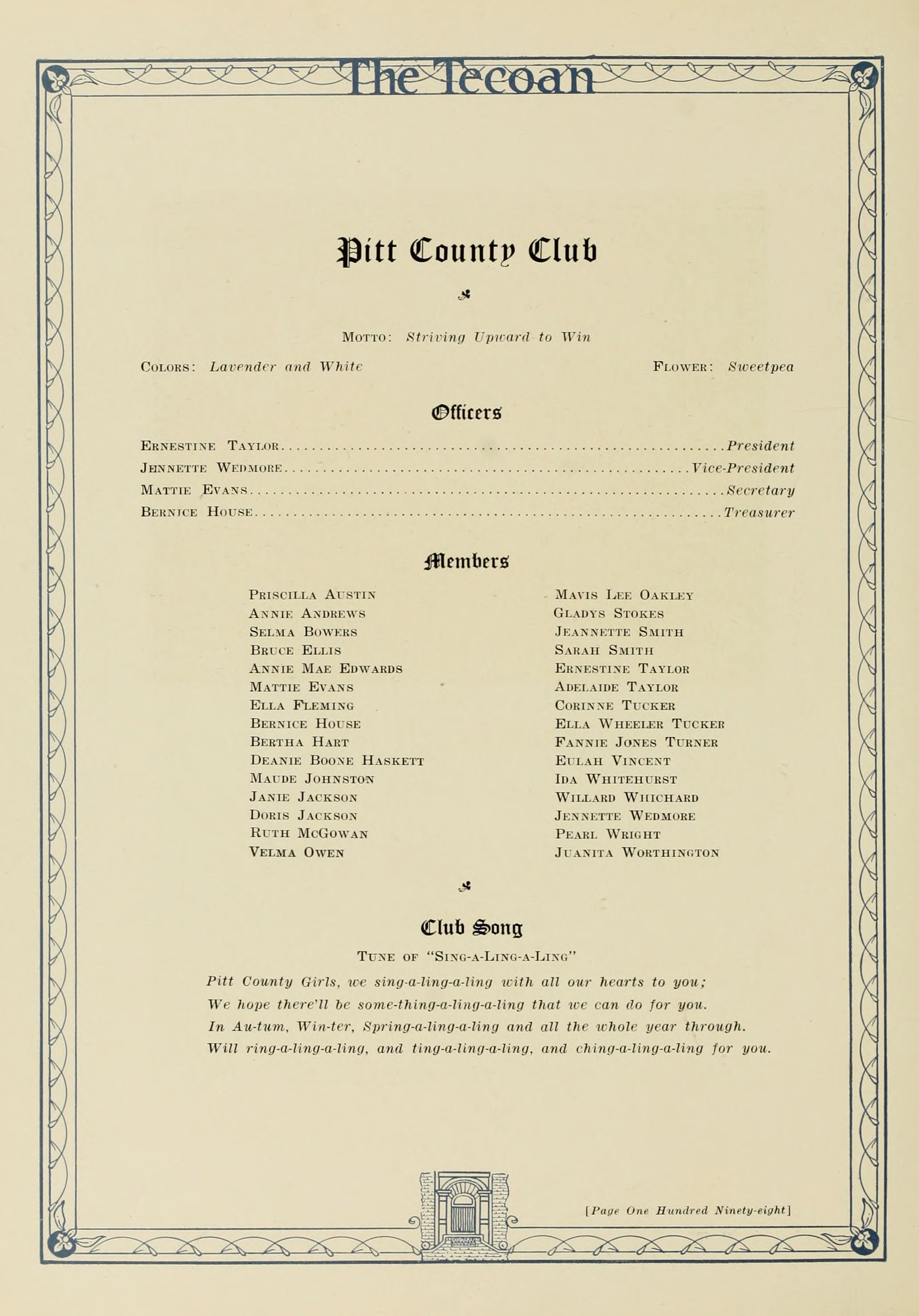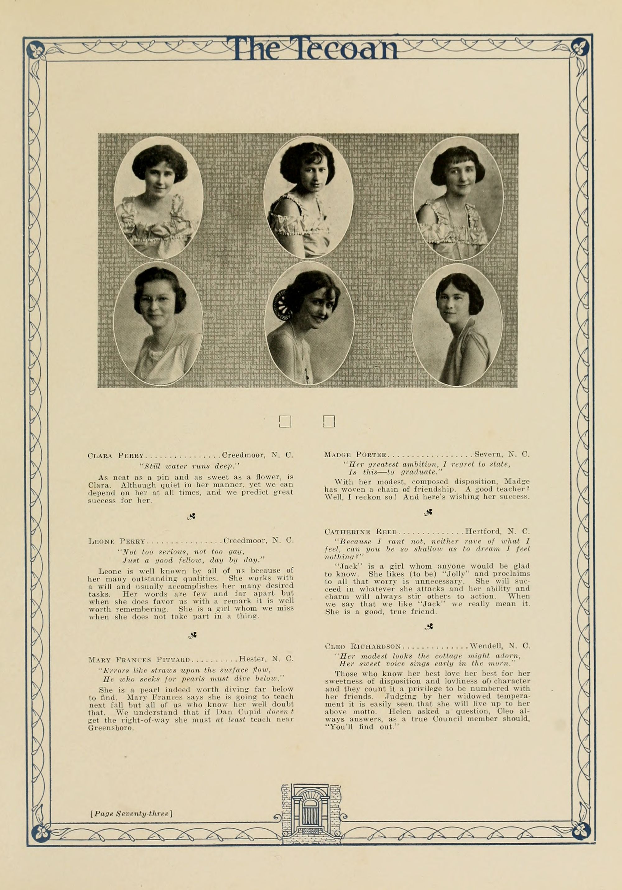 In presenting the second volume of The Tecoan, the students of East Carolina Teachers College offer no apologies for the contents of the book; it is but a brief chronicle of the everyday events and scenes of our college life. Had life at Teachers College been different, the book would have been different. Every effort has been put forth to give a picture of conditions as they actually existed during the school year 1923-'24; it is the only pictorial record of the year's events, therefore, we believe it will be valuable for future reference.