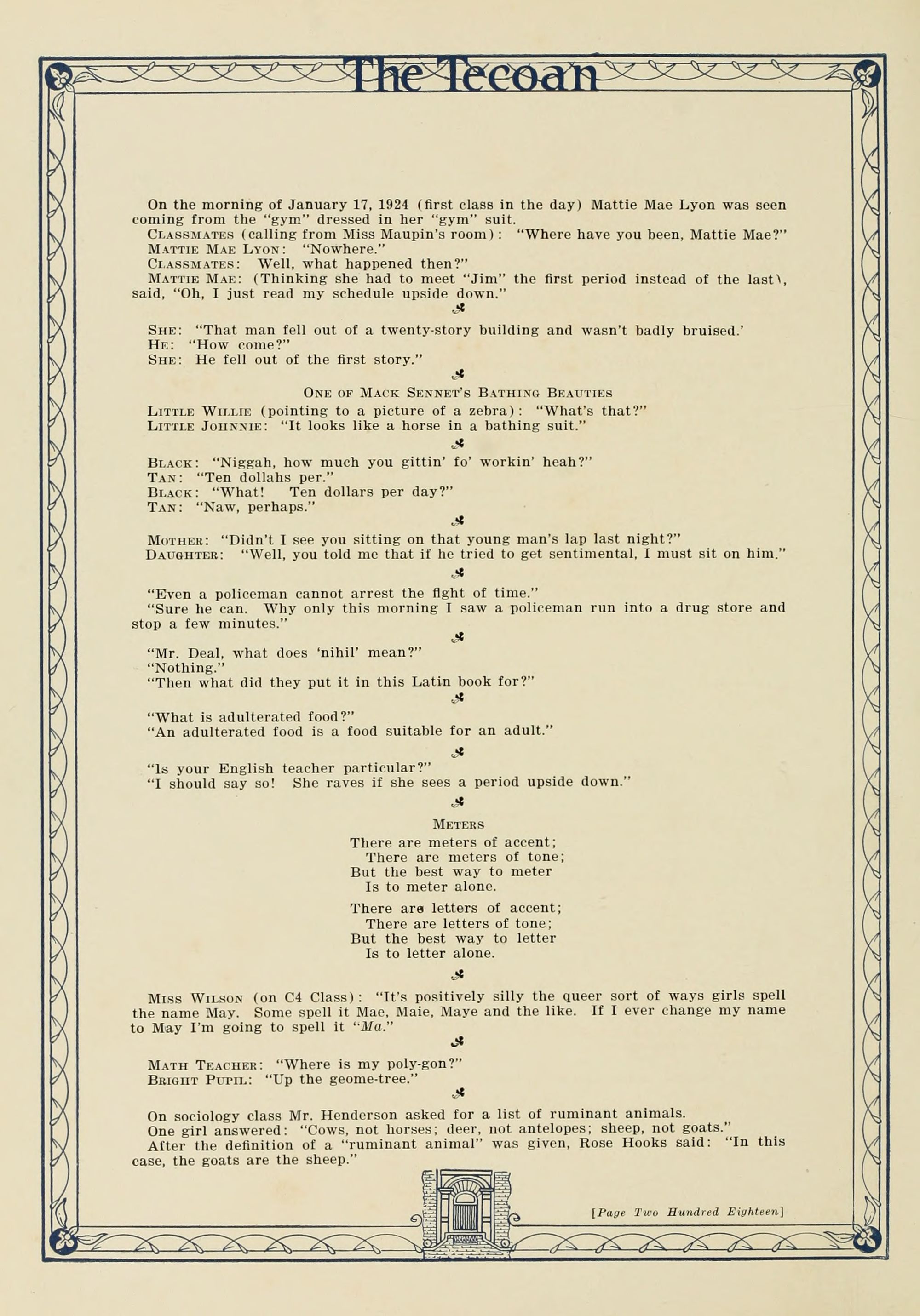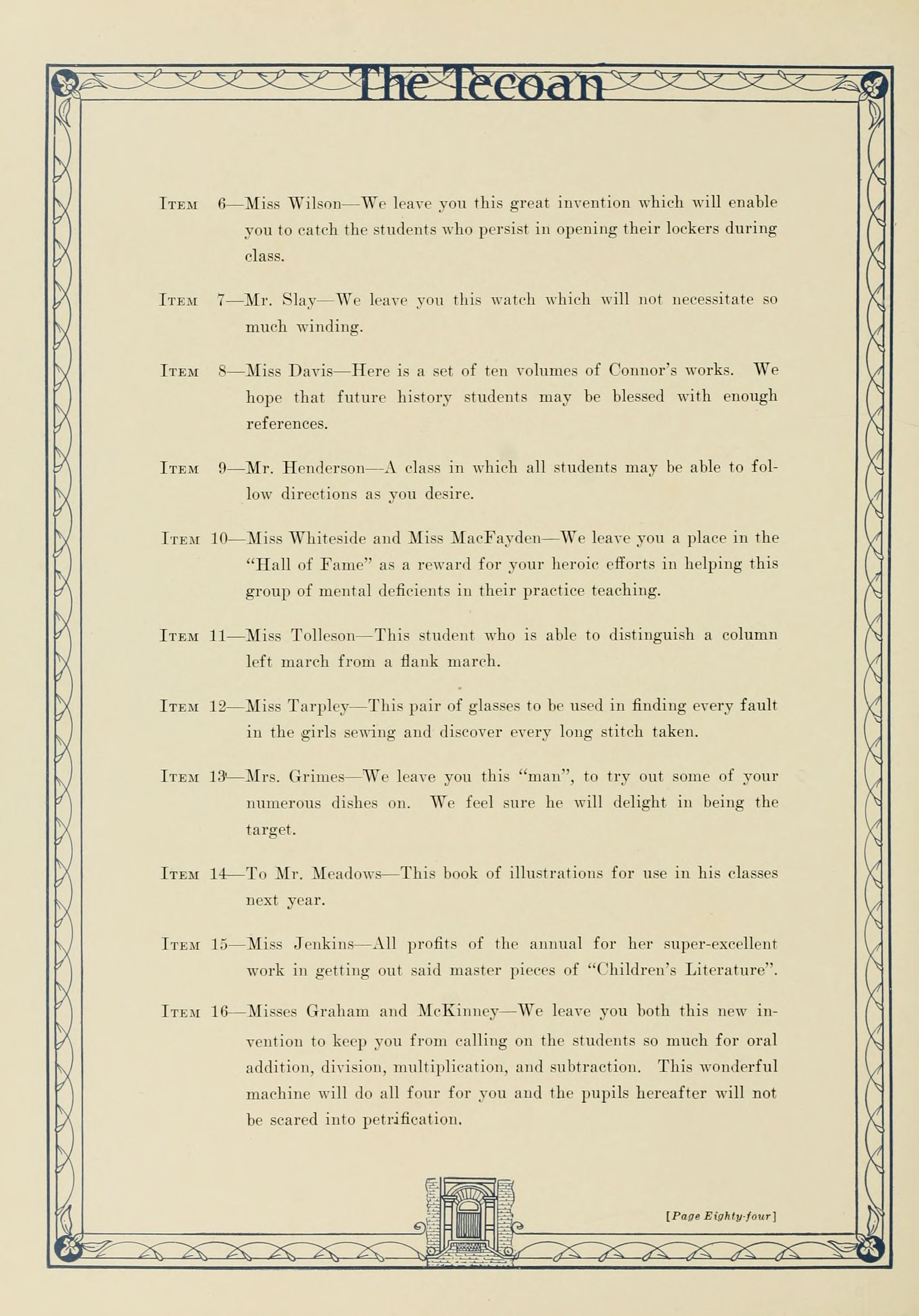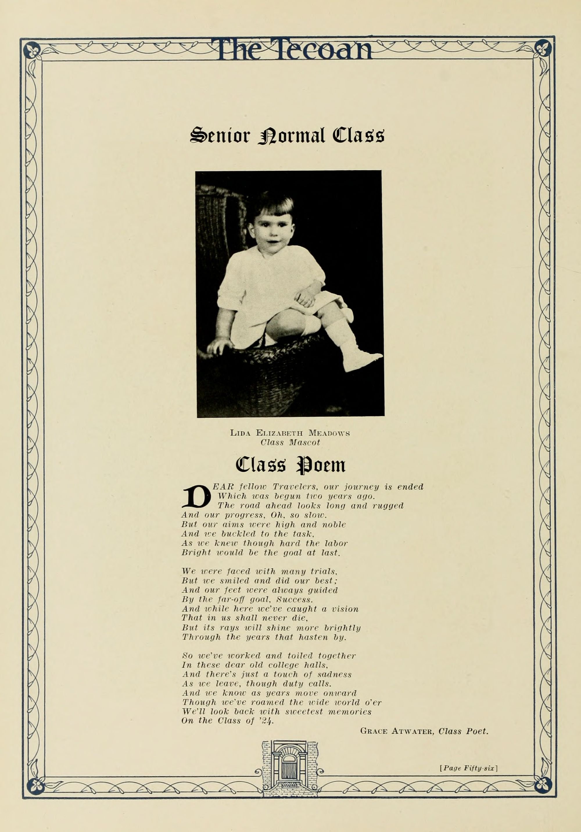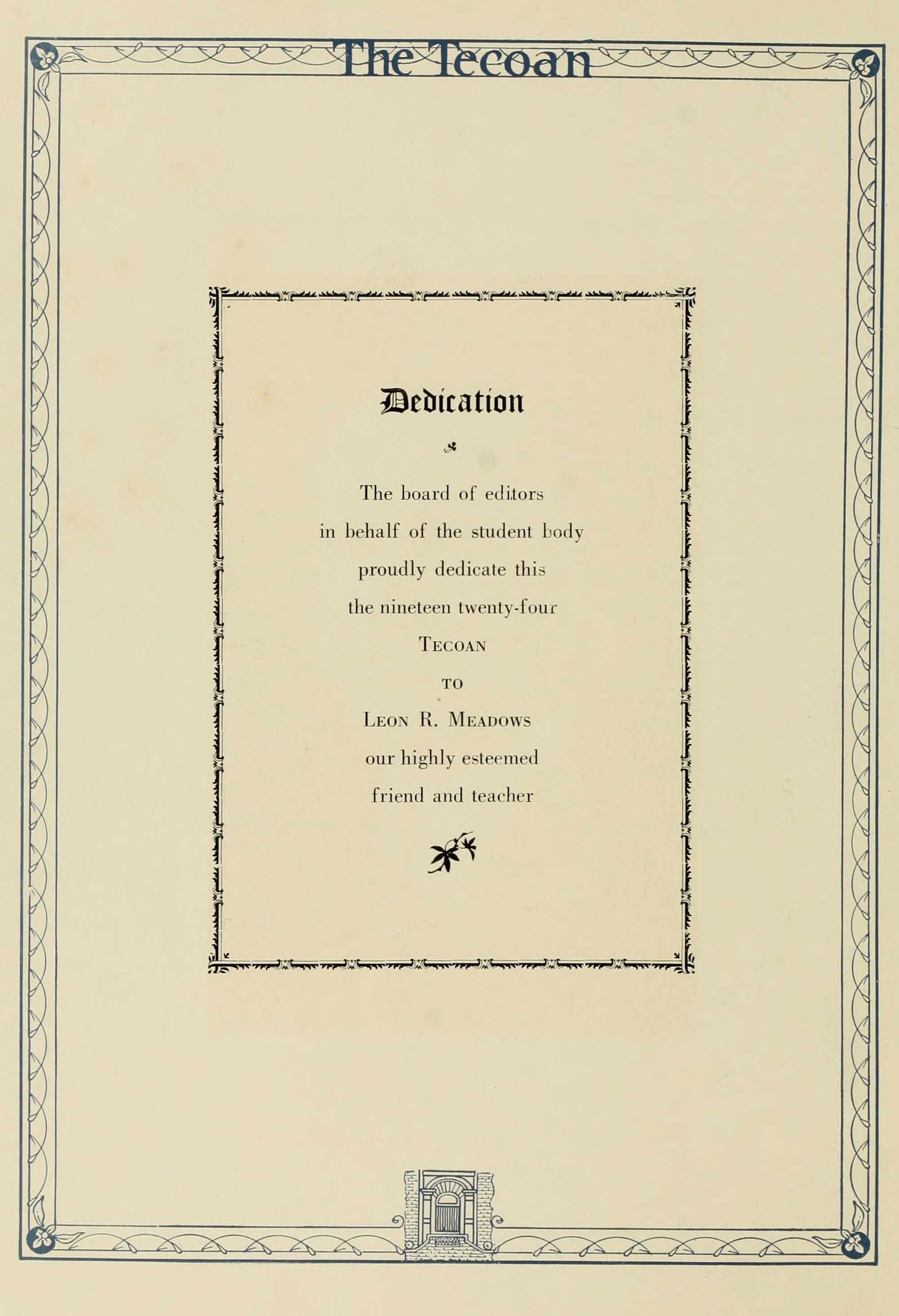 The board of editors in behalf of the student body proudly dedicate this the nineteen twenty-four Tecoan TO Leon R. Meadows our highly esteemed friend and teacher