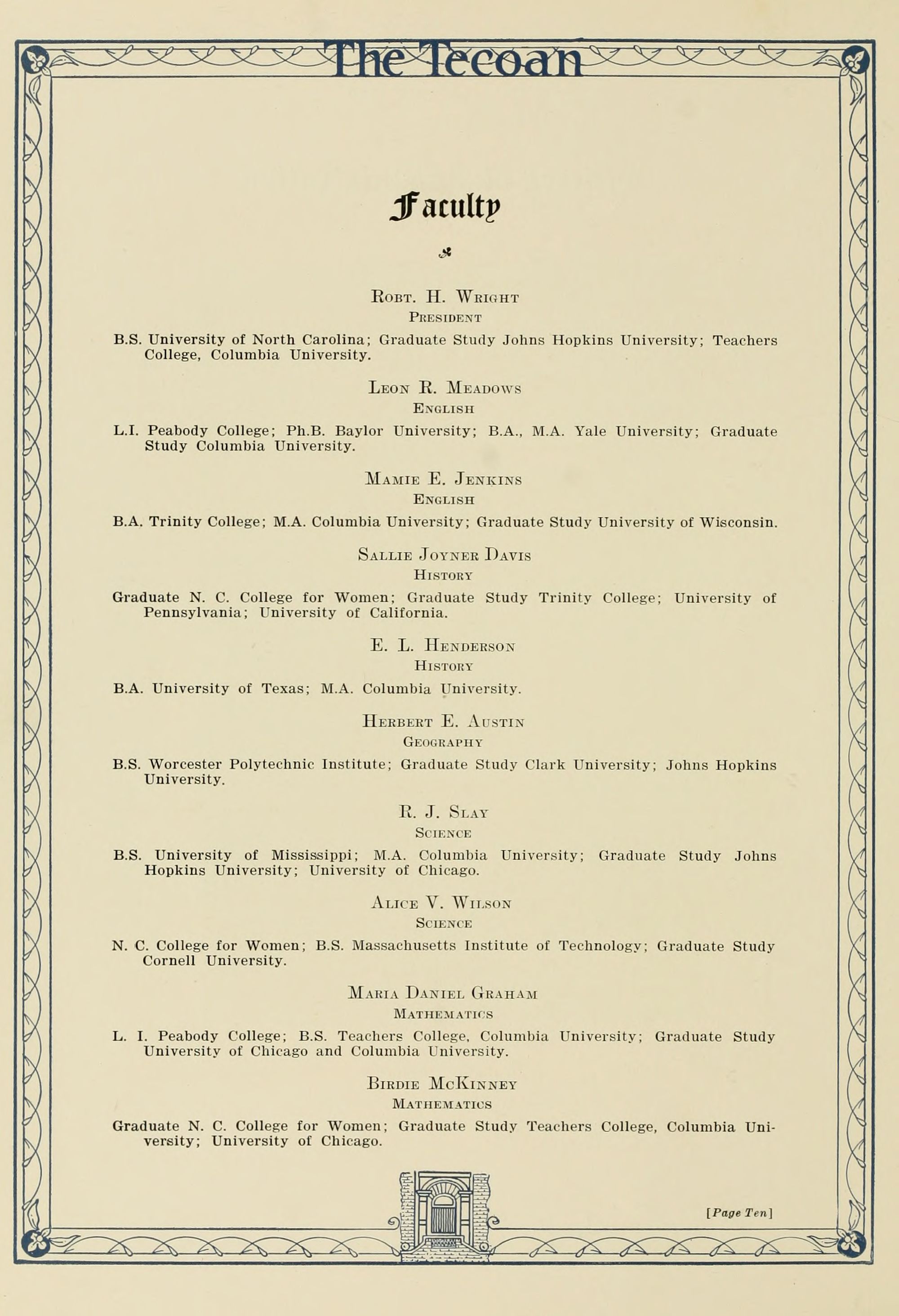 Birdie McKinney Mathematics Graduate N. C. College for Women; Graduate Study Teachers College, Columbia University; University of Chicago.