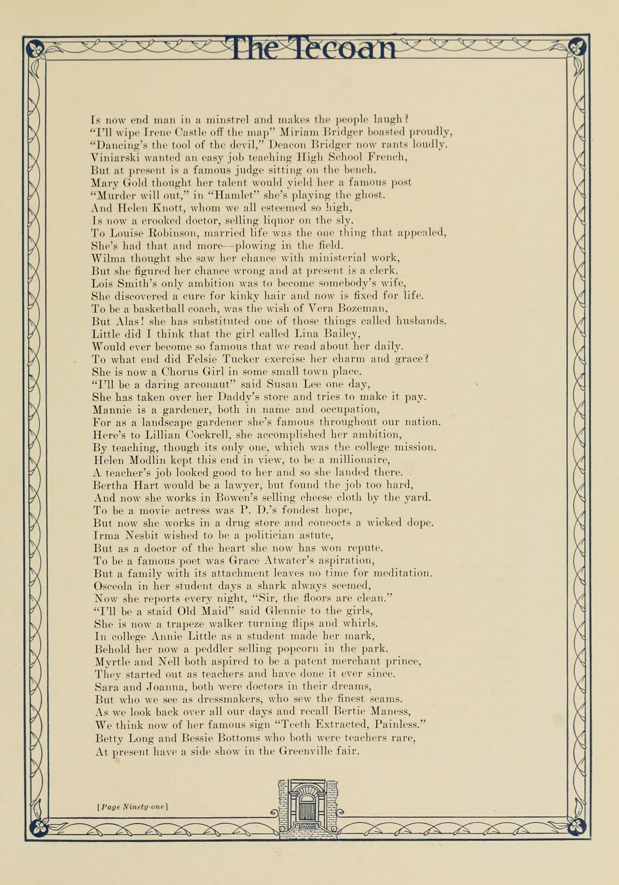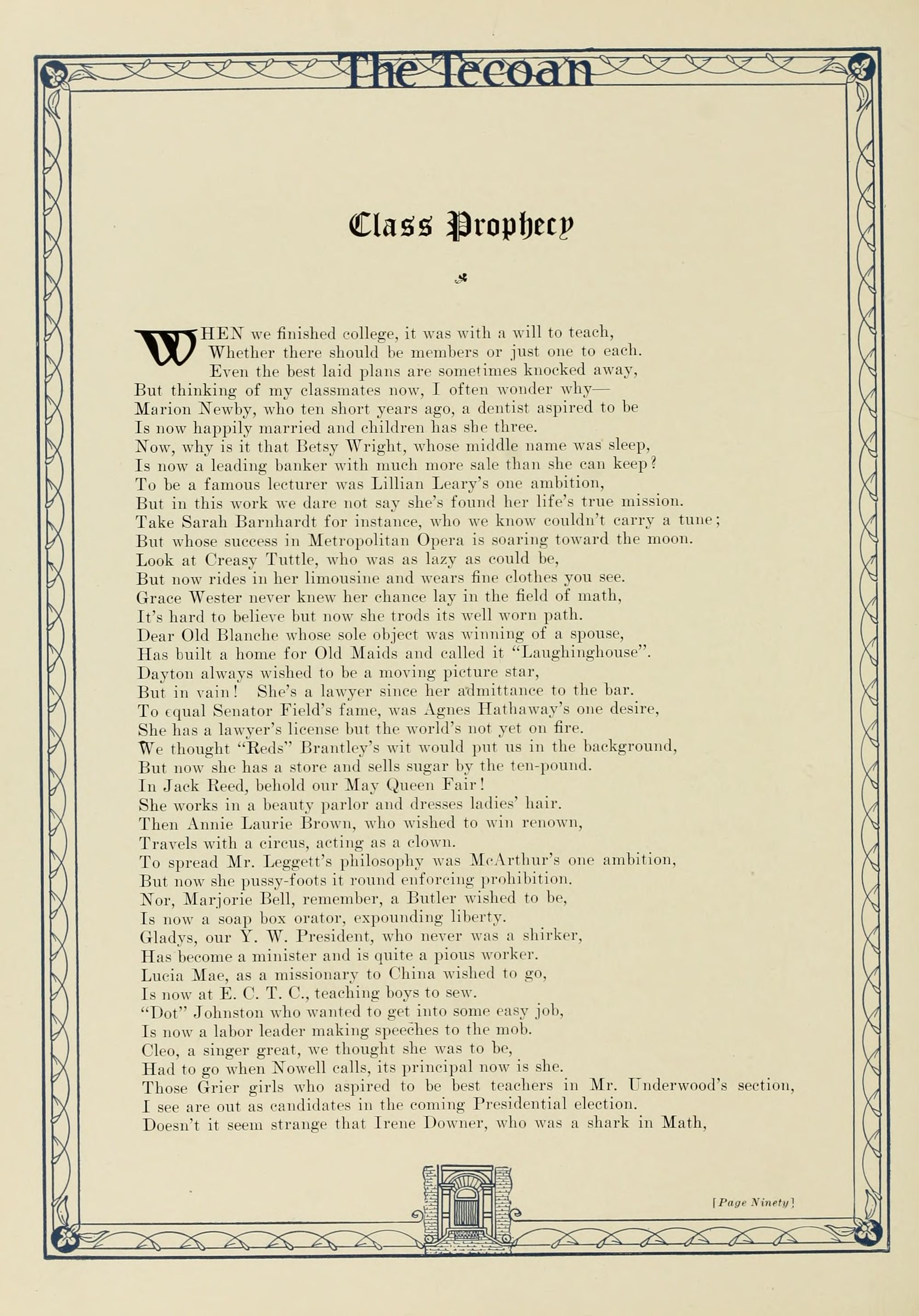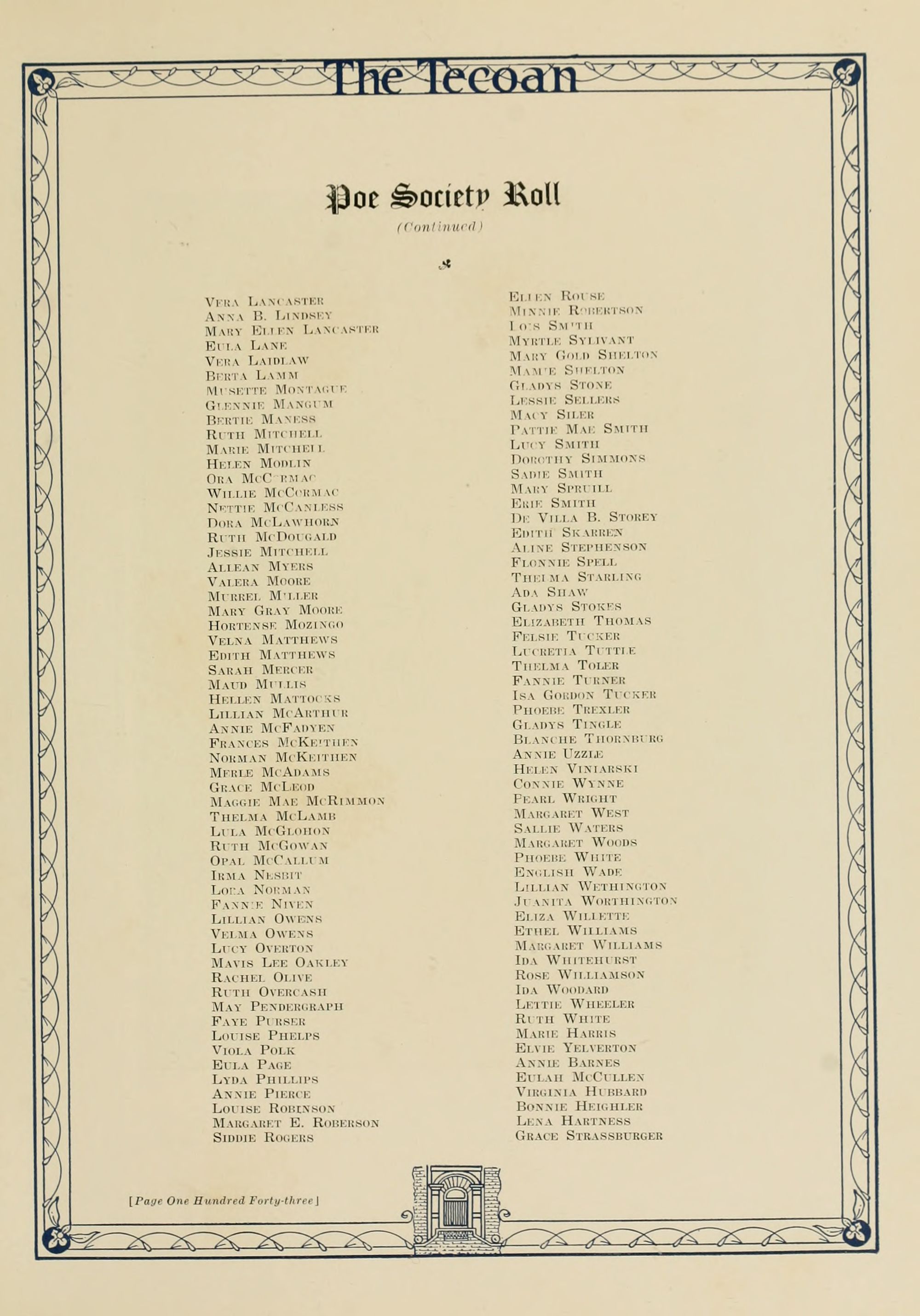 The editors wish to thank the students, the members of the faculty, and the officers for their help and friendly suggestions in the publication of The Tecoan; such a spirit of cooperation in our college is worth many times the cost of this volume.