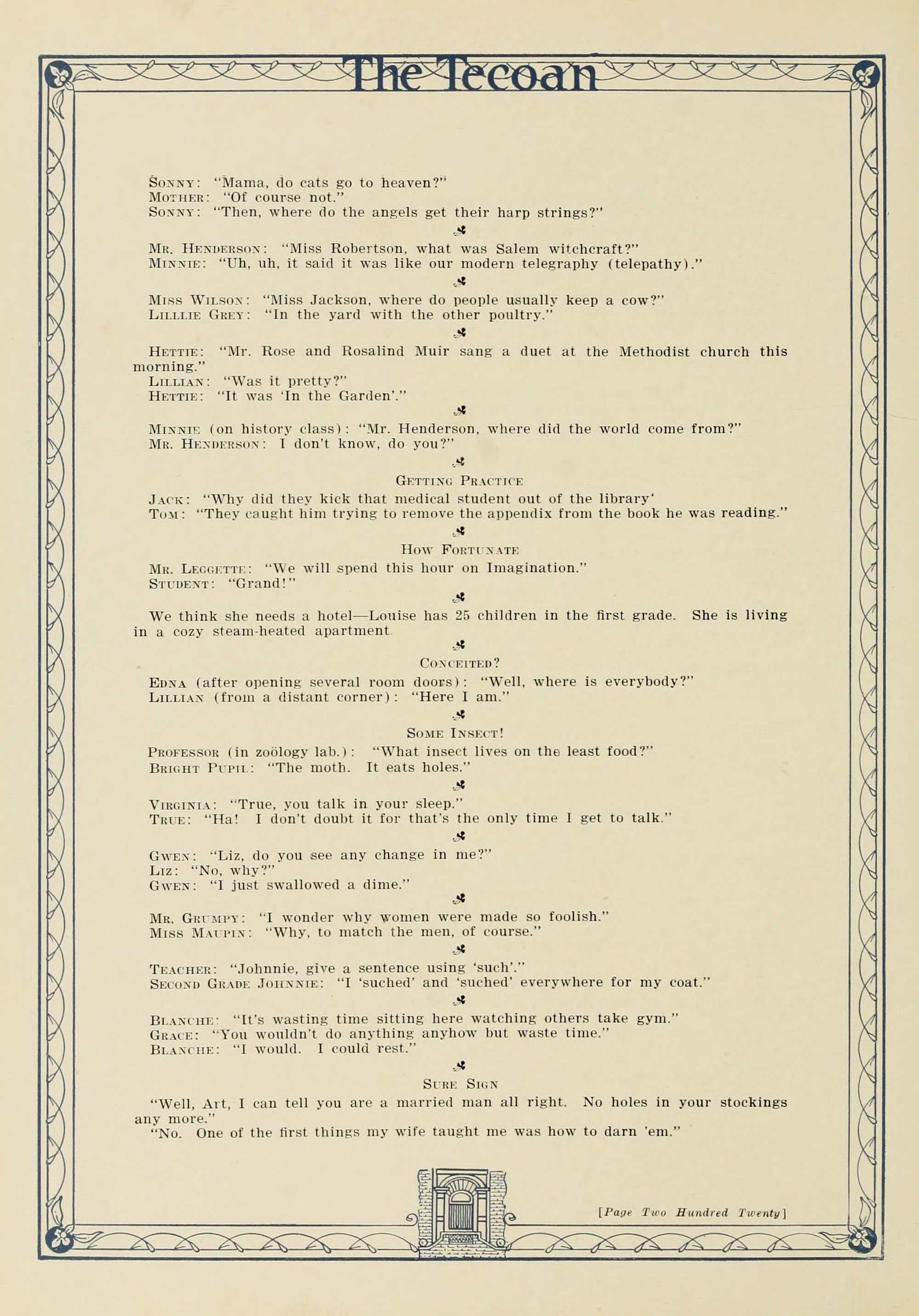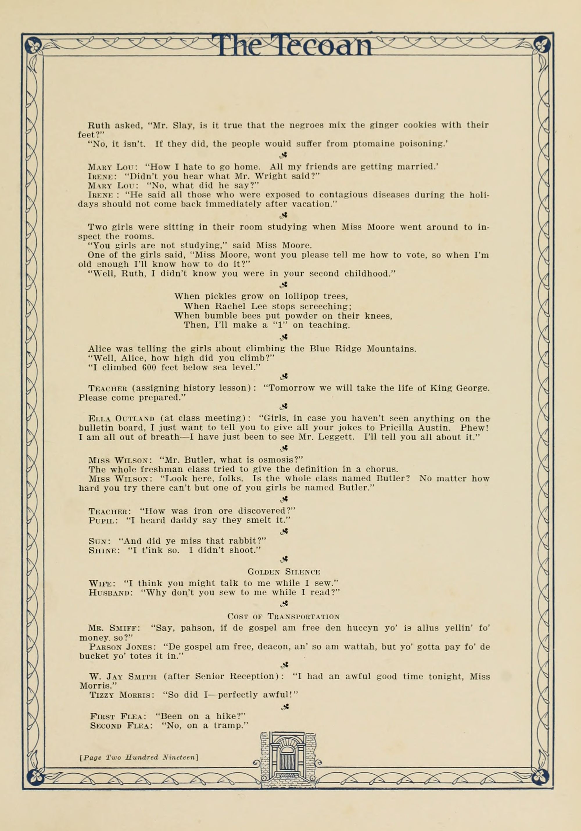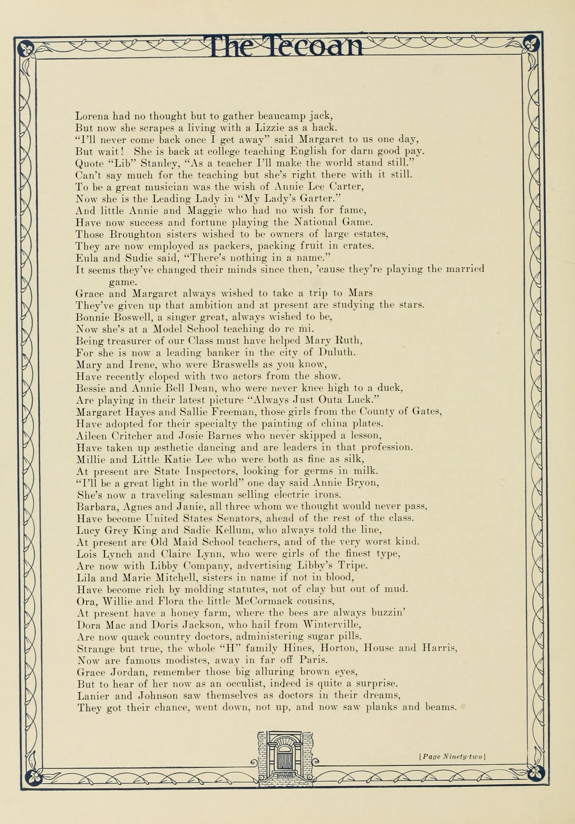 The book's imperfect. Yet midst mirth and jest There may be some of good. It is our best."