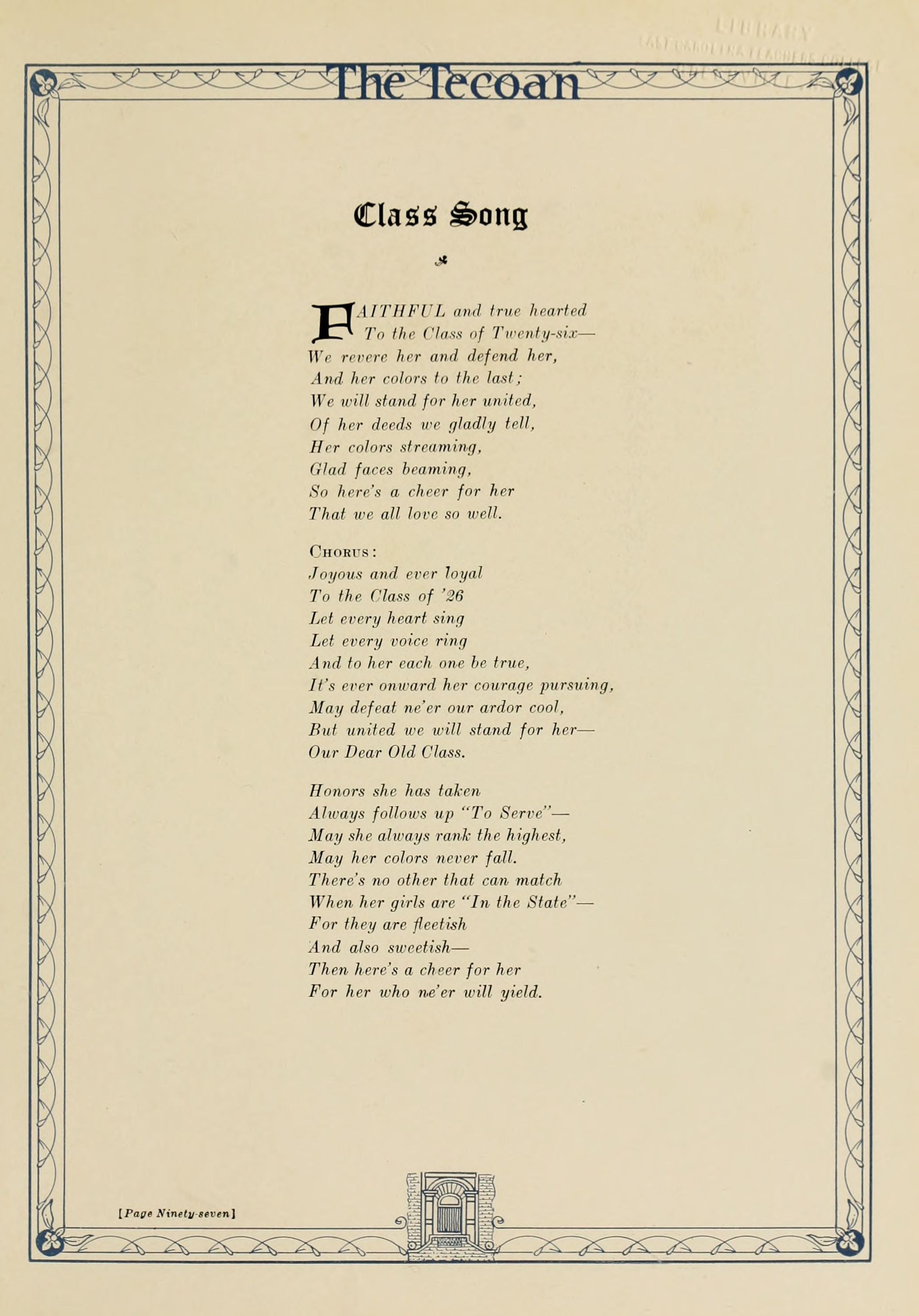 Second Chorus: Alma Mater, Symbol of Right, Giving to all the best of your light