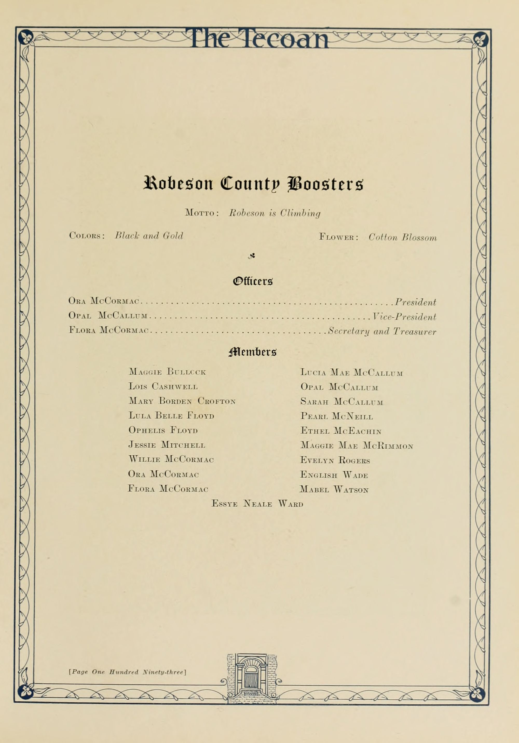 Leon R. Meadows, Secretary J. B. Spilman, Treasurer