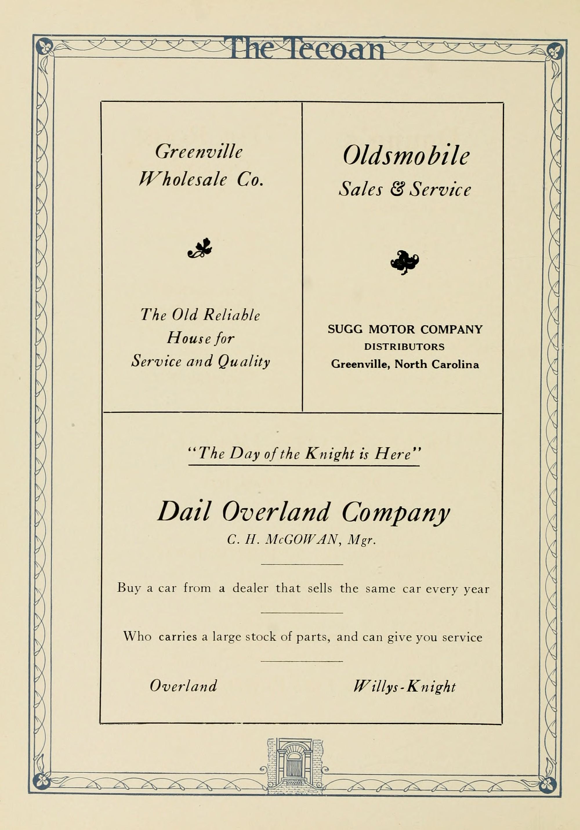 Sugg Motor Company, Distributors, Greenville, North Carolina