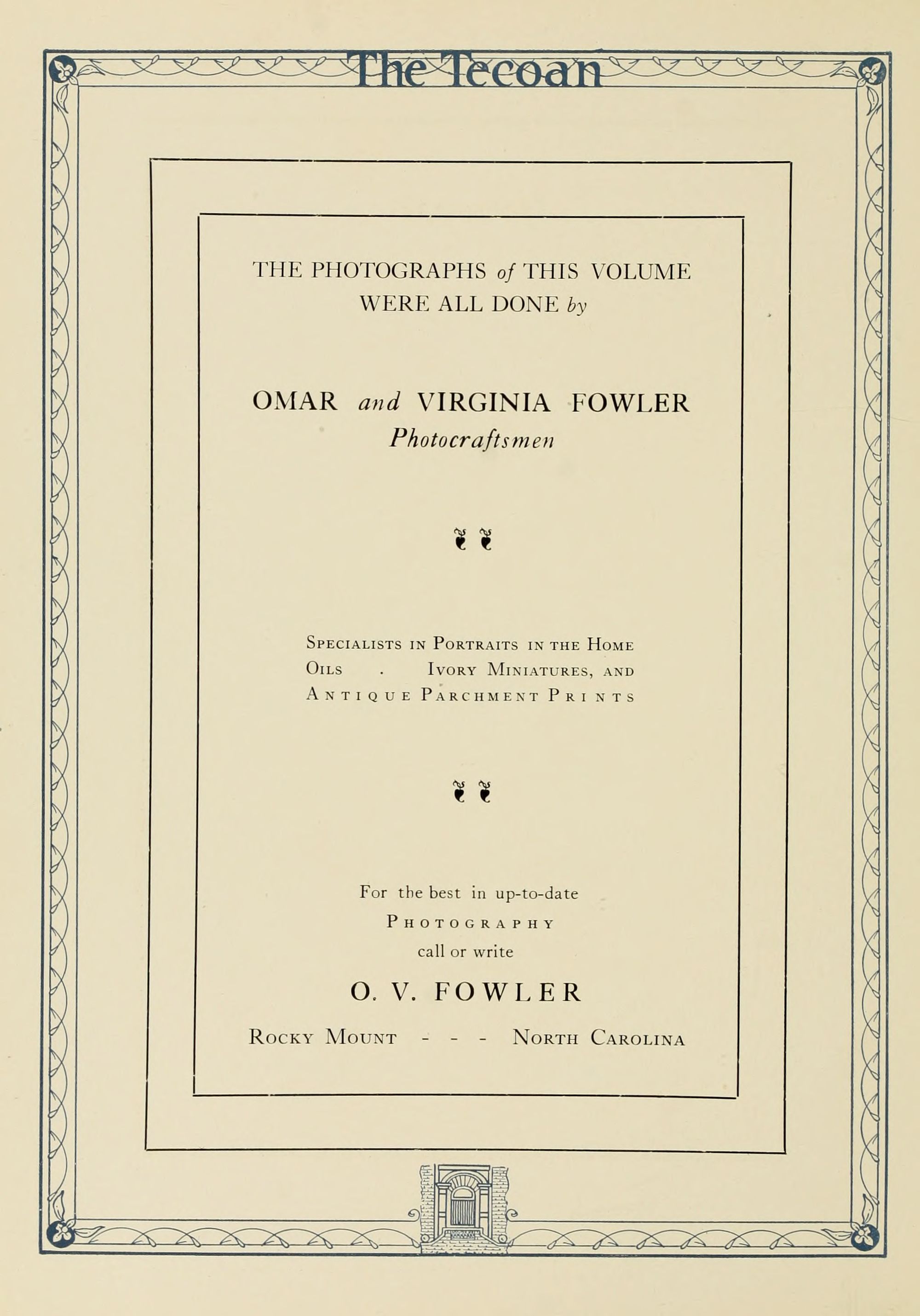 For the best in up to date photography, call or write O. V. Fowler, Rocky Mount NC.