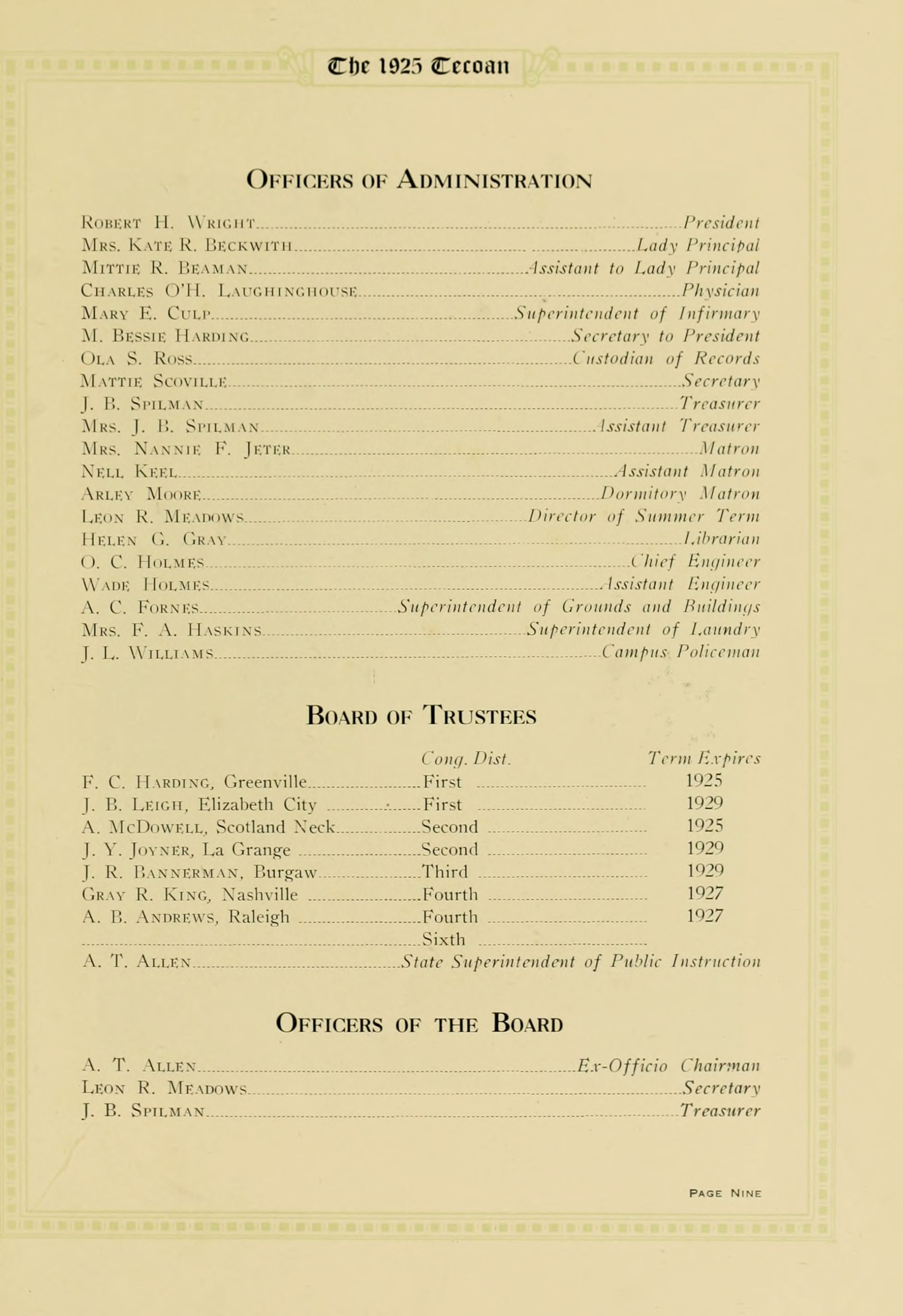 OFFICERS OF ADMINISTRATION