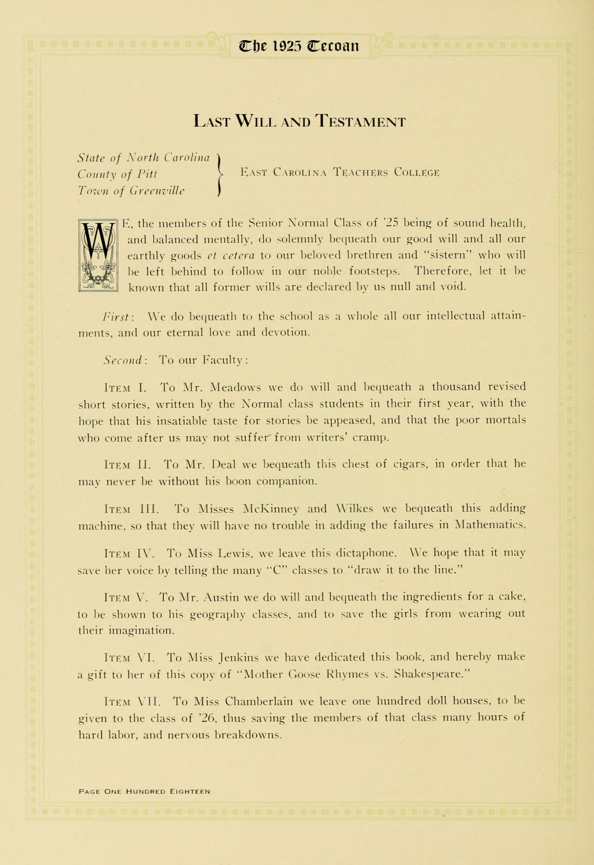 F. C. Harding, Greenville First 1925