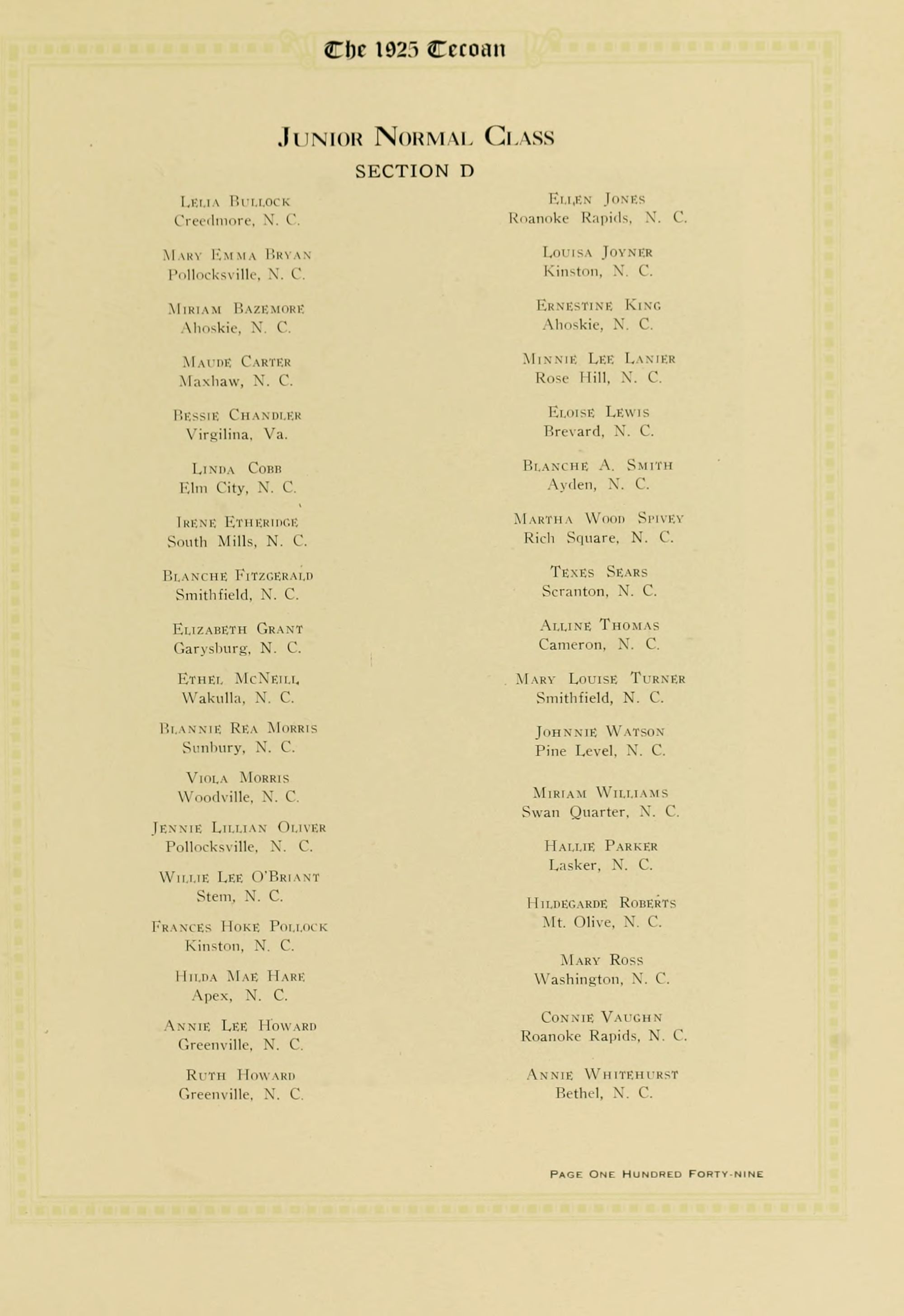 A. McDowell, Scotland Neck Second 1925