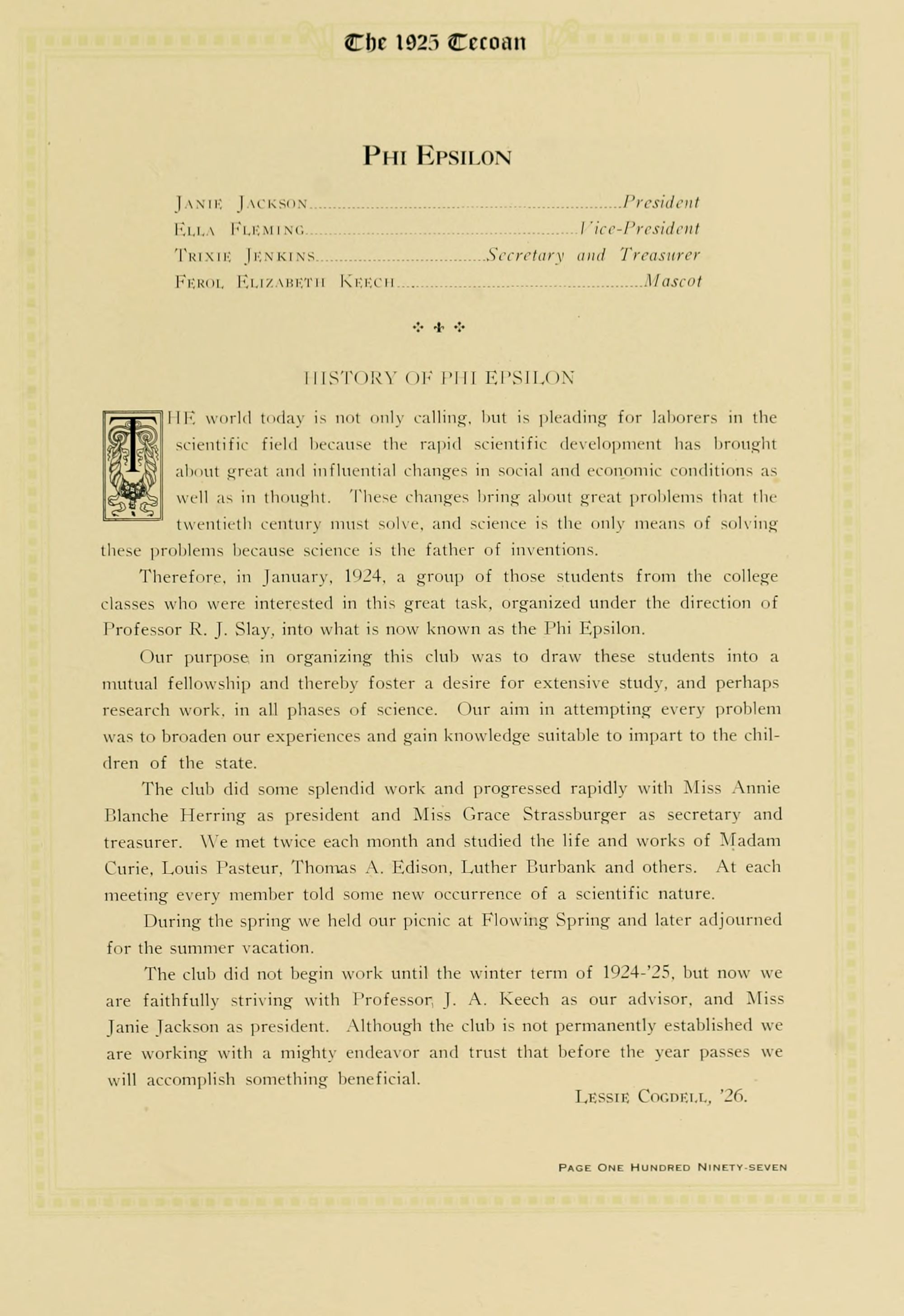 Mattie Scolville.... Secretary