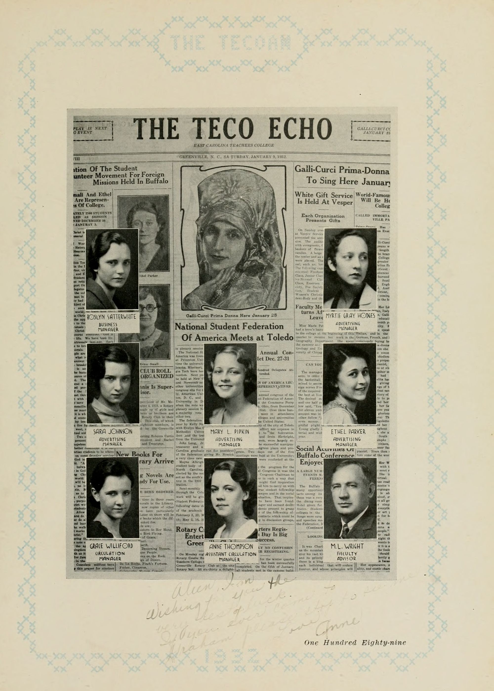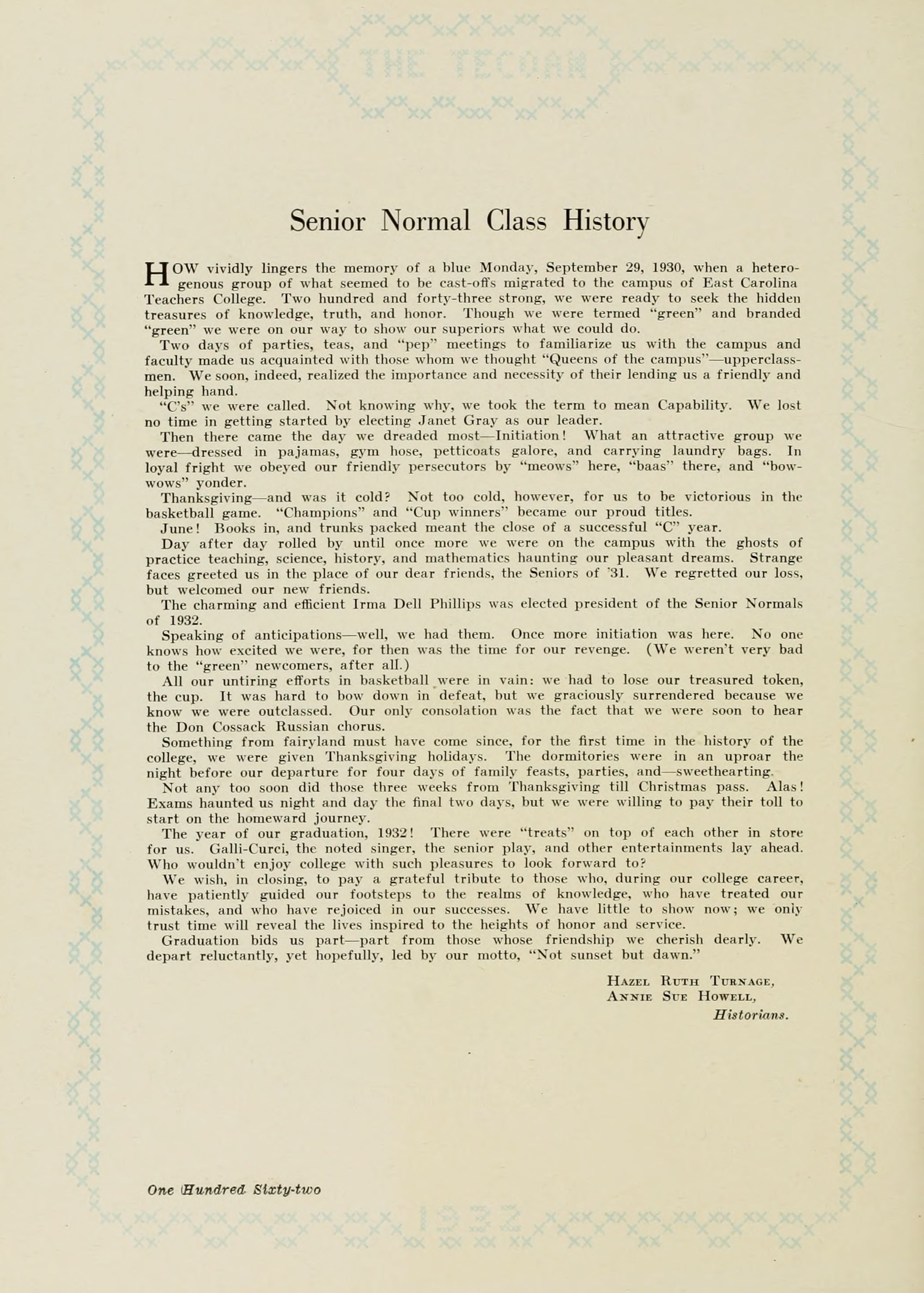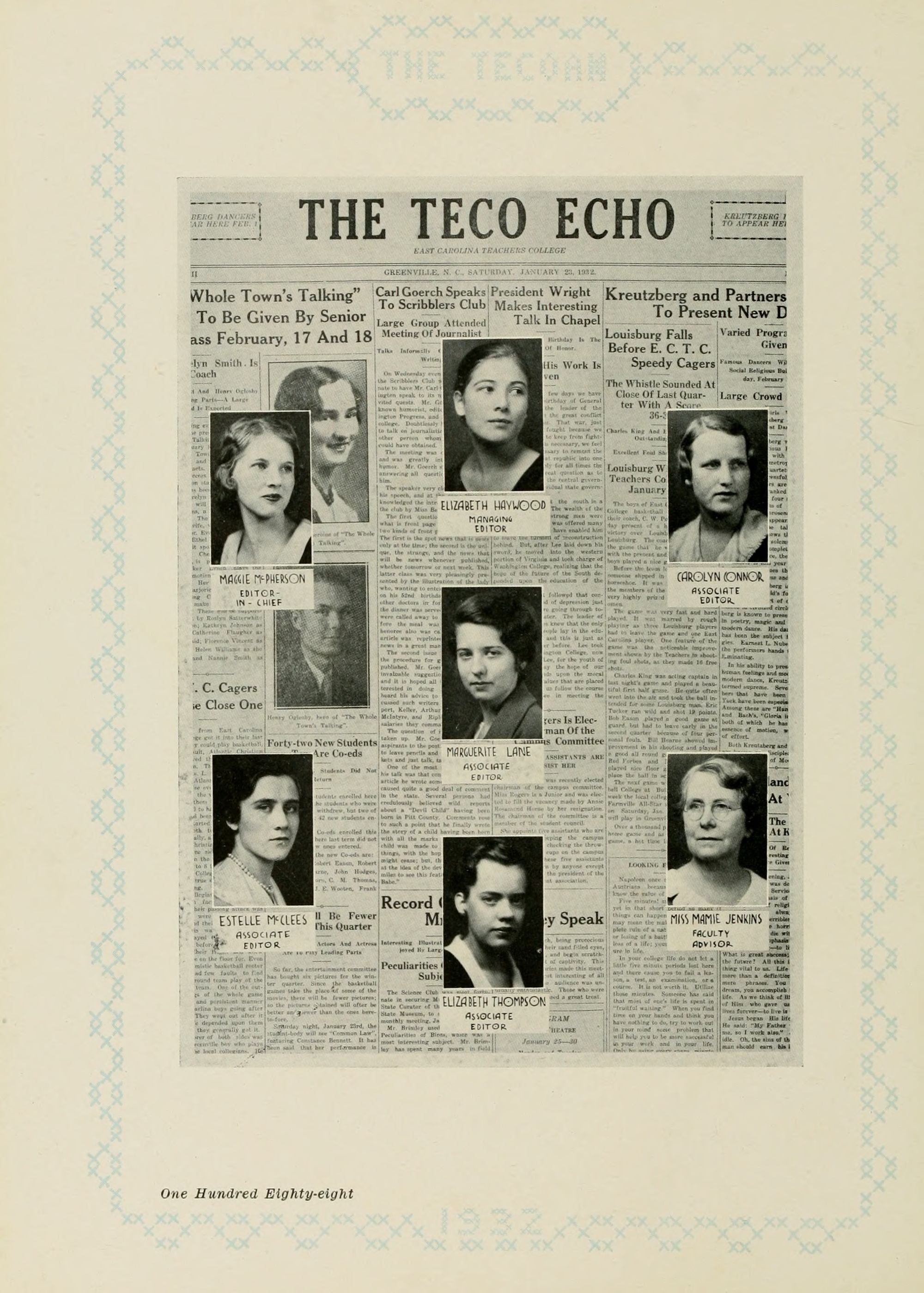 East Carolina Teachers College the students dedicate the 1932 Tecoan. In 191 1 Mr. Spilman began his long period ot untiring service at the college, and in 1921 Mrs. Spilman became associated with him in his work. The nature of their duties has brought them into contact with every one of the students; and their efficiency, good judgment, fairness, and helpfulness have won for them the respect, admiration, and gratitude of many successive student bodies. The dedication of this annual to them is an expression of the esteem in which they are held.