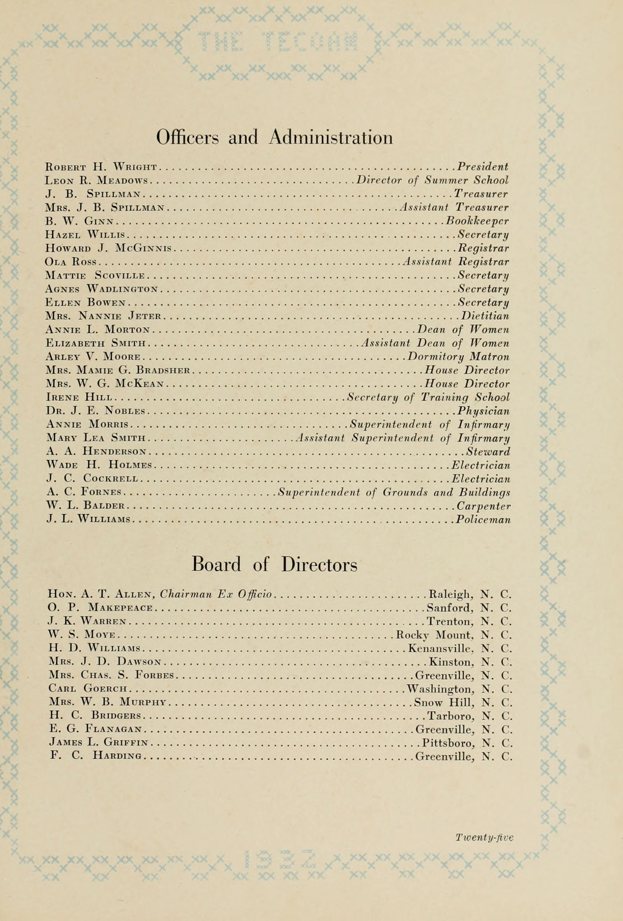 Hon. A. T. Allen, Chairman Ex Officio Raleigh, N. C.