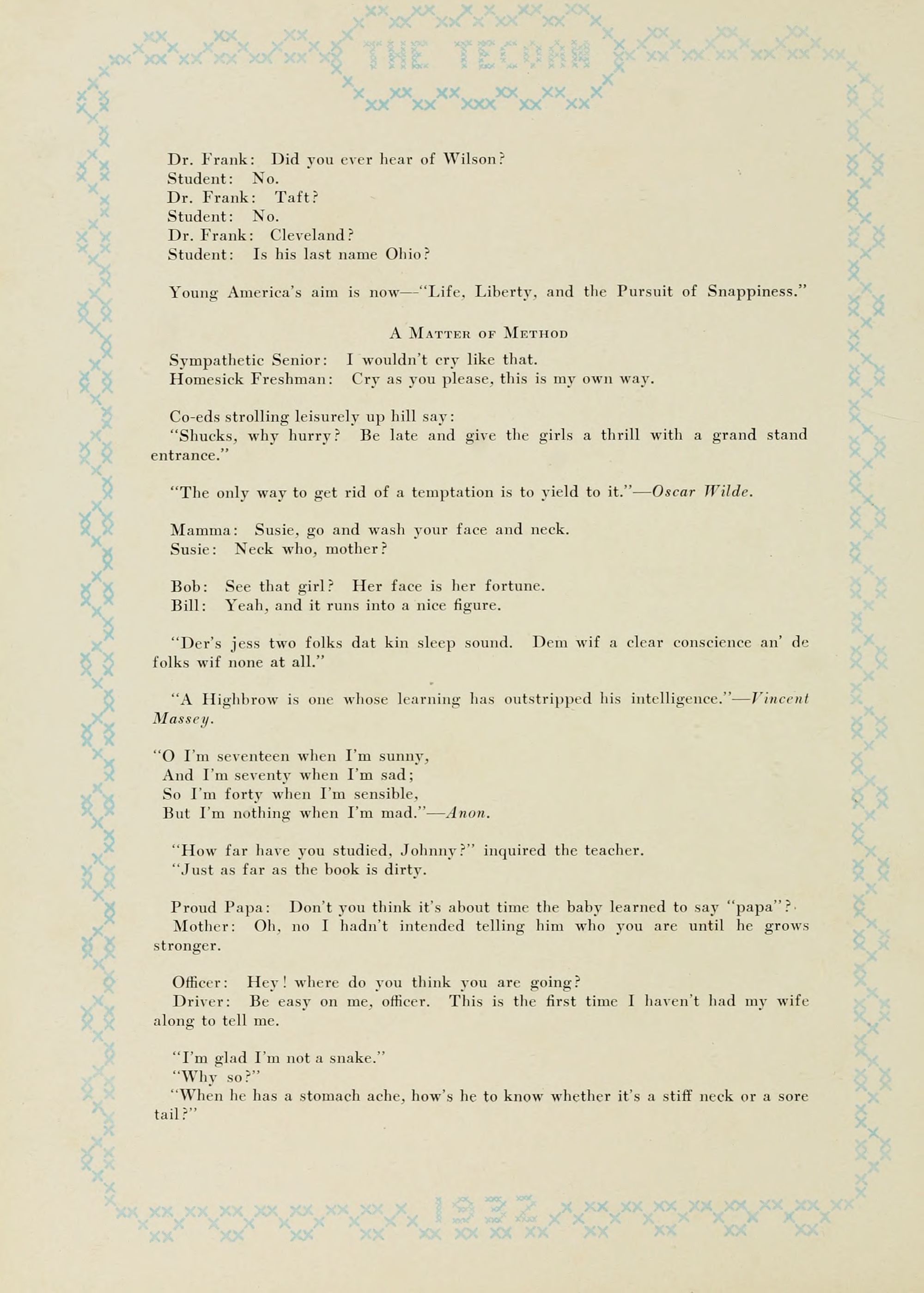 "He who flunks and still is gay Will live to flunk another day."
