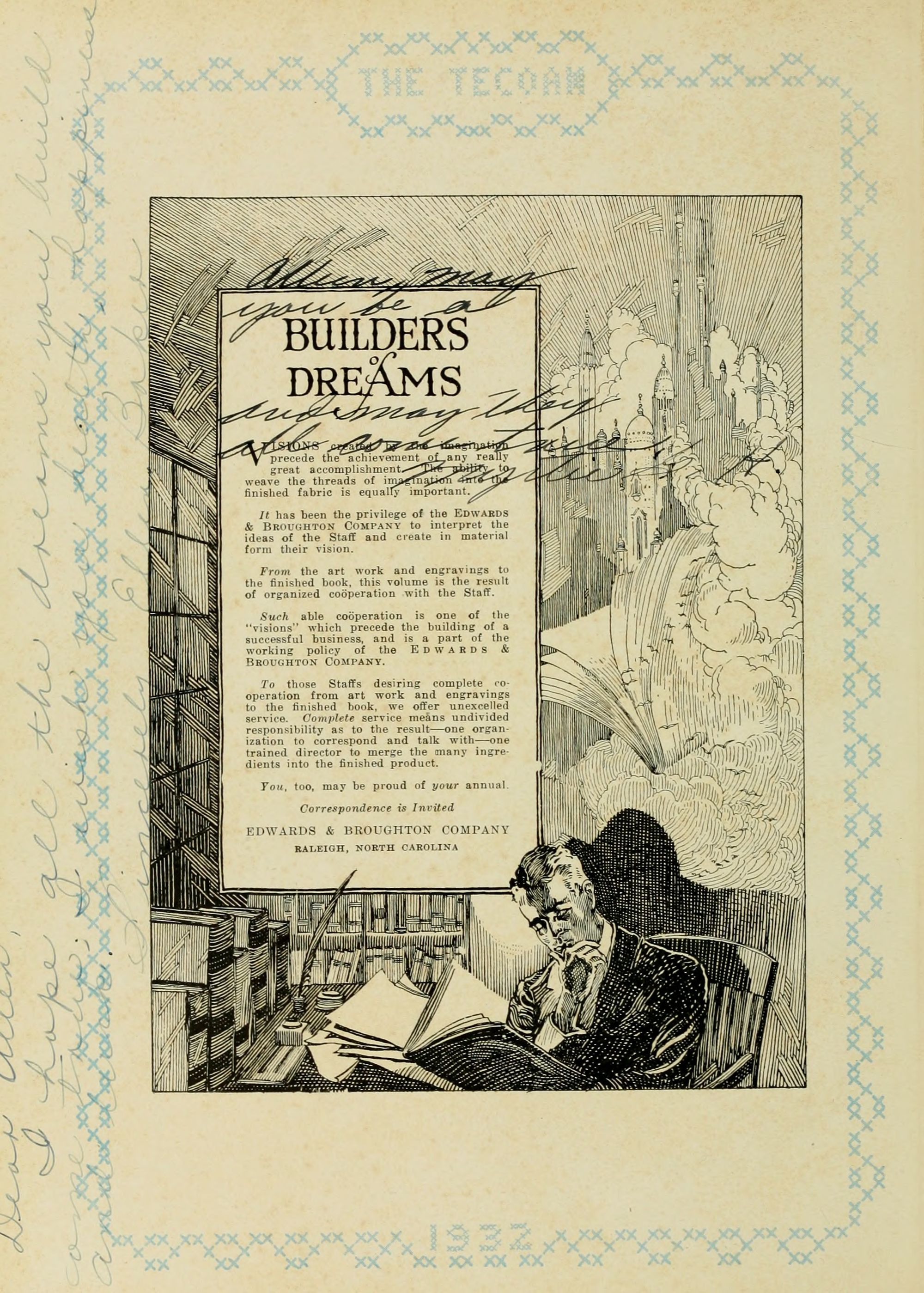 It has been the privilege of the EDWARDS and BROUGHTON COMPANY to interpret the ideas of the Staff and create in material form their vision.