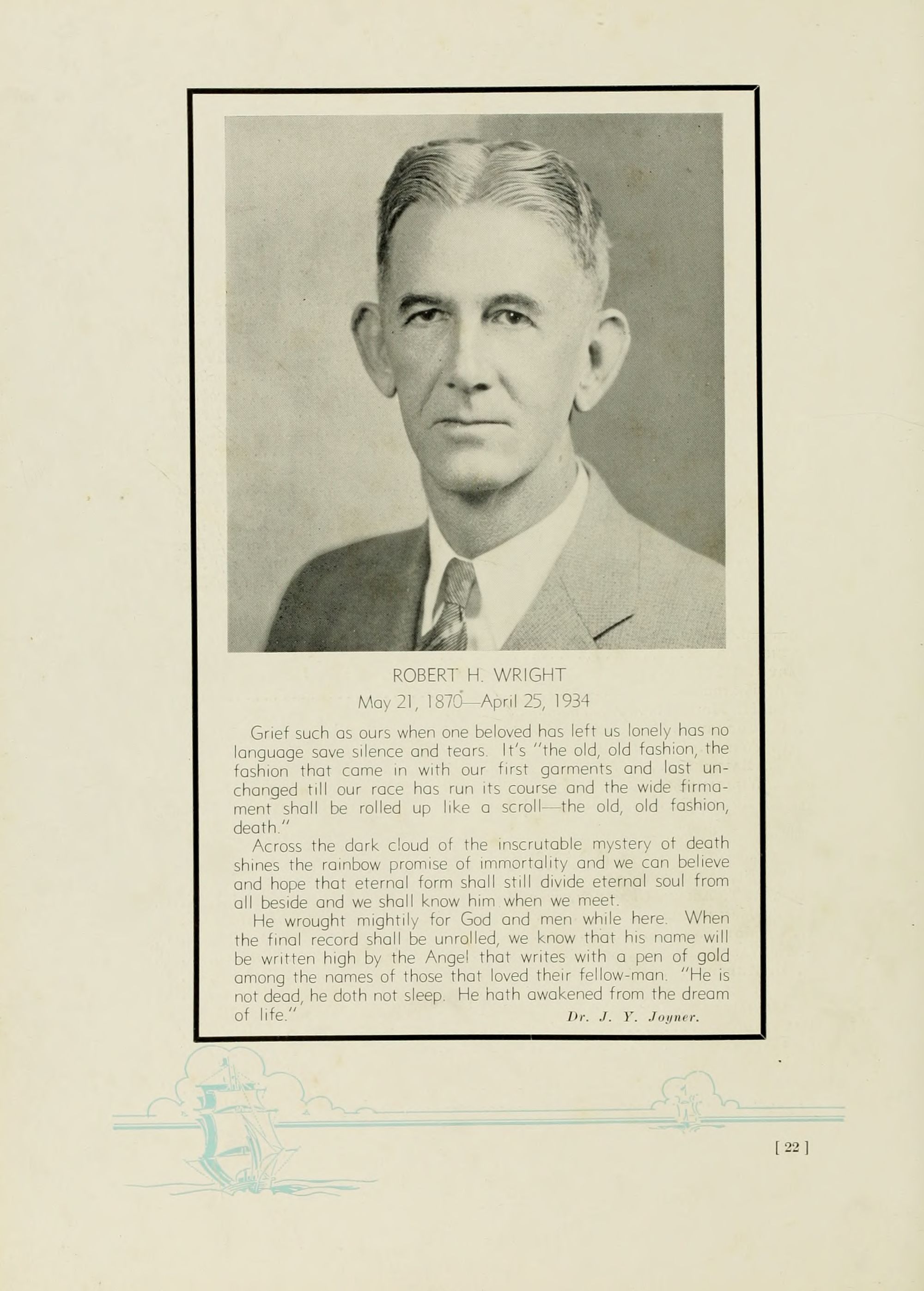 ROBERT H. WRIGHT May 21, 1870- April 25, 1934