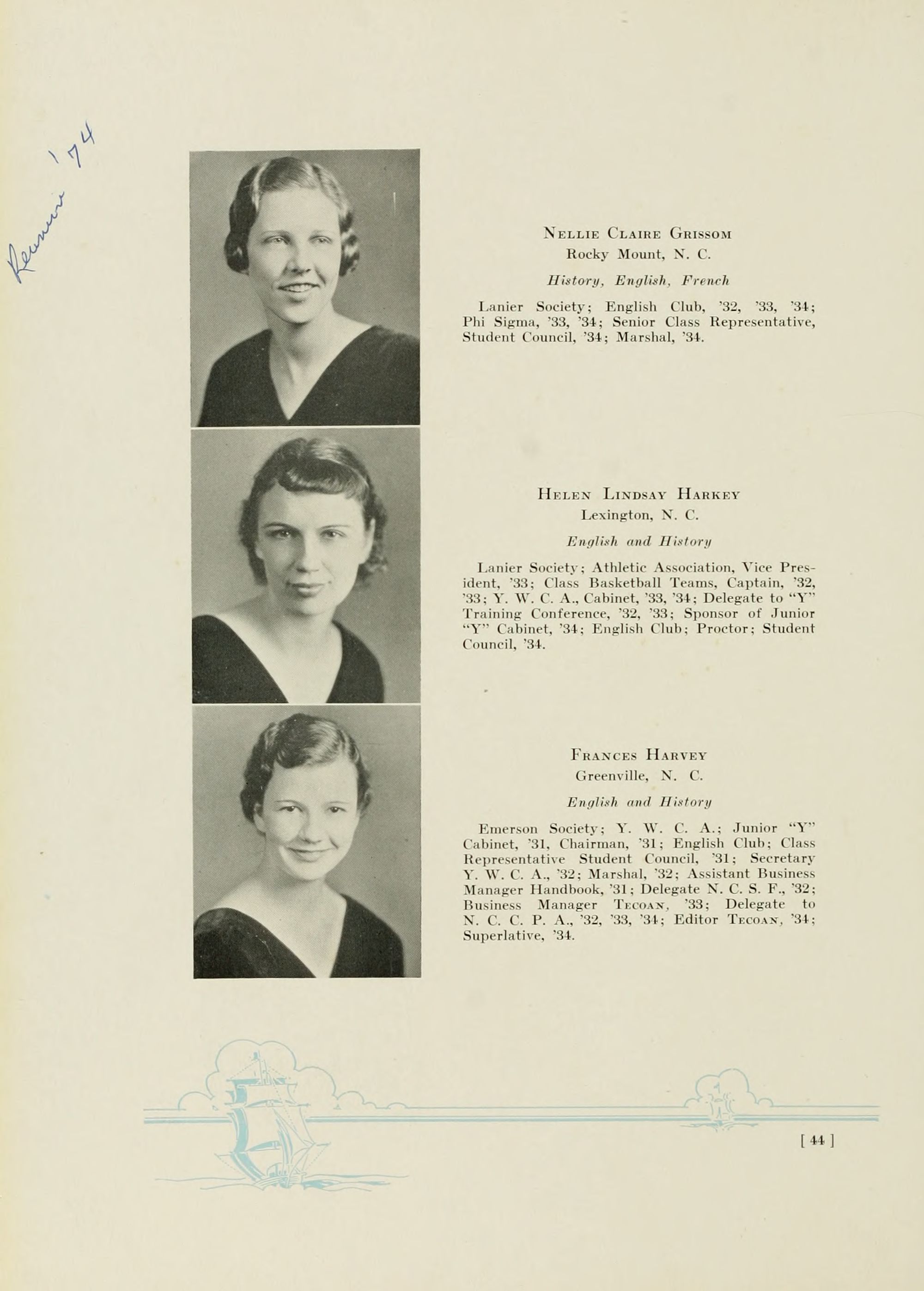 Mrs E.W.Harvey Greenville N.C.