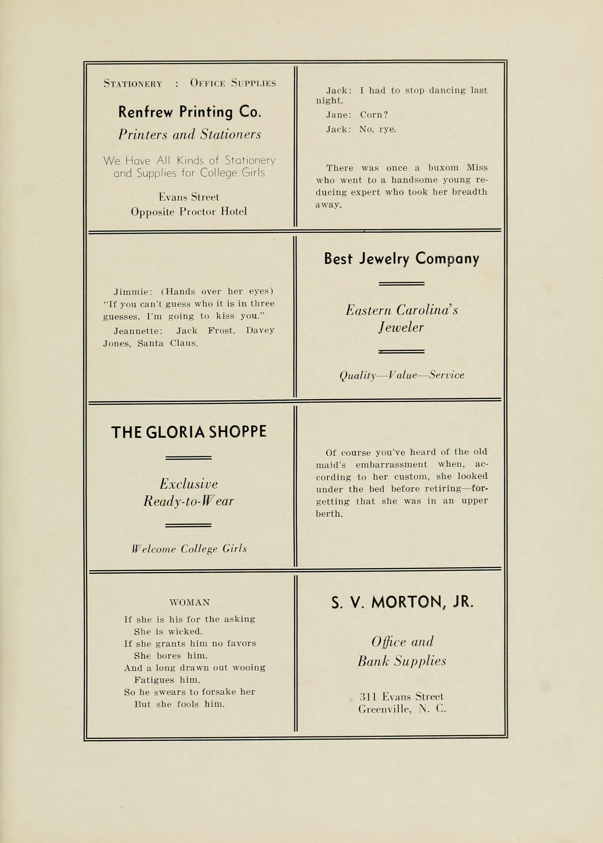 And did you hear of the stenog who didn't mail the circular letters because she couldn't find any round envelopes?