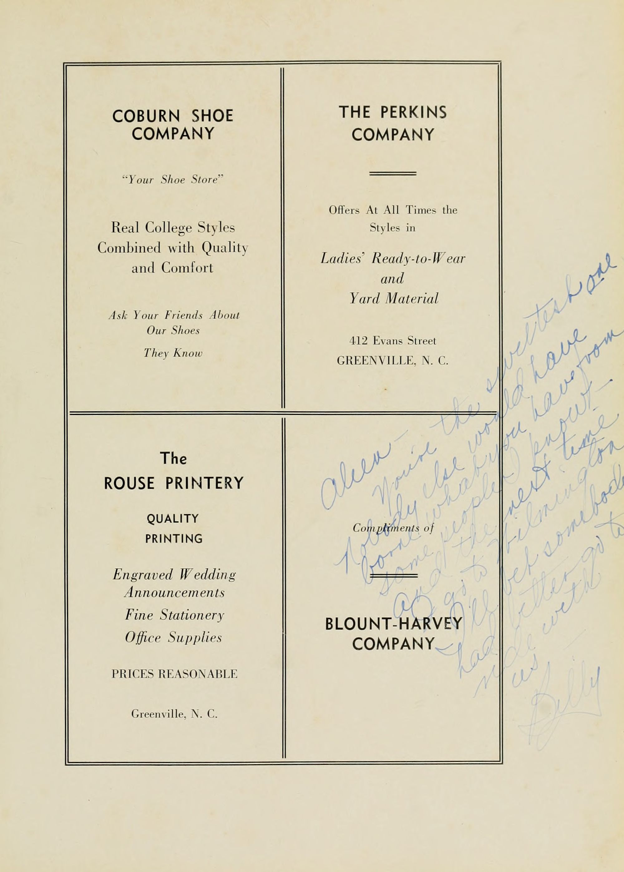 Compliments of BLOUNT-HARVEY COMPANY