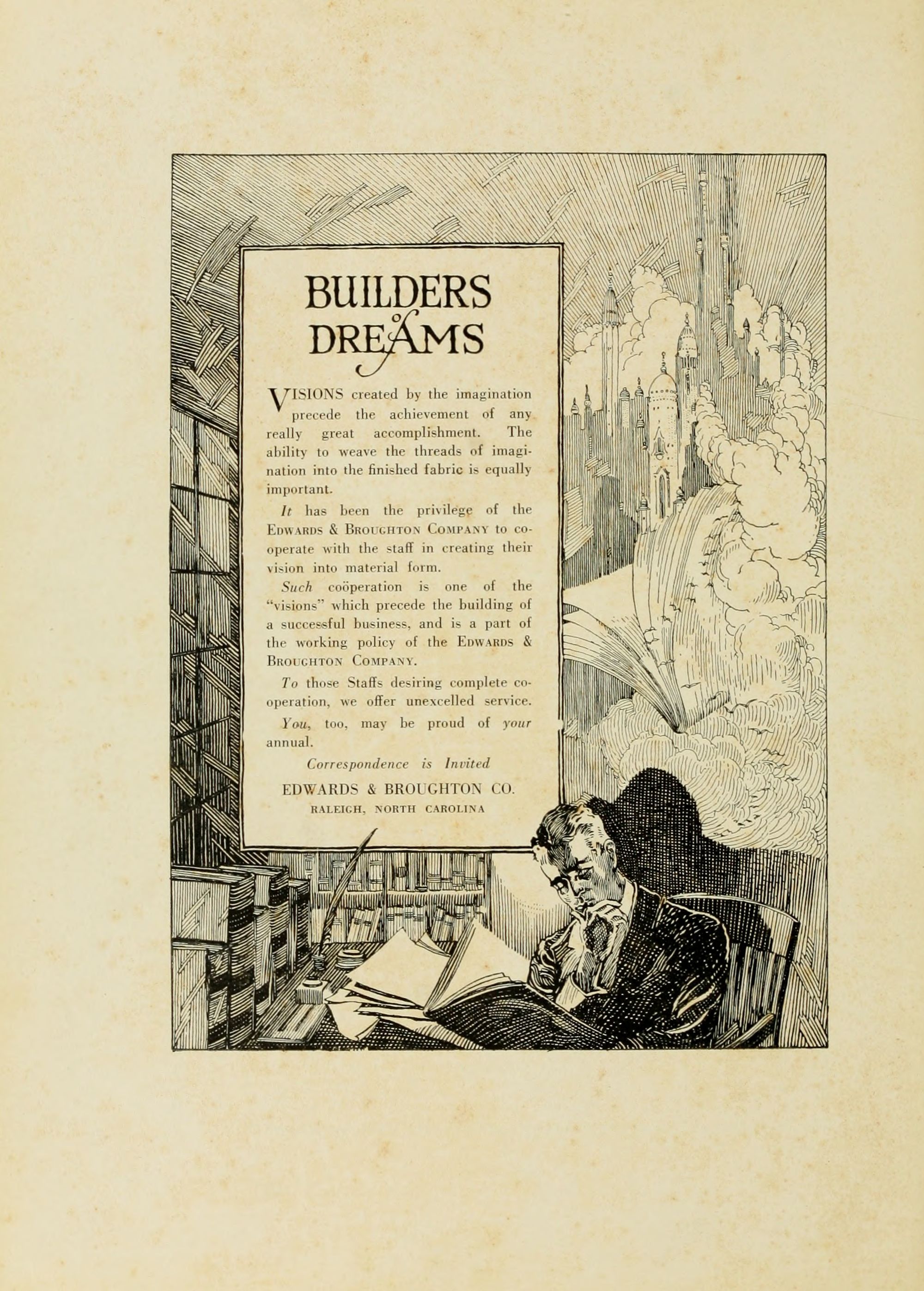 It has been the privilege of the EDWARDS and BROUGHTON COMPANY to cooperate with the staff in creating their vision into material form.