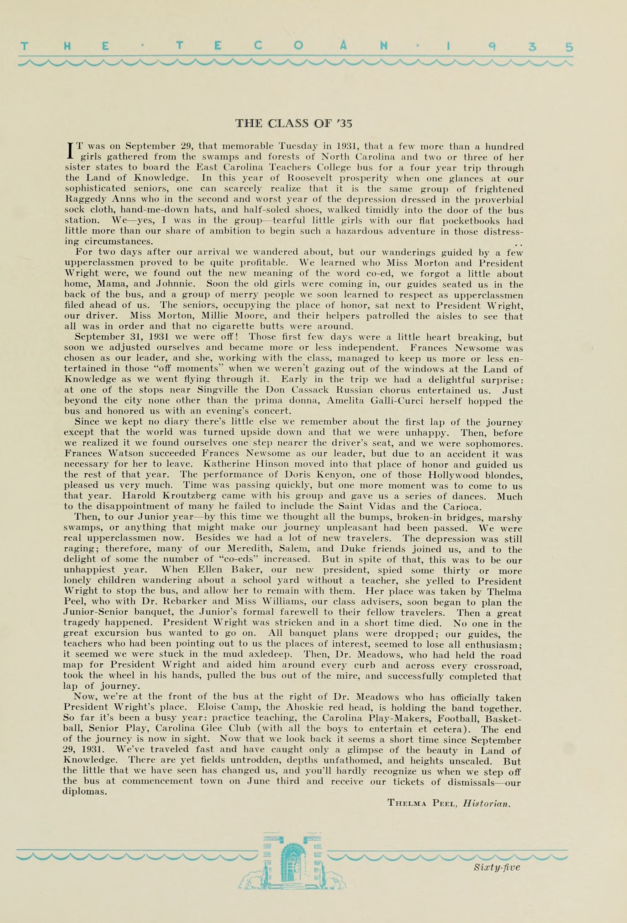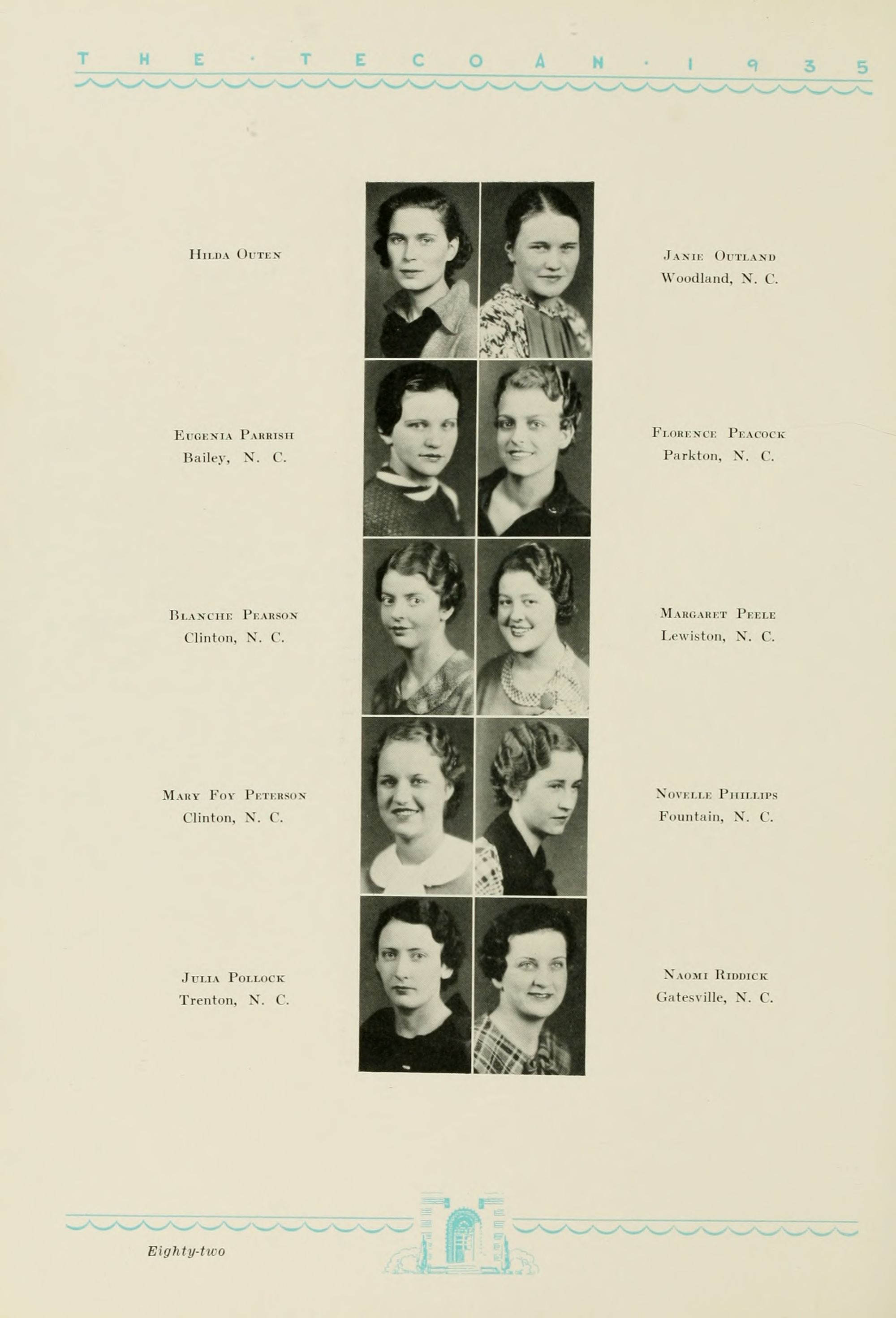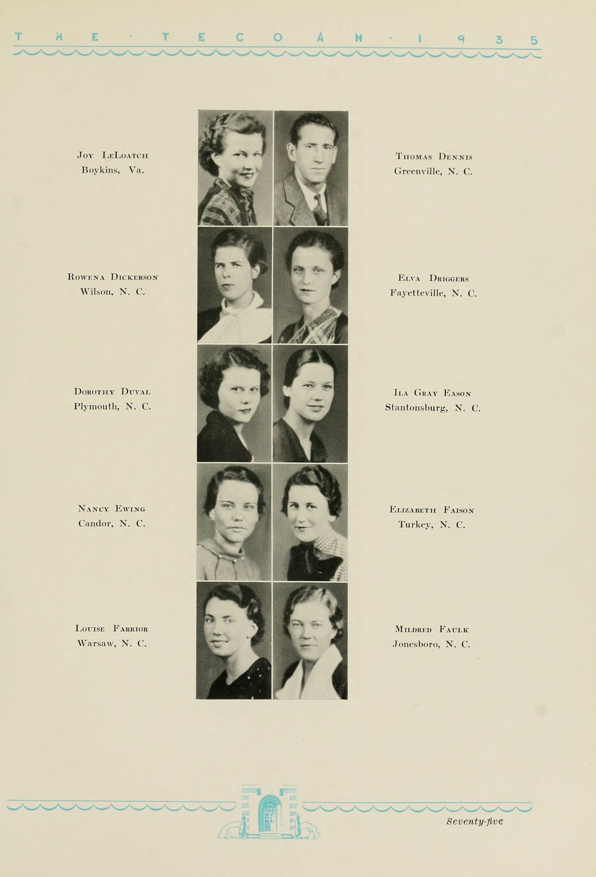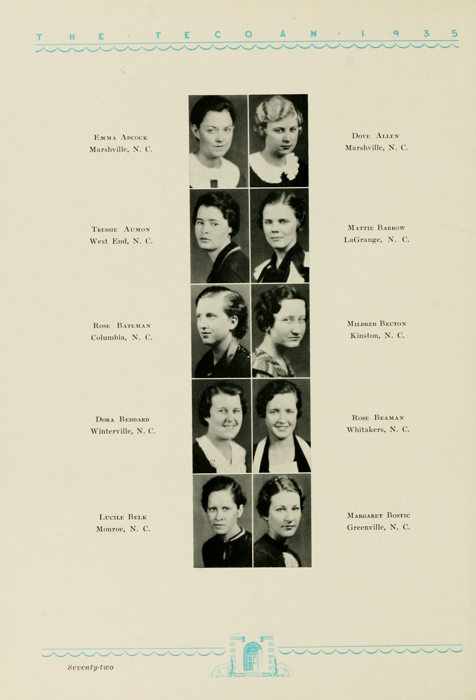 1935 Tecoan, yearbook of East Carolina Teachers College. The first yearbook published by the students of East Carolina Teachers College, The Tecoan, debuted in 1923. The name of the yearbook changed to the Buccaneer in 1953. The Buccaneer suspended publication from 1976-1978 and 1991-2005, finally ceasing in 2018. It was superseded by Anchors Away in 2019.