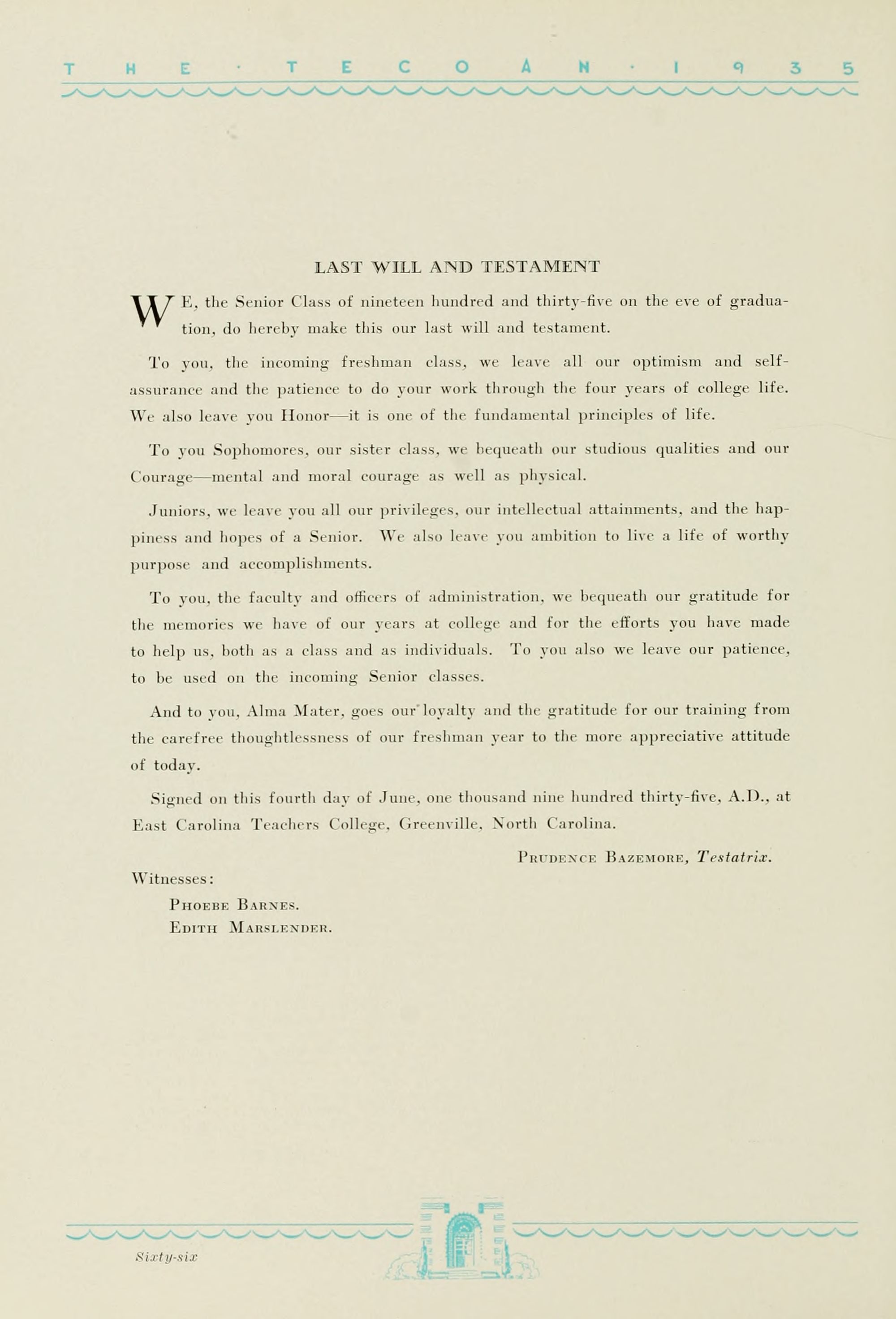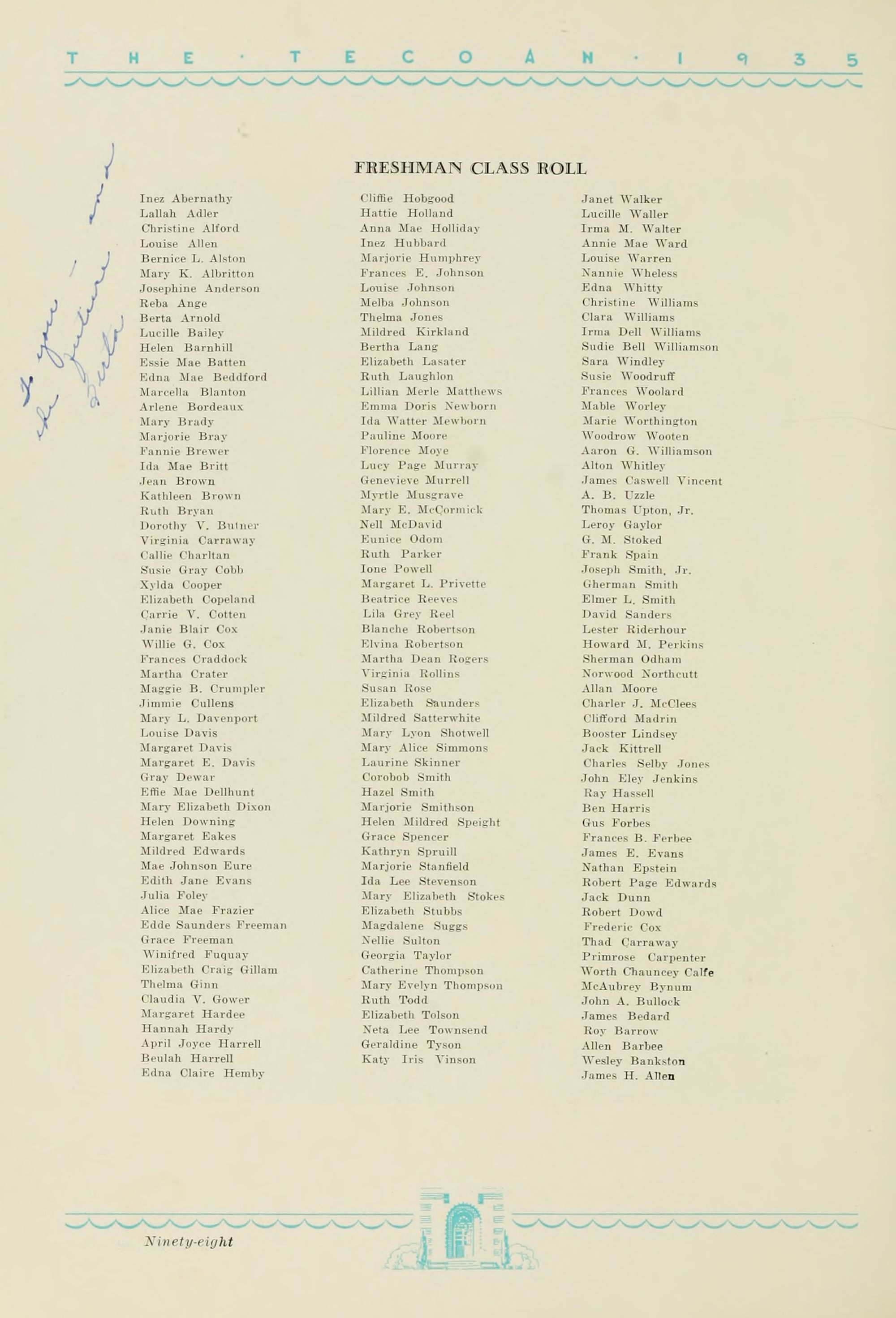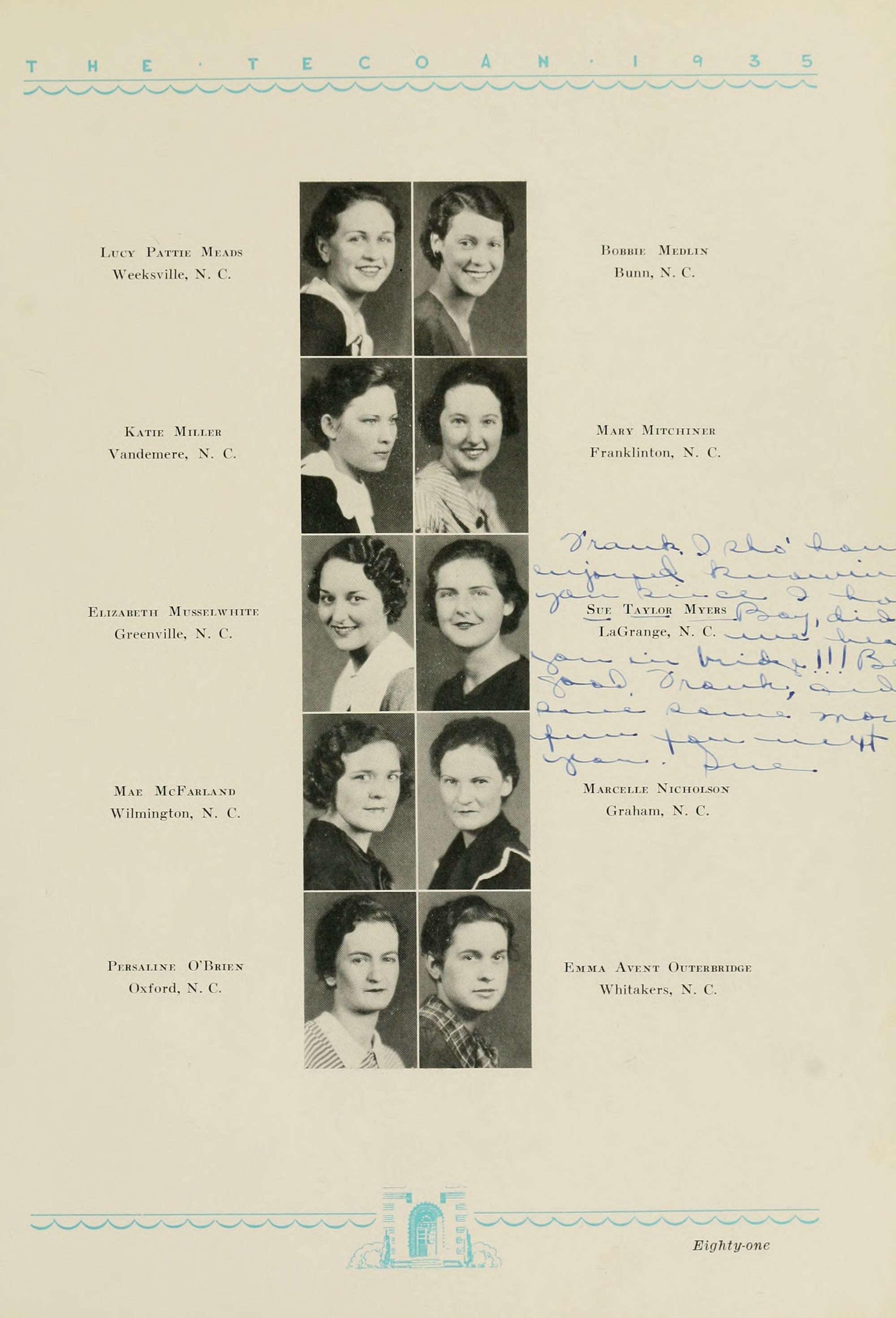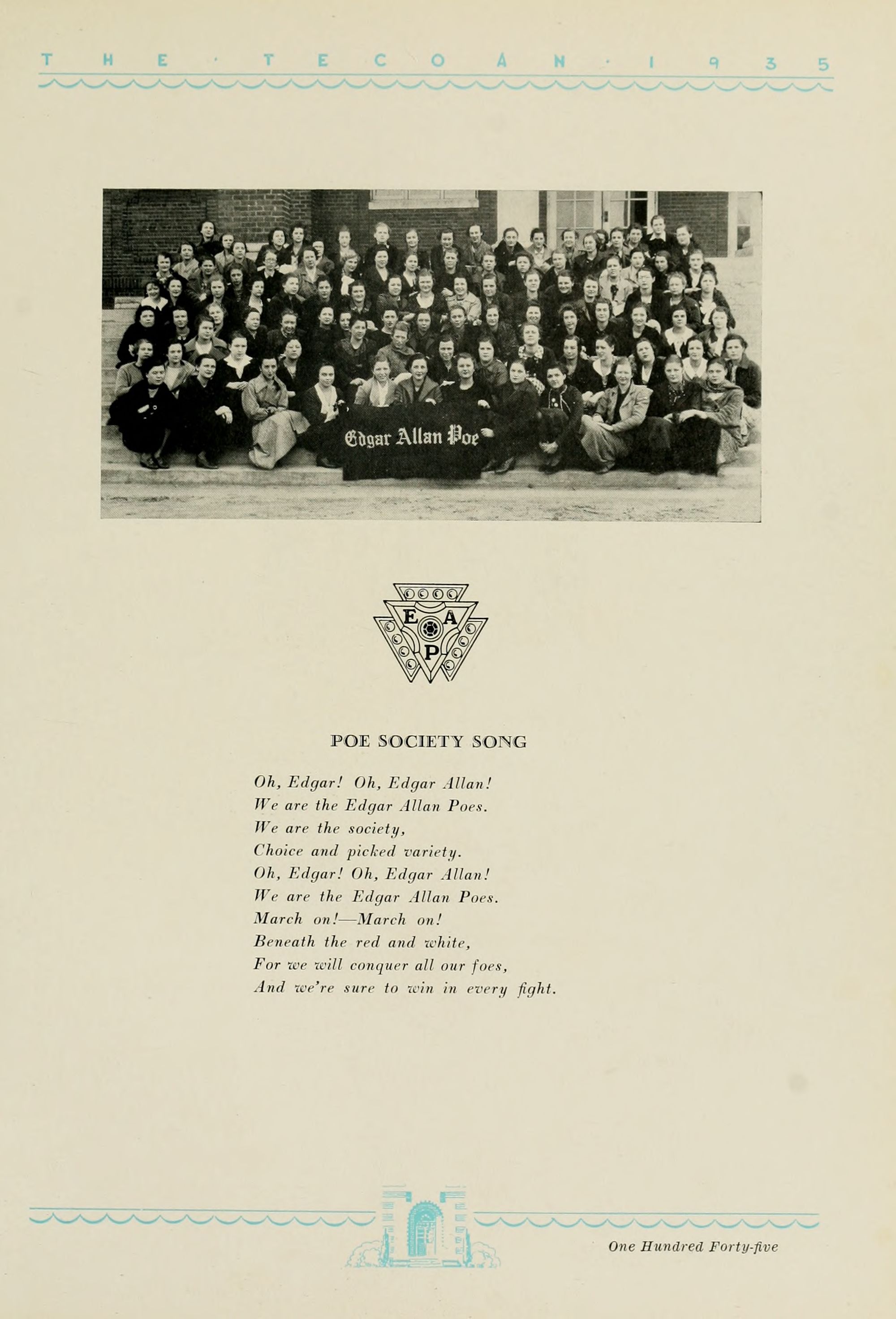 1935 Tecoan, yearbook of East Carolina Teachers College. The first yearbook published by the students of East Carolina Teachers College, The Tecoan, debuted in 1923. The name of the yearbook changed to the Buccaneer in 1953. The Buccaneer suspended publication from 1976-1978 and 1991-2005, finally ceasing in 2018. It was superseded by Anchors Away in 2019.