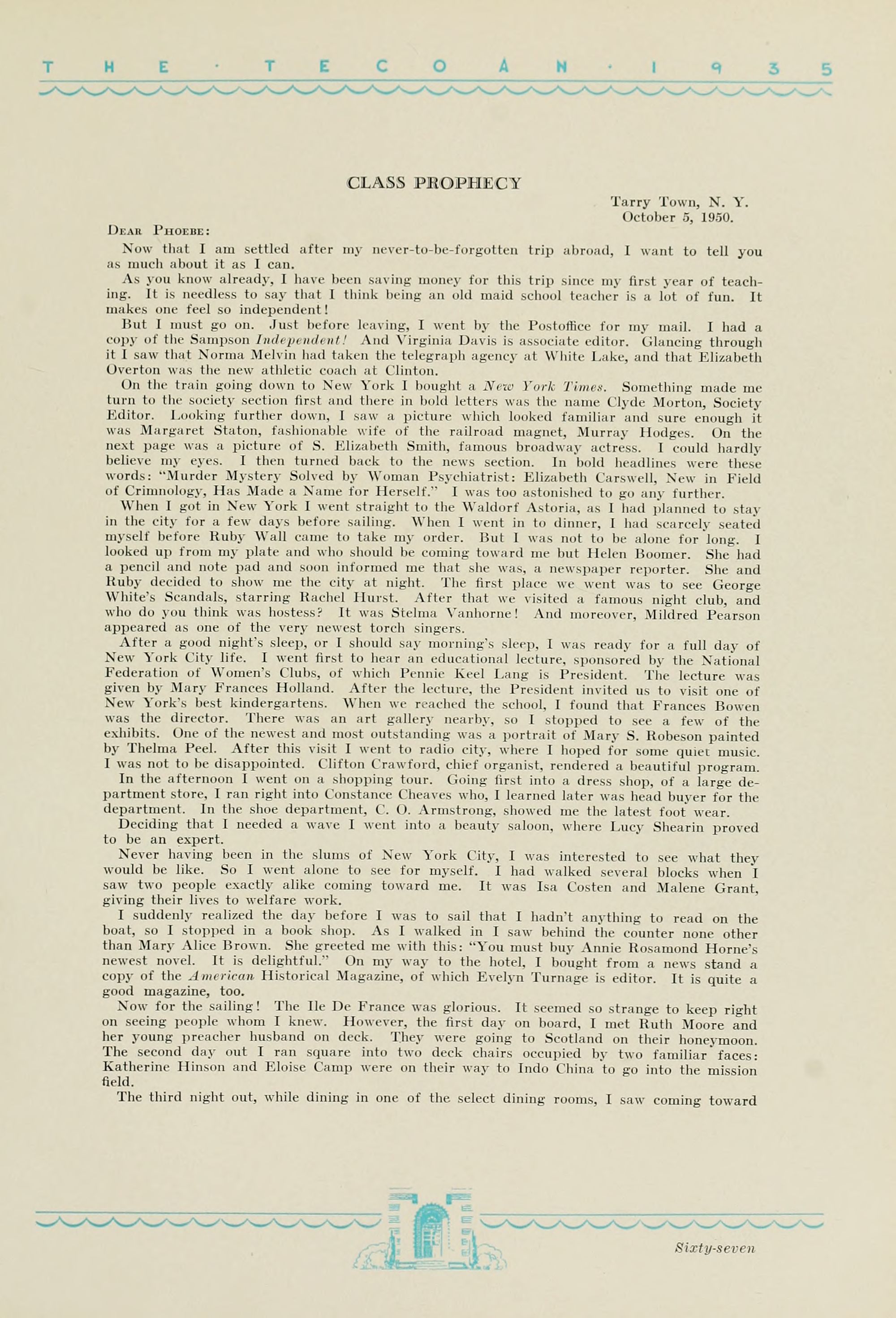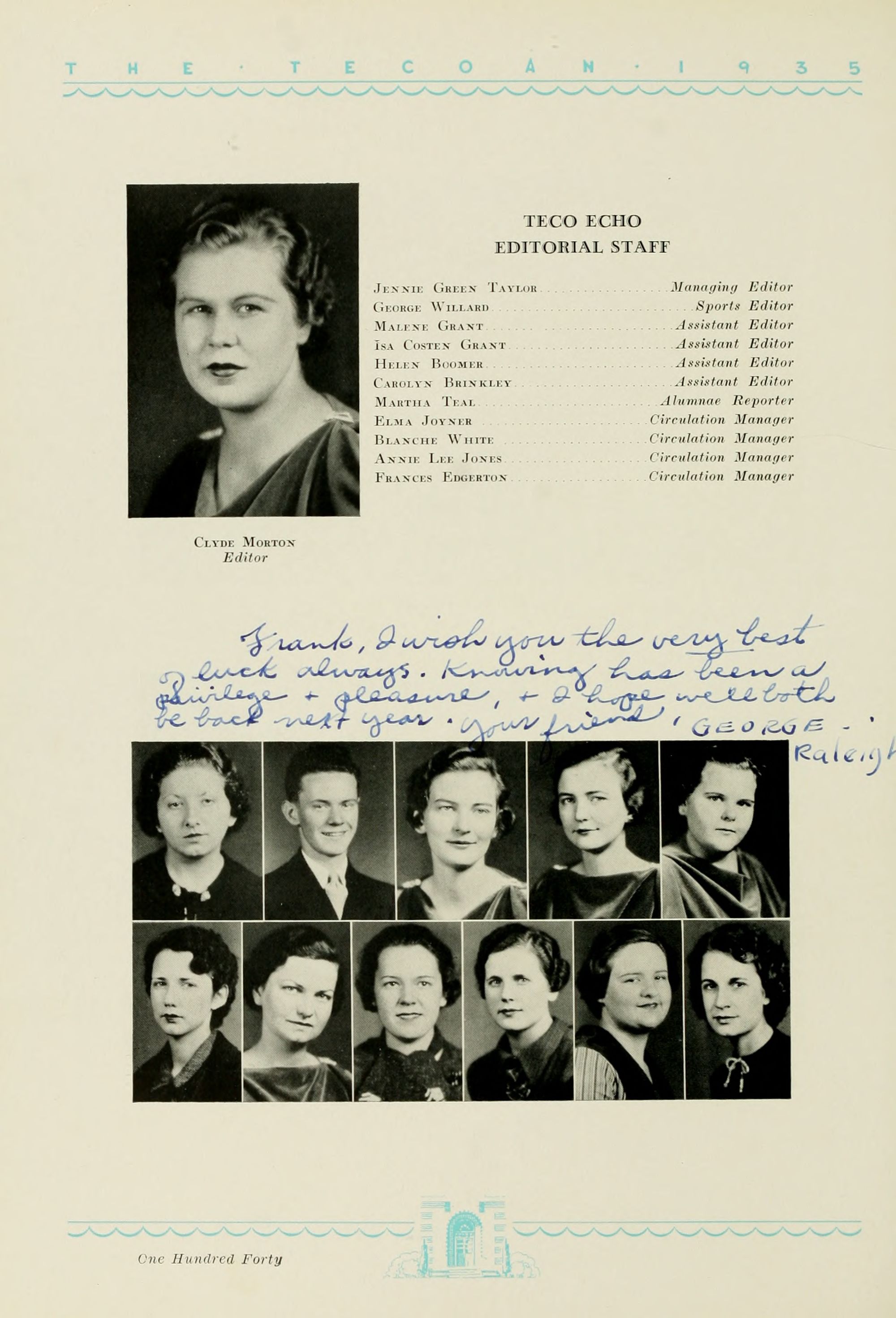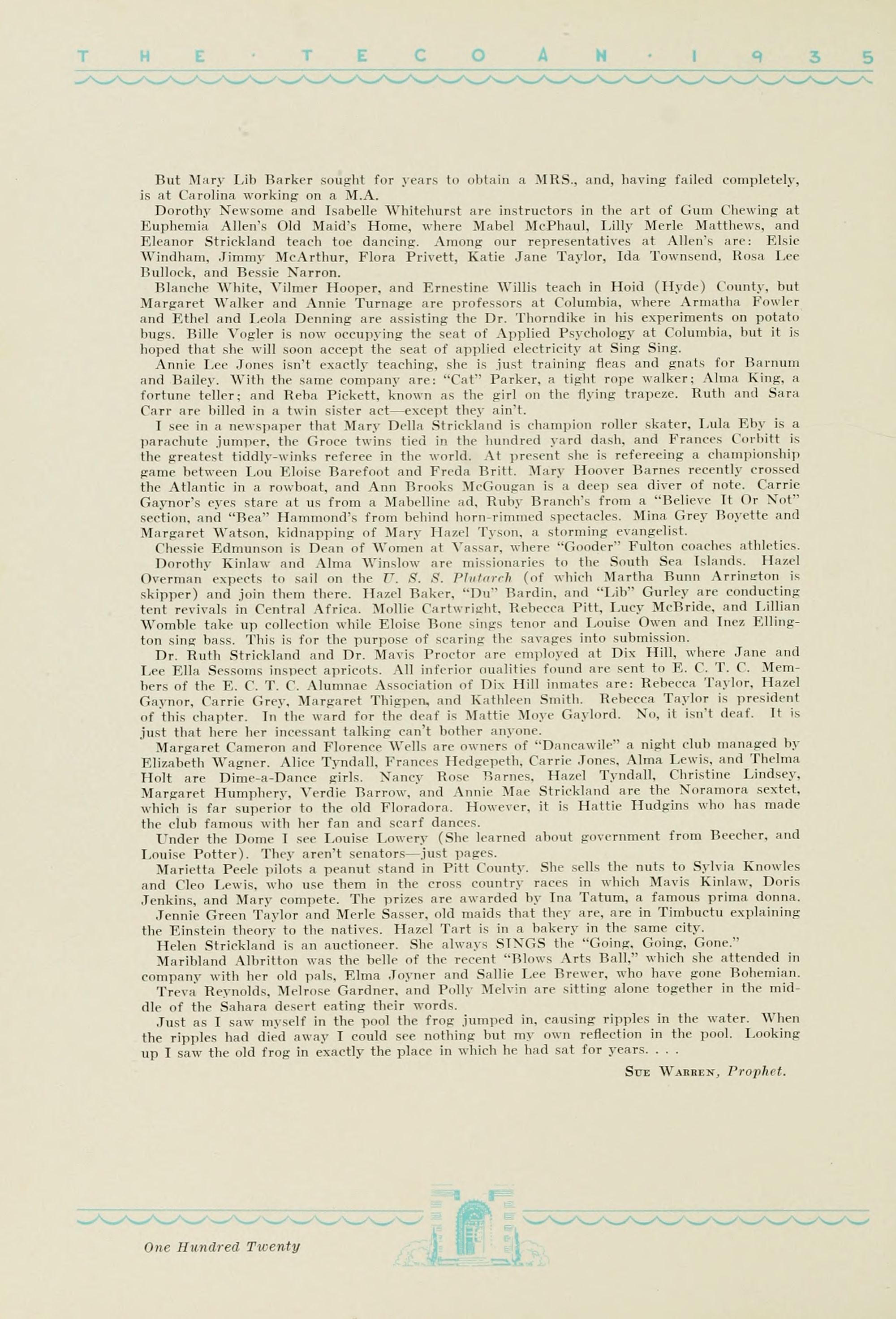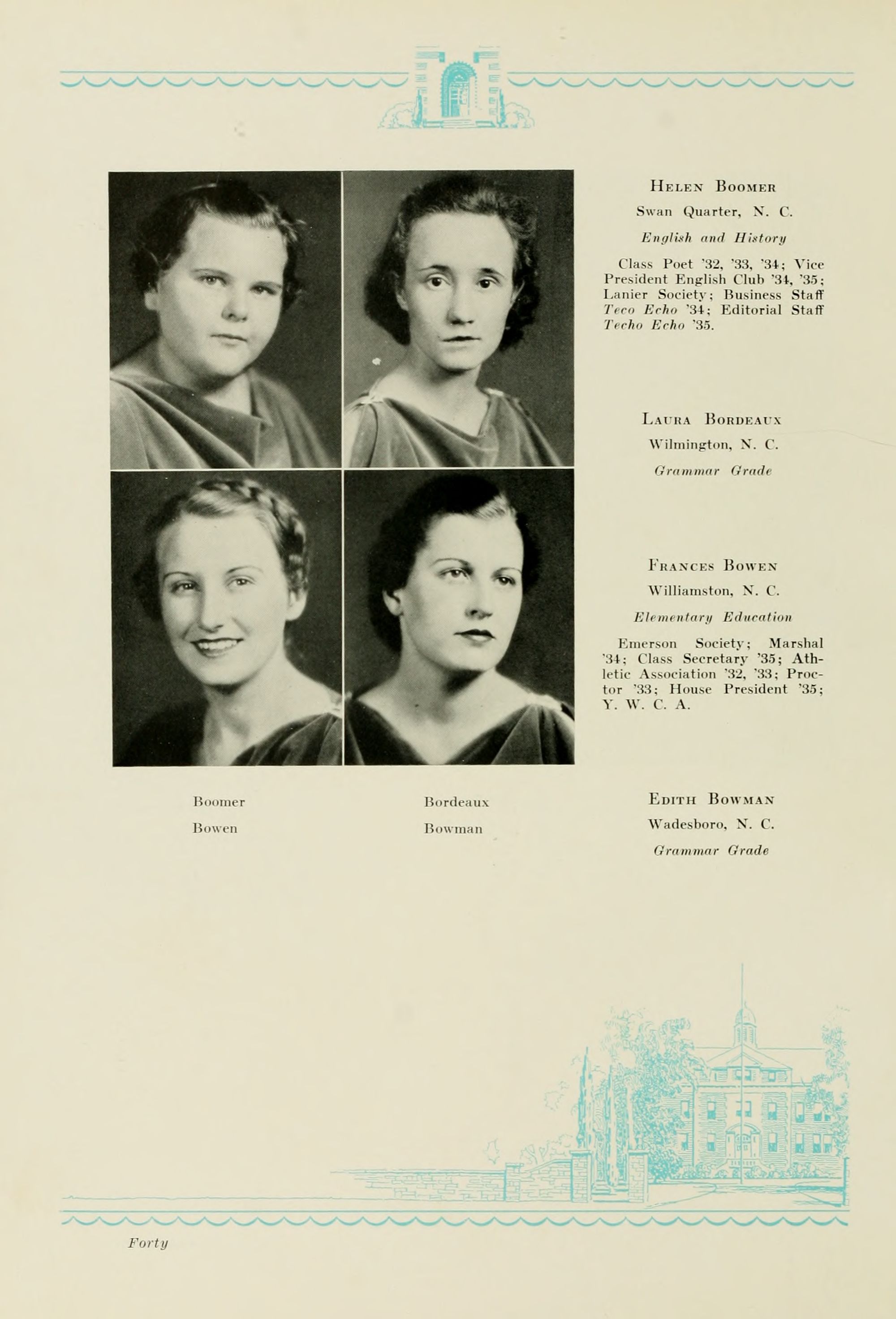 1935 Tecoan, yearbook of East Carolina Teachers College. The first yearbook published by the students of East Carolina Teachers College, The Tecoan, debuted in 1923. The name of the yearbook changed to the Buccaneer in 1953. The Buccaneer suspended publication from 1976-1978 and 1991-2005, finally ceasing in 2018. It was superseded by Anchors Away in 2019.