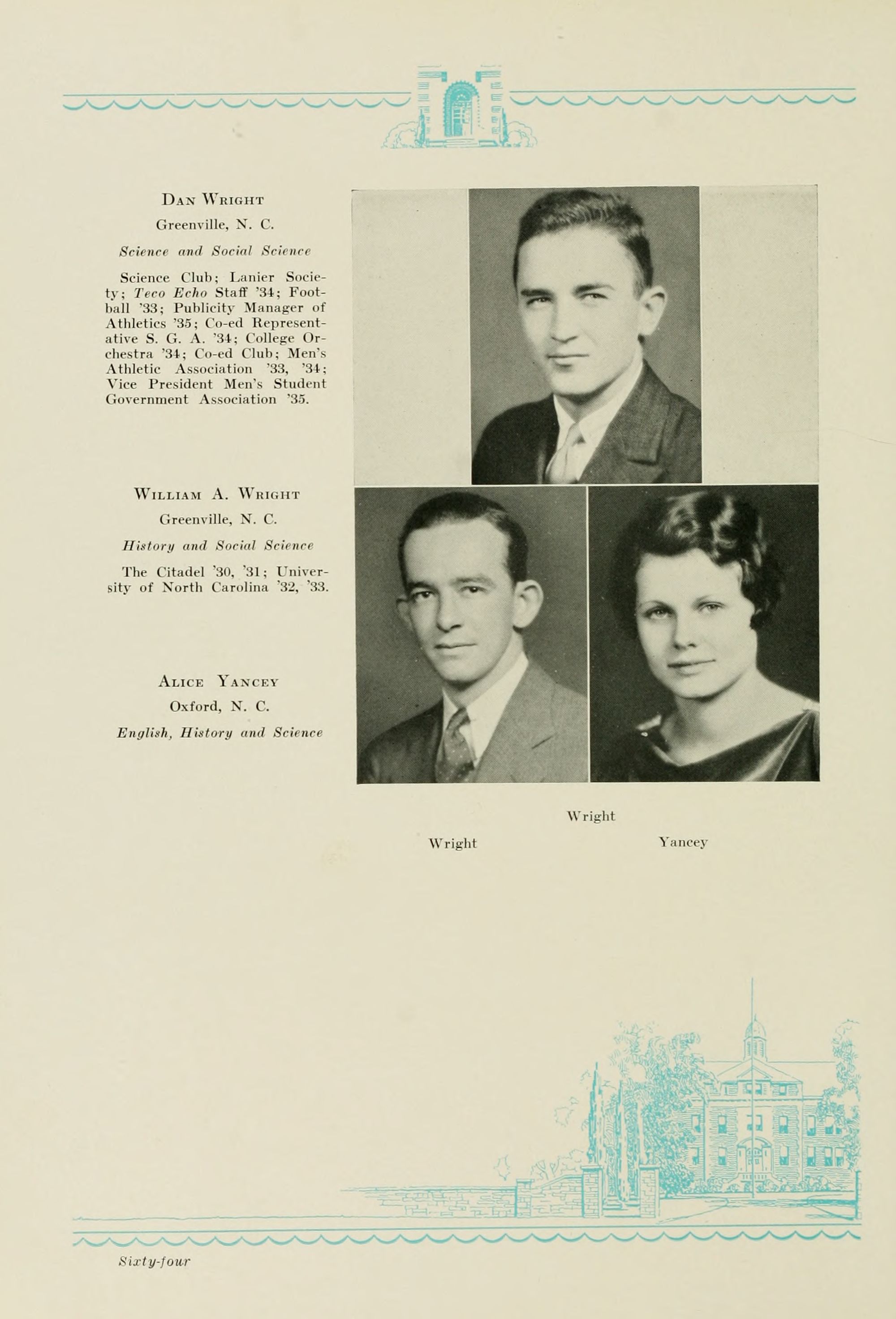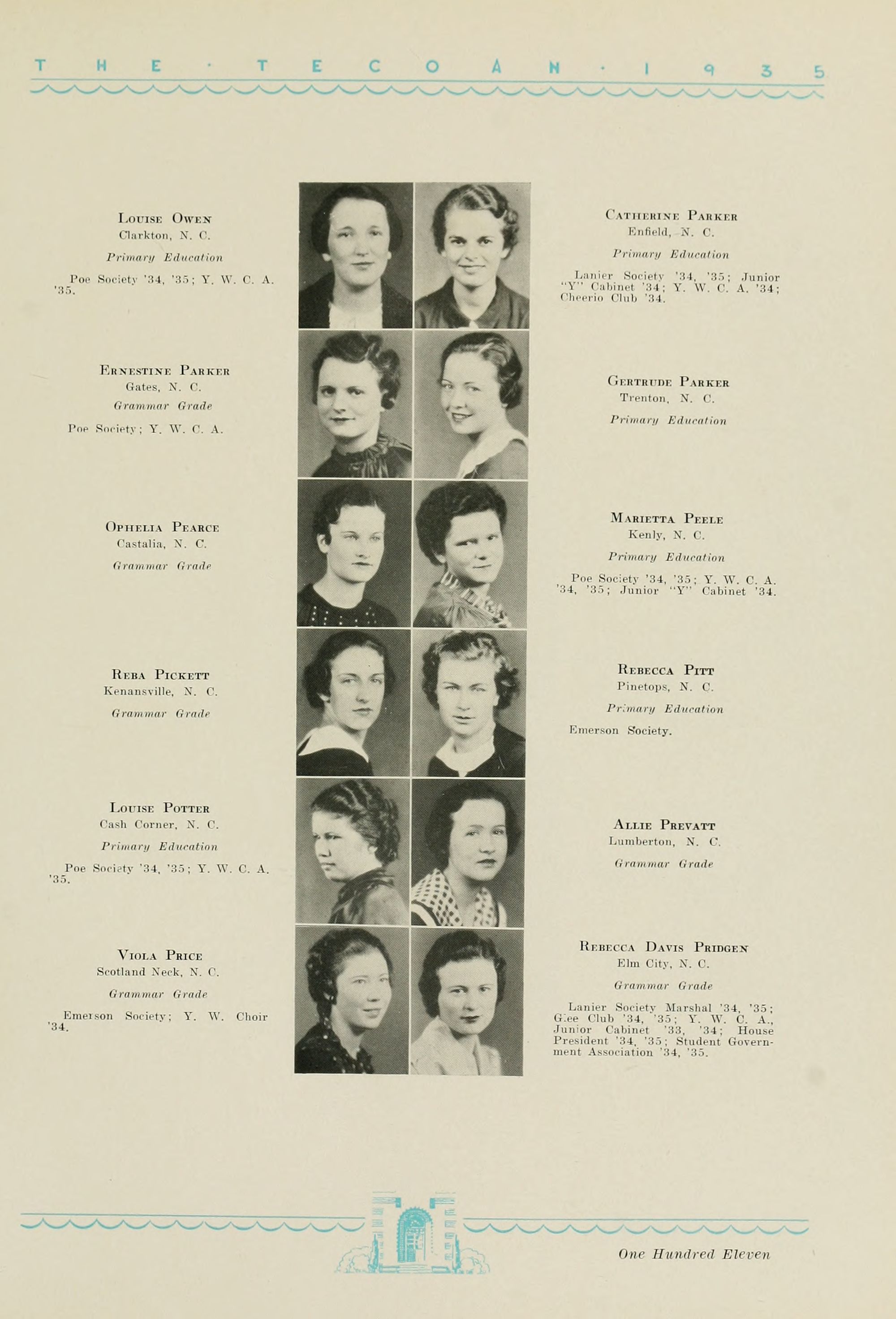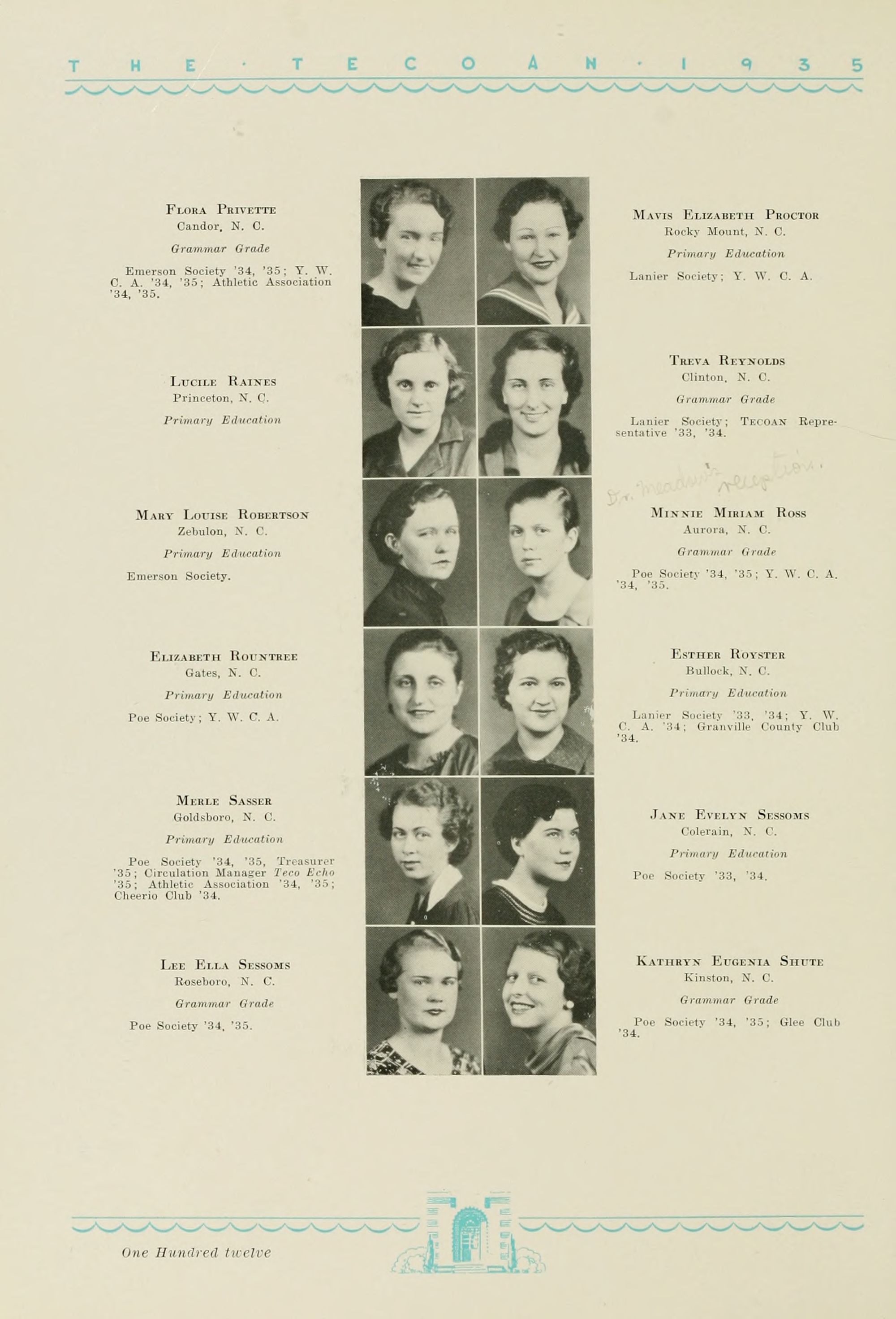 DREWRY SETTLE, 1914-1934 Greenville, N. C.