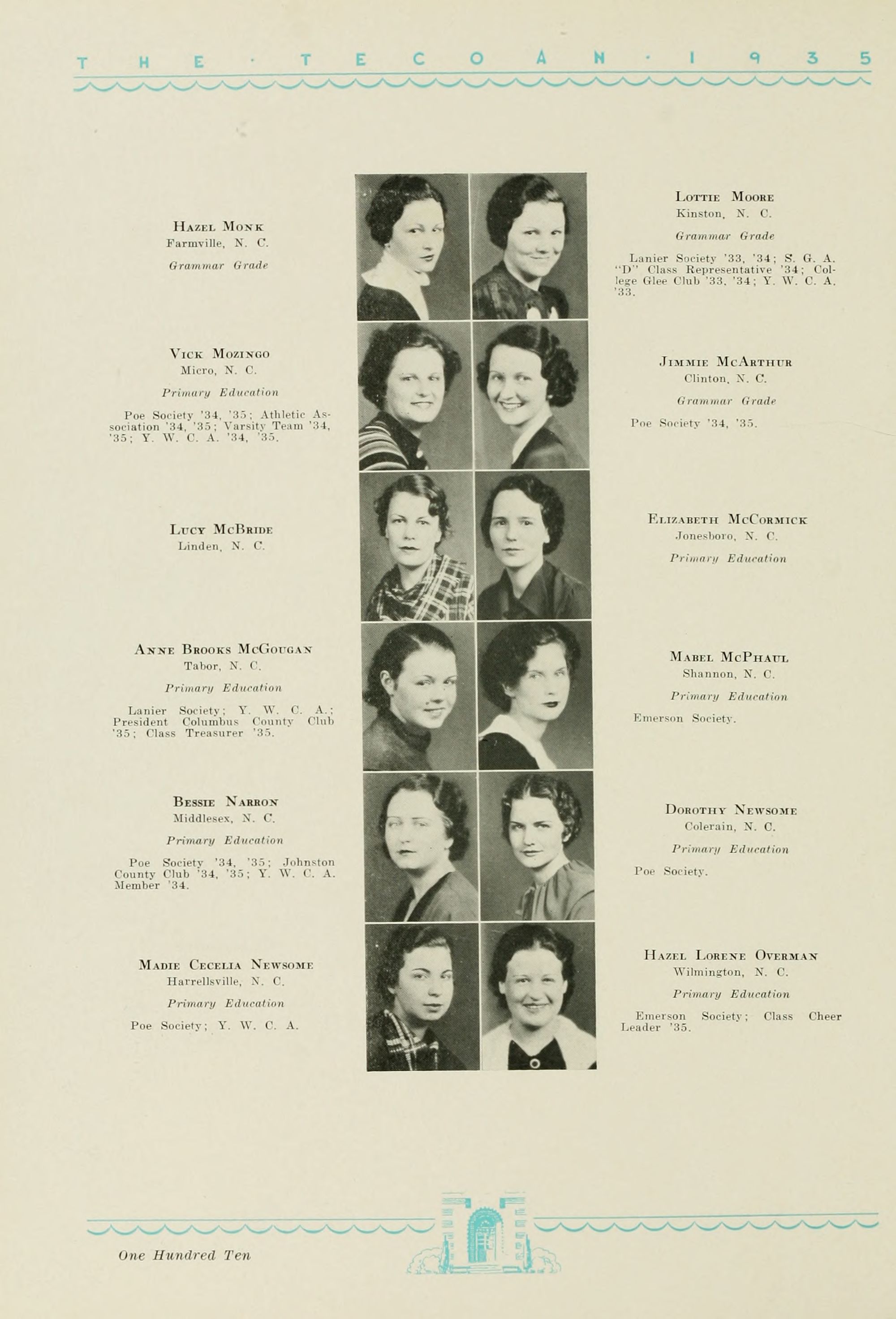 VALERIE CONNOR SIMMON'S, 1915-1934 Belhaven, N. C.