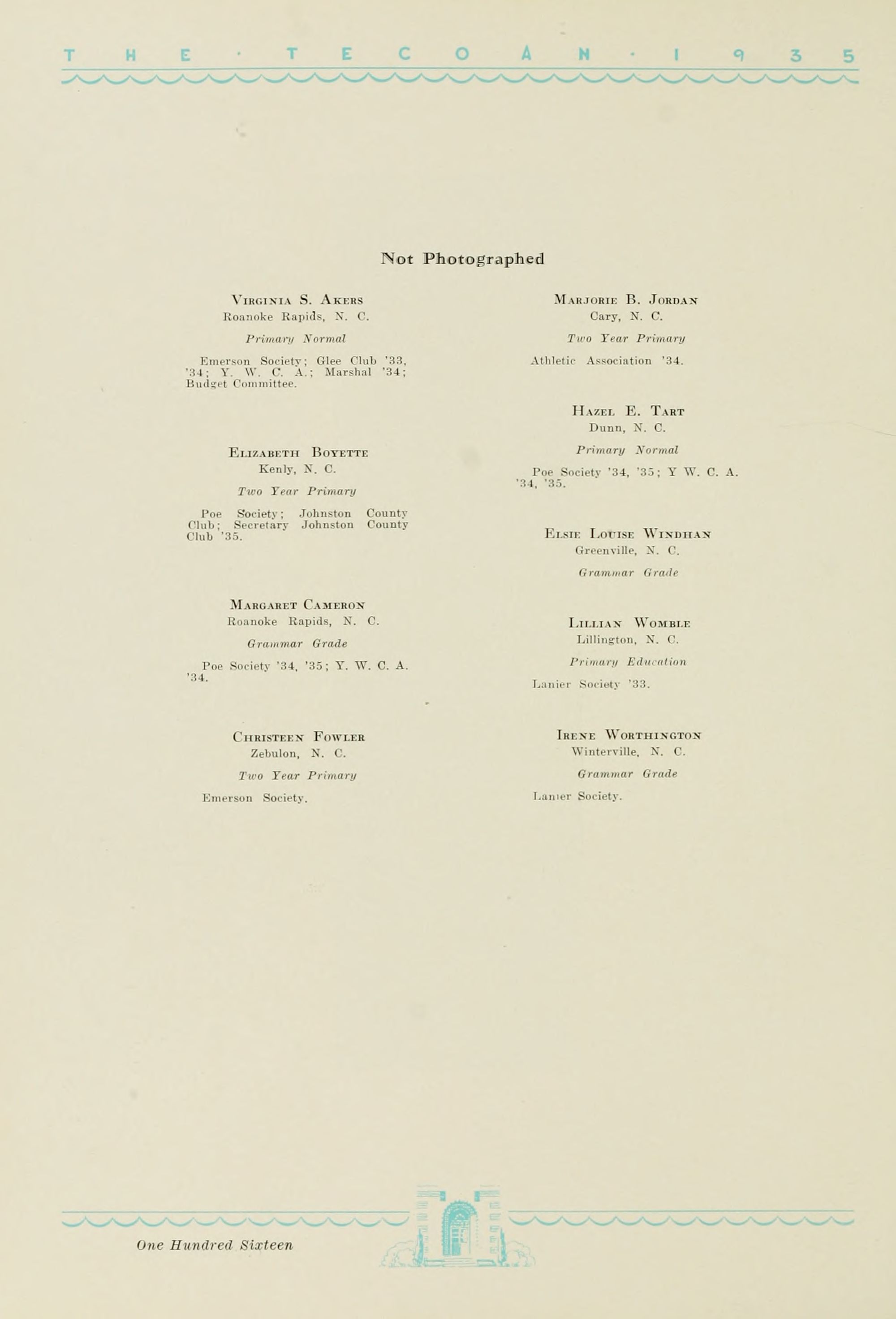 ALMA WORTHINGTON, 1901-1934 Winterville, N. C.