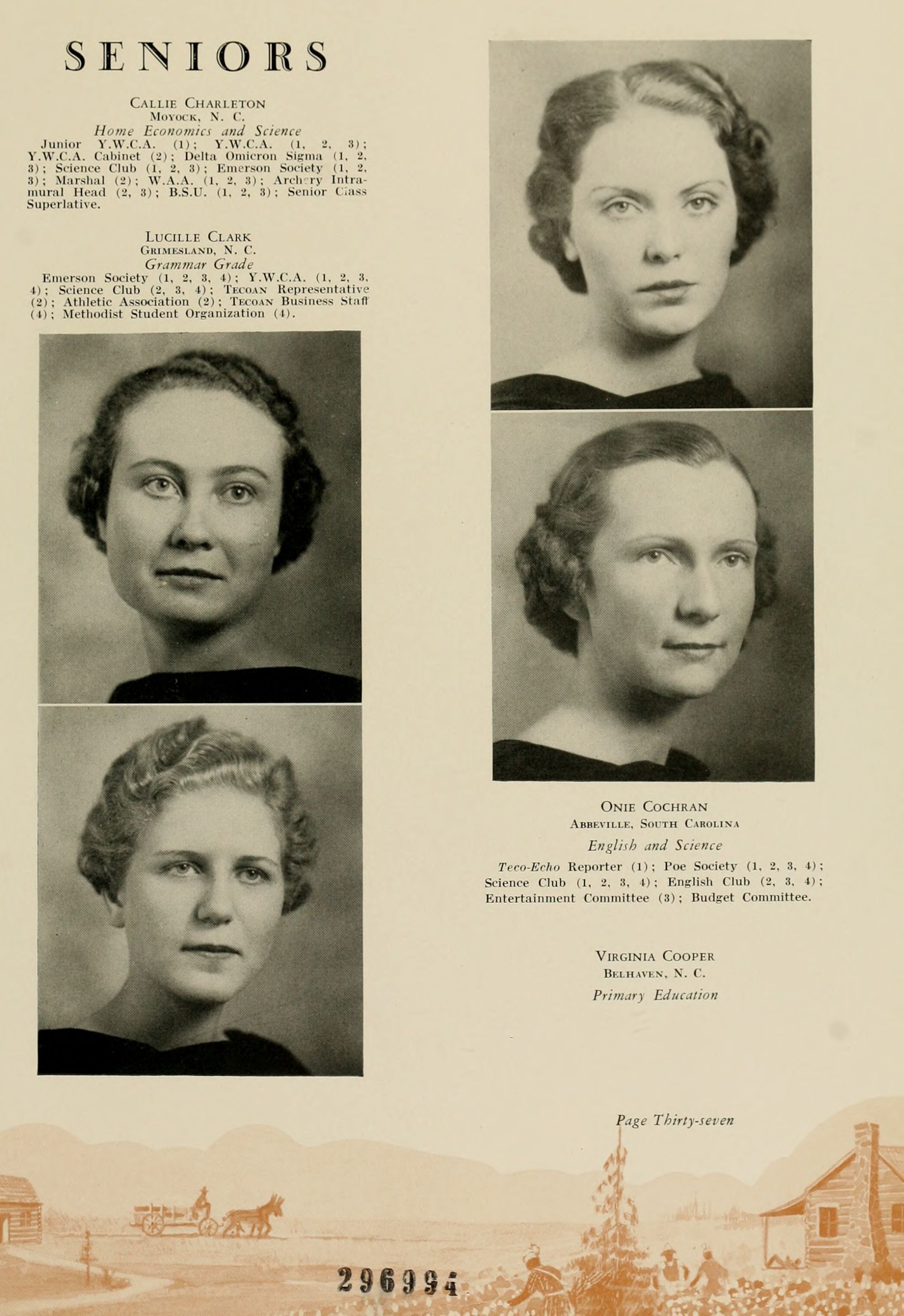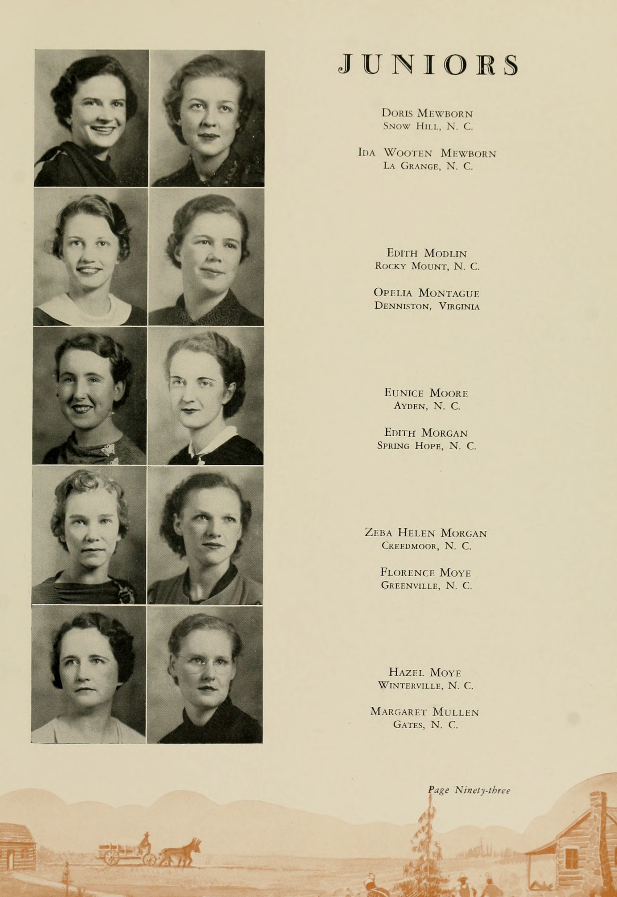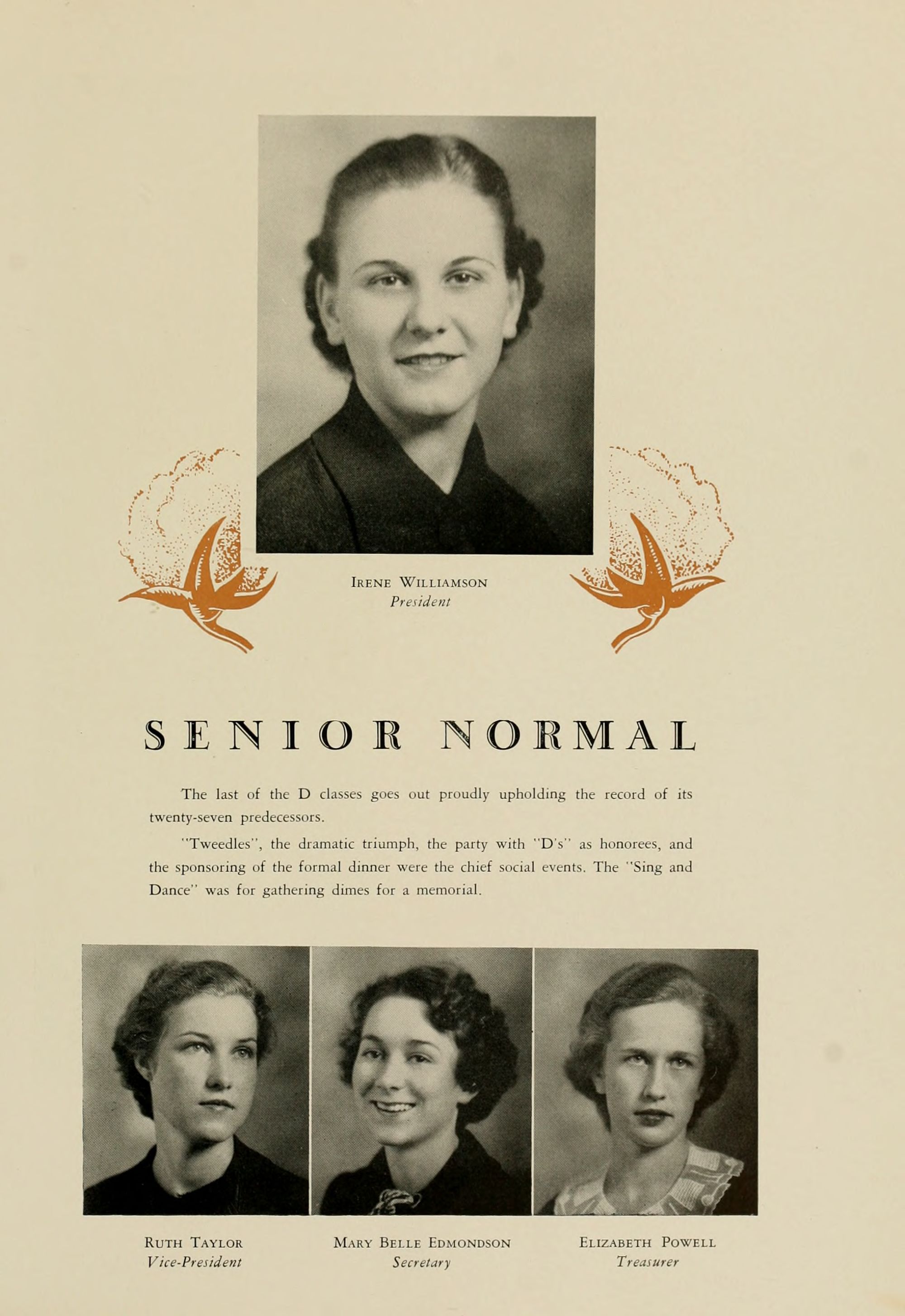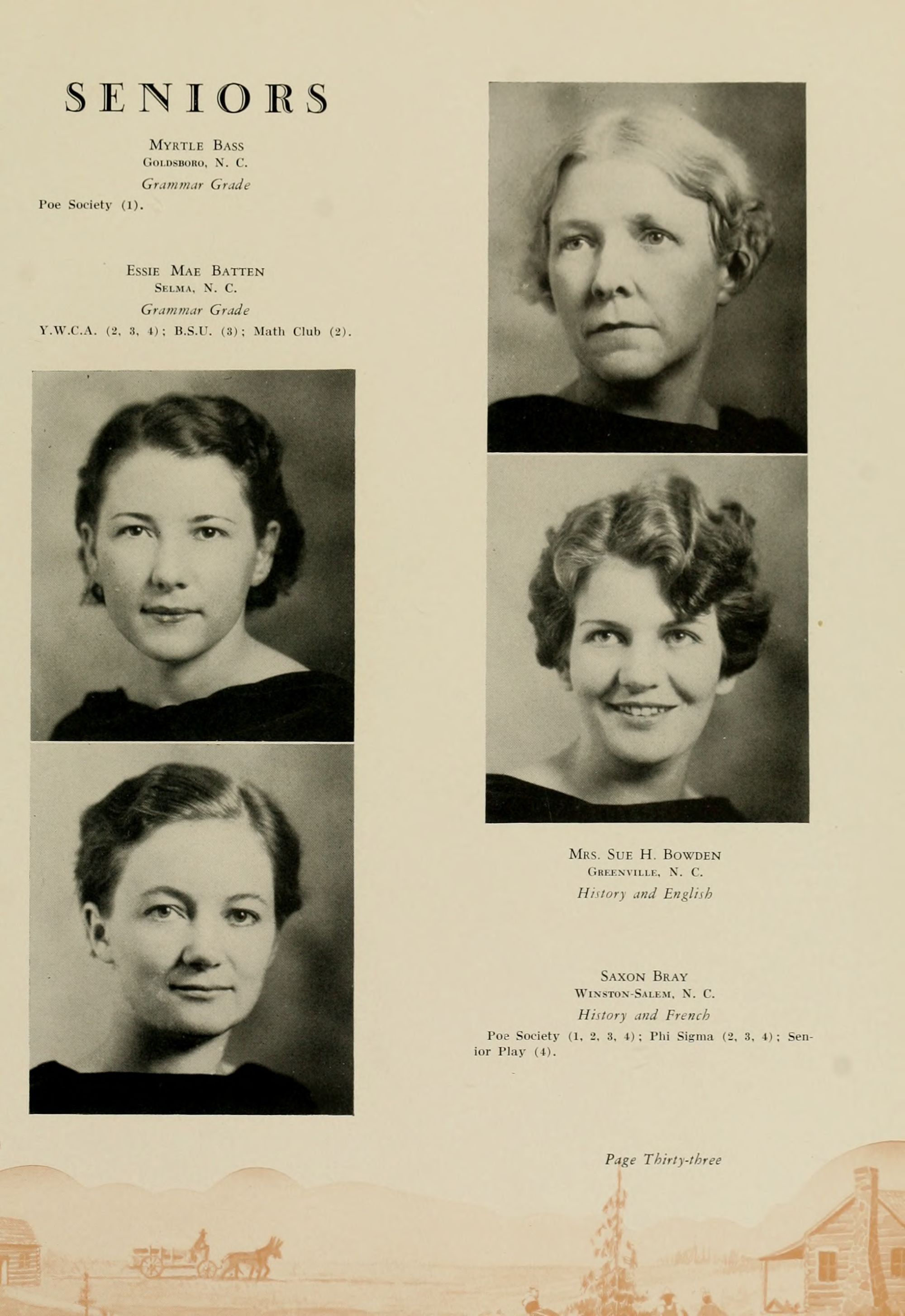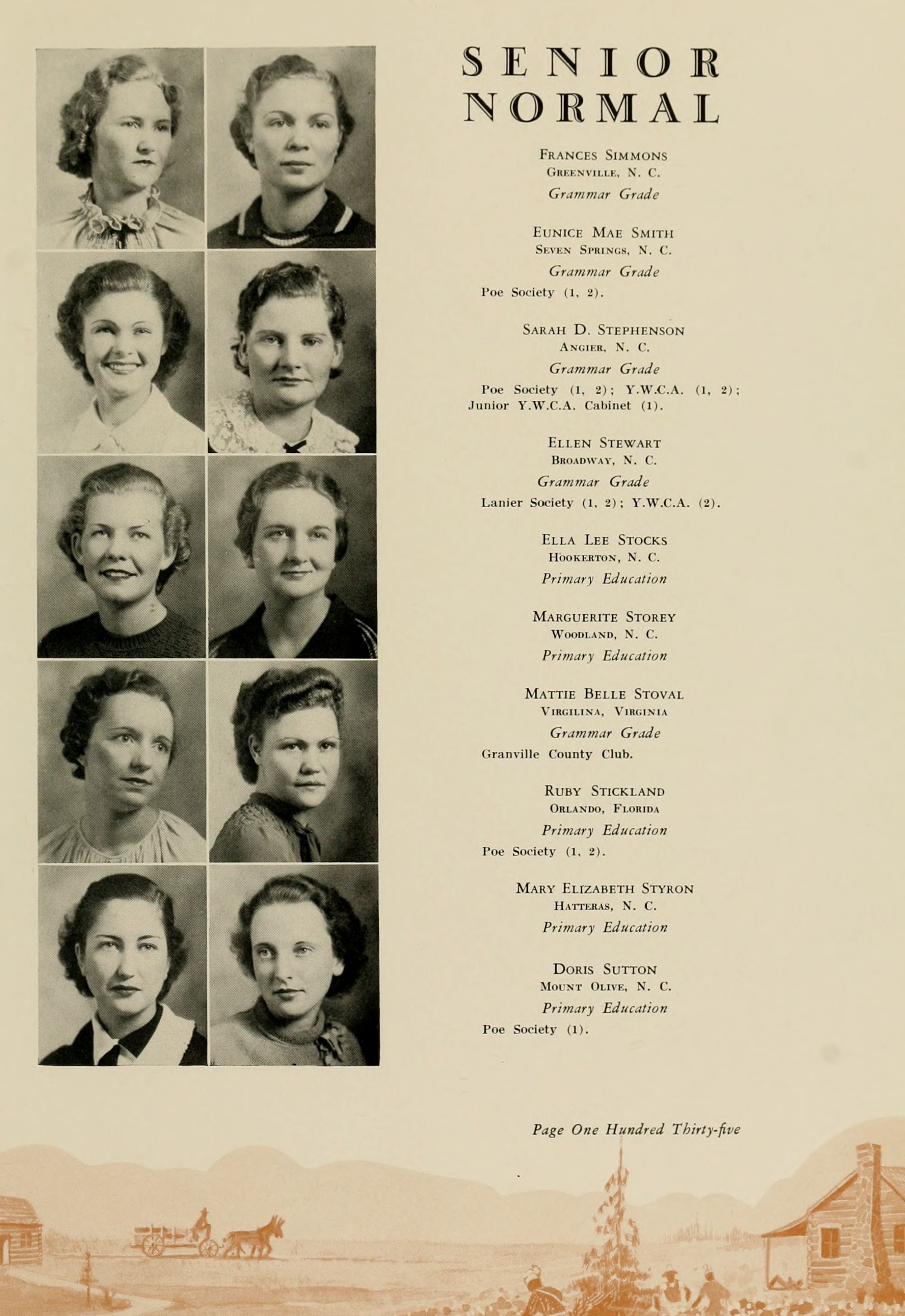 When Miss Morton began her duties as Dean of Women at East Carolina Teachers College in 1925, she entered wholeheartedly into the enterprise of making this institution one of the outstanding colleges of our country. With ceaseless effort and undaunted spirit, she is accomplishing her purpose. Miss Morton understands young women and helps young women to understand themselves. Those girls who have come to her with their problems have found that she is always willing to help them and they go away with a clearer understanding and a possible solution.
