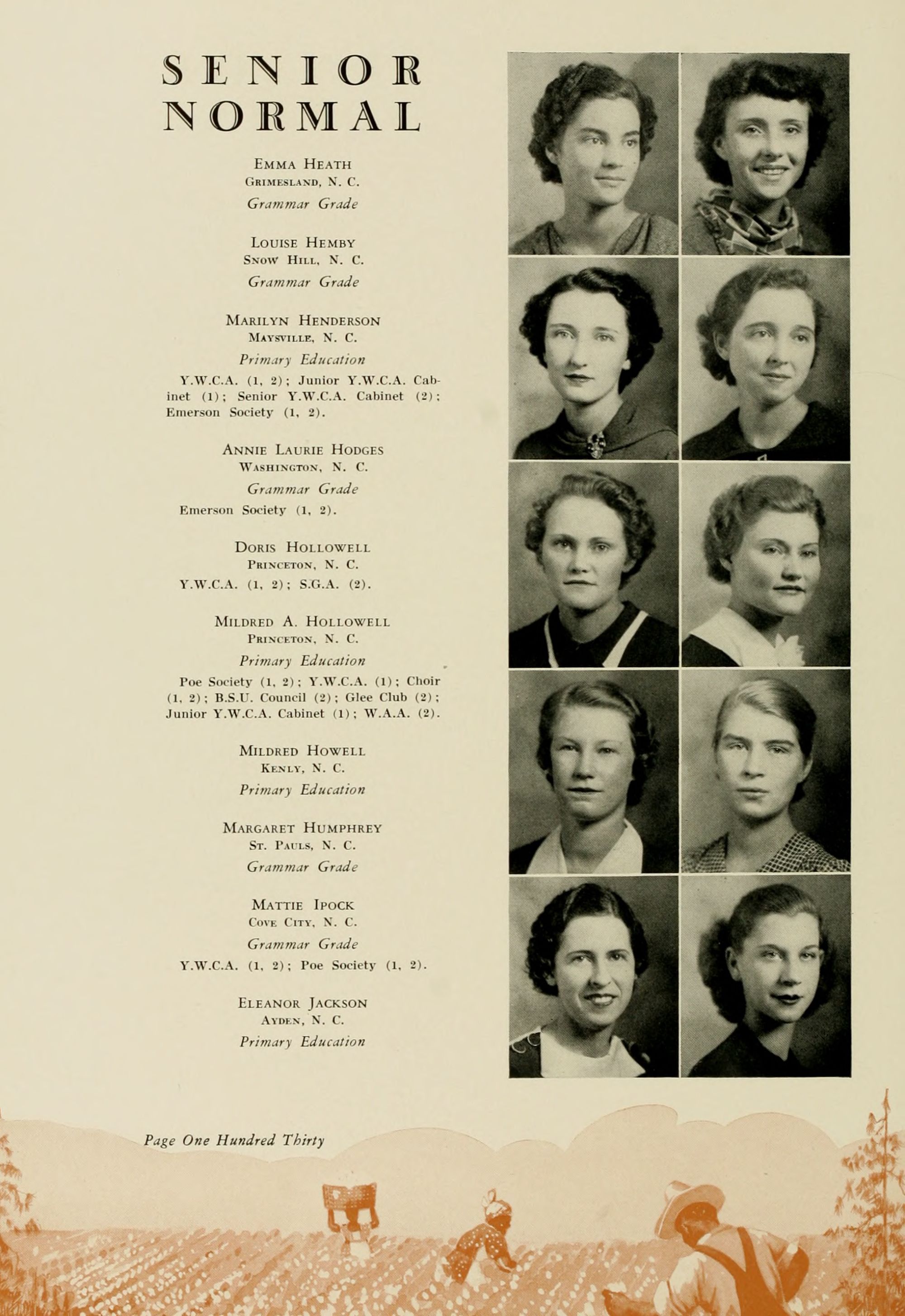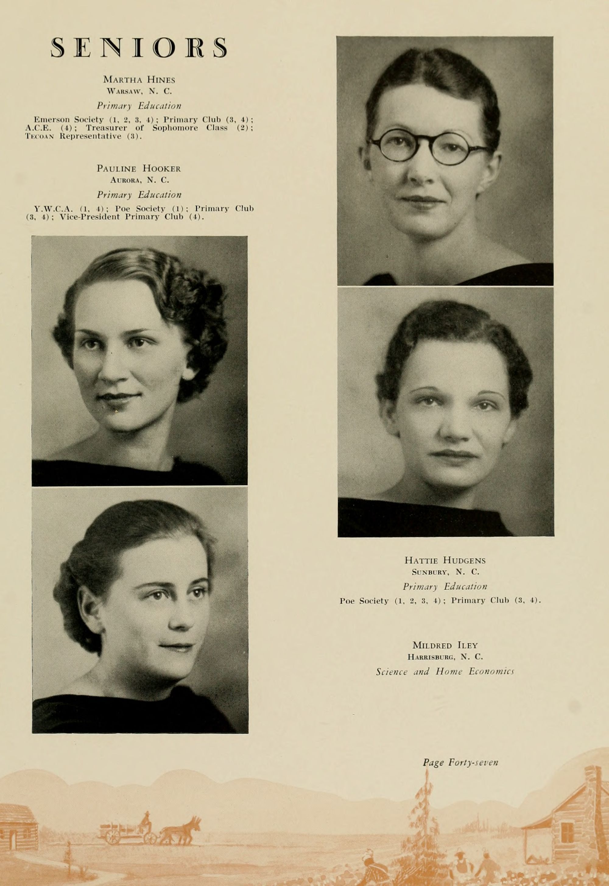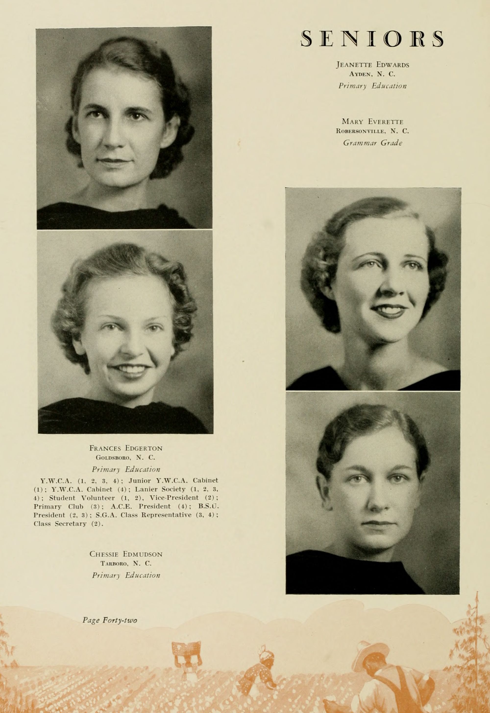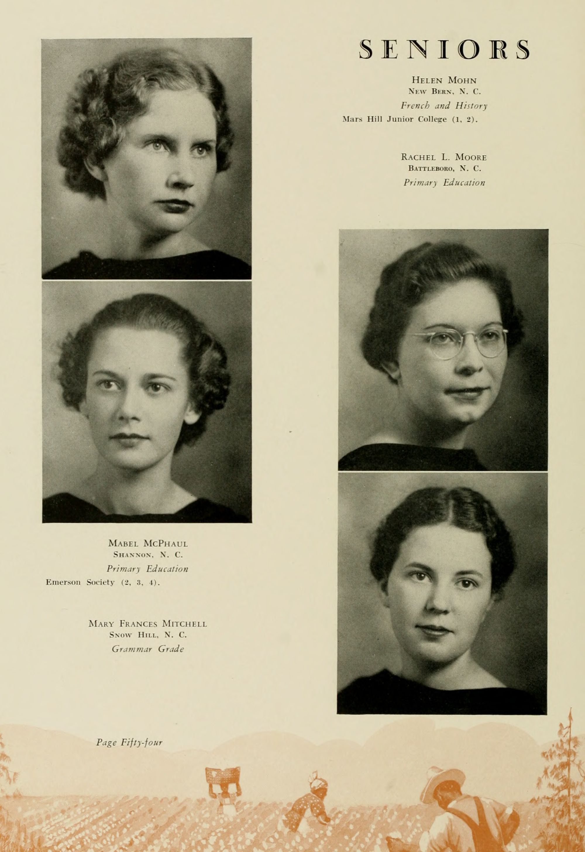 When Miss Morton began her duties as Dean of Women at East Carolina Teachers College in 1925, she entered wholeheartedly into the enterprise of making this institution one of the outstanding colleges of our country. With ceaseless effort and undaunted spirit, she is accomplishing her purpose. Miss Morton understands young women and helps young women to understand themselves. Those girls who have come to her with their problems have found that she is always willing to help them and they go away with a clearer understanding and a possible solution.