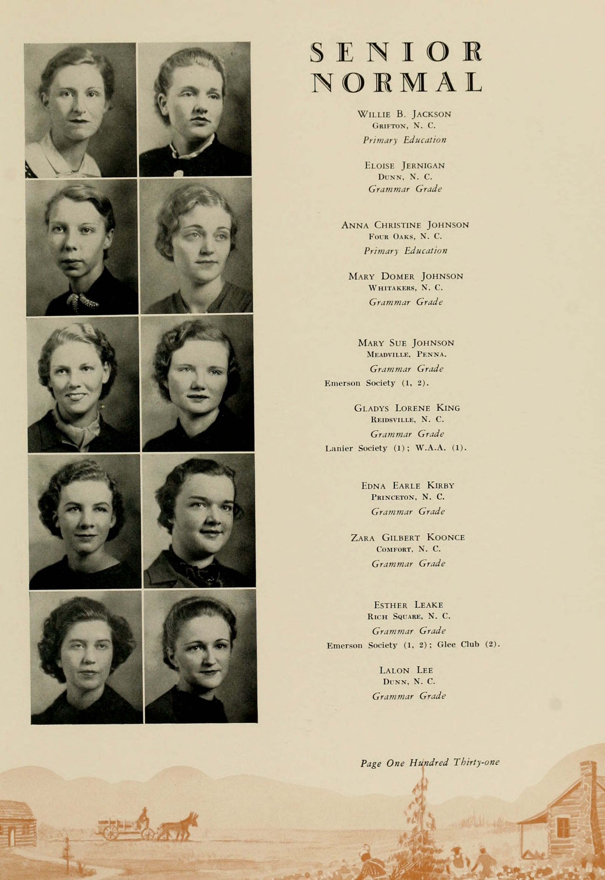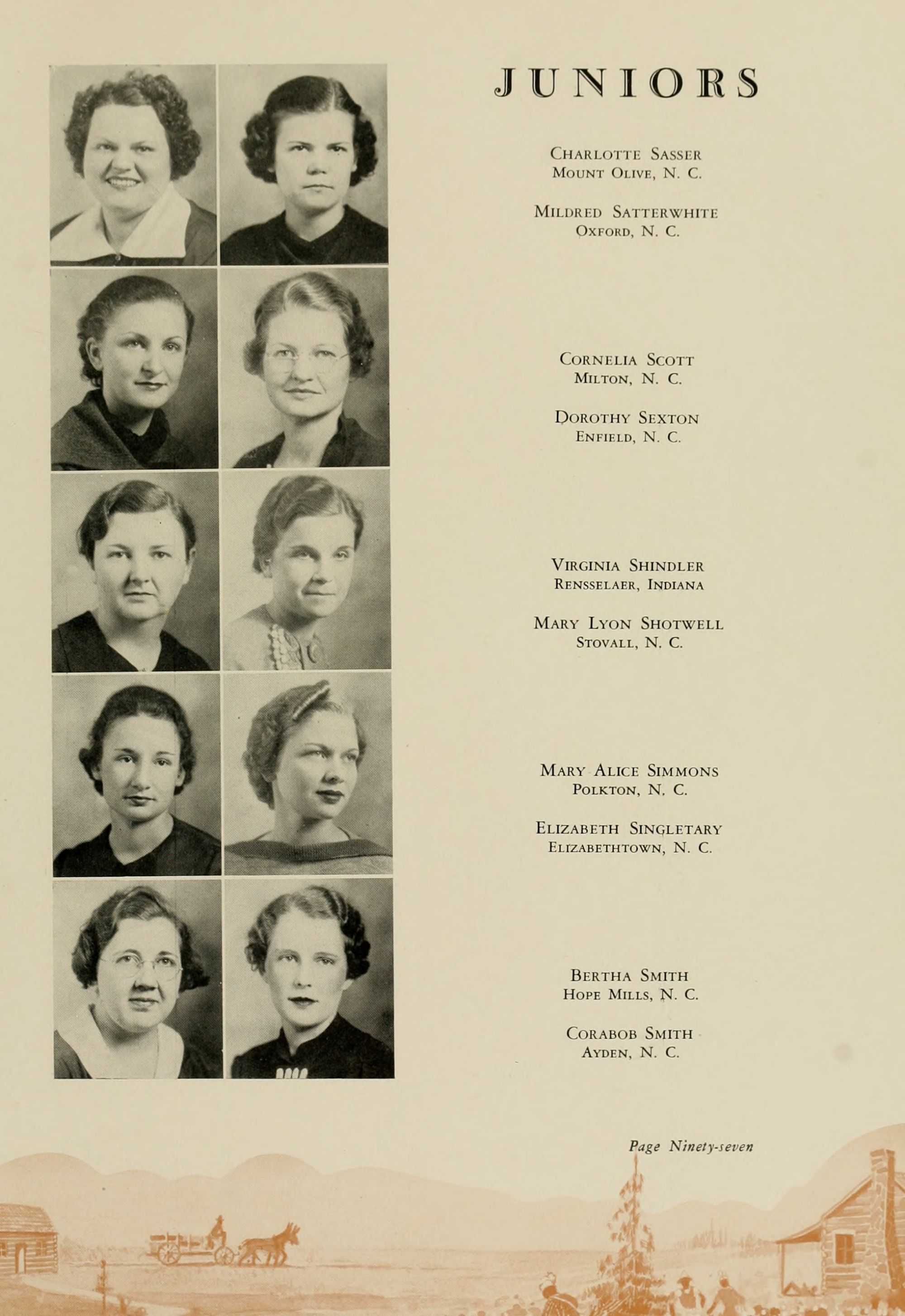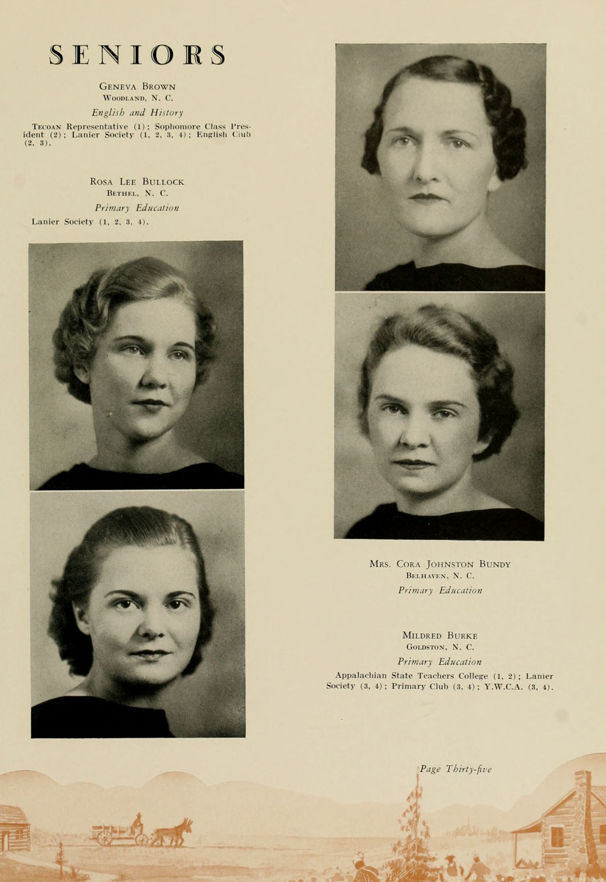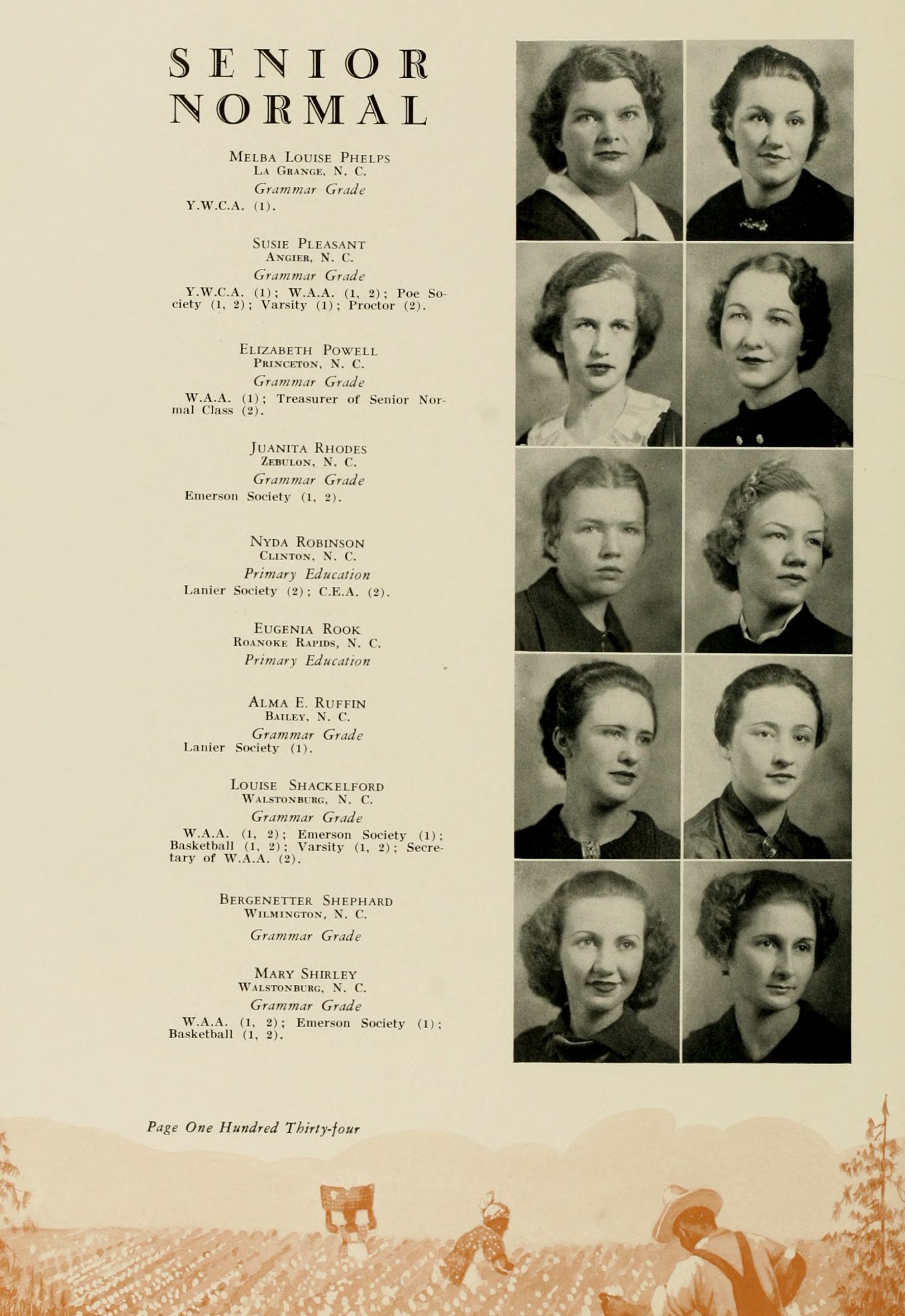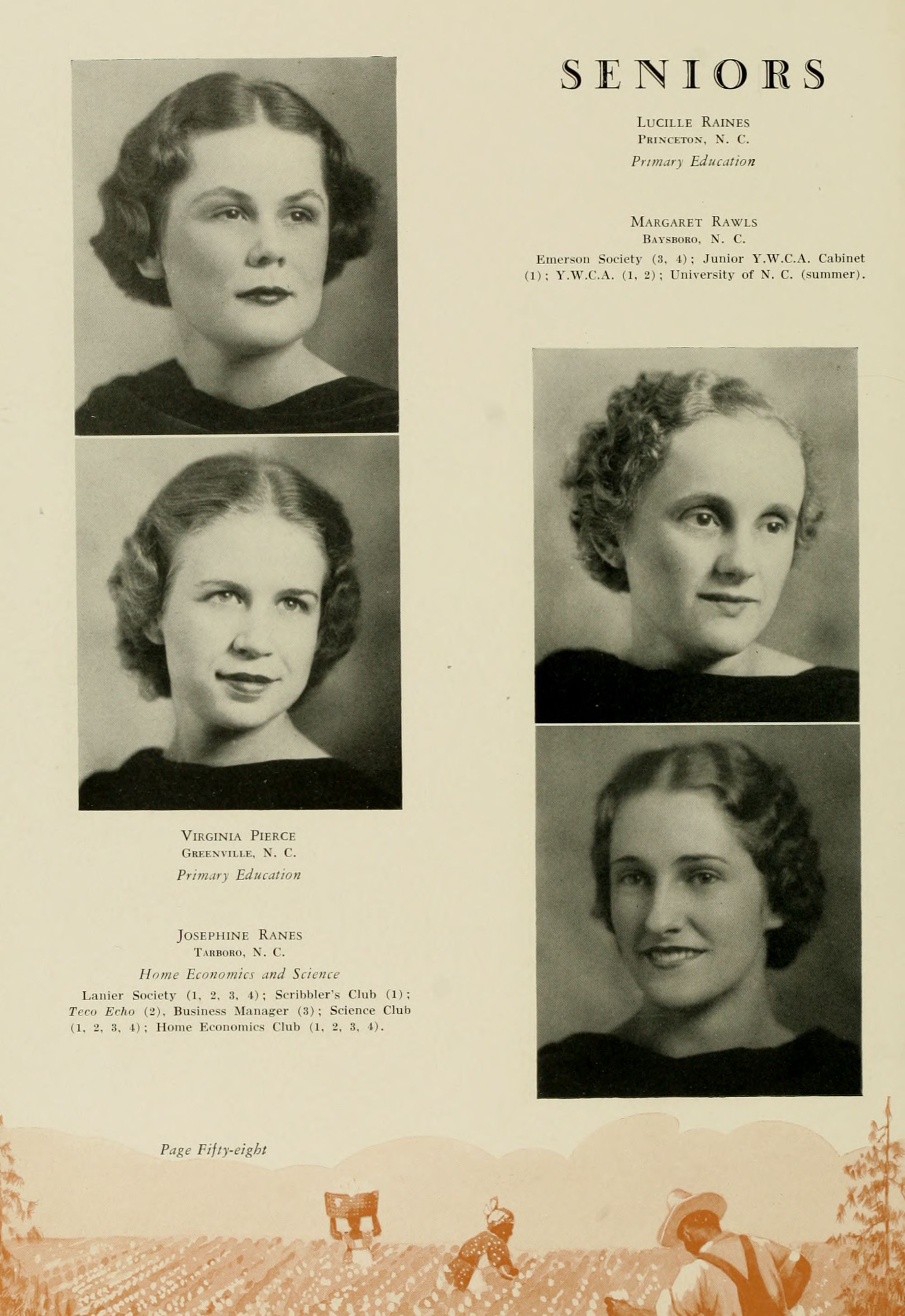 When Miss Morton began her duties as Dean of Women at East Carolina Teachers College in 1925, she entered wholeheartedly into the enterprise of making this institution one of the outstanding colleges of our country. With ceaseless effort and undaunted spirit, she is accomplishing her purpose. Miss Morton understands young women and helps young women to understand themselves. Those girls who have come to her with their problems have found that she is always willing to help them and they go away with a clearer understanding and a possible solution.