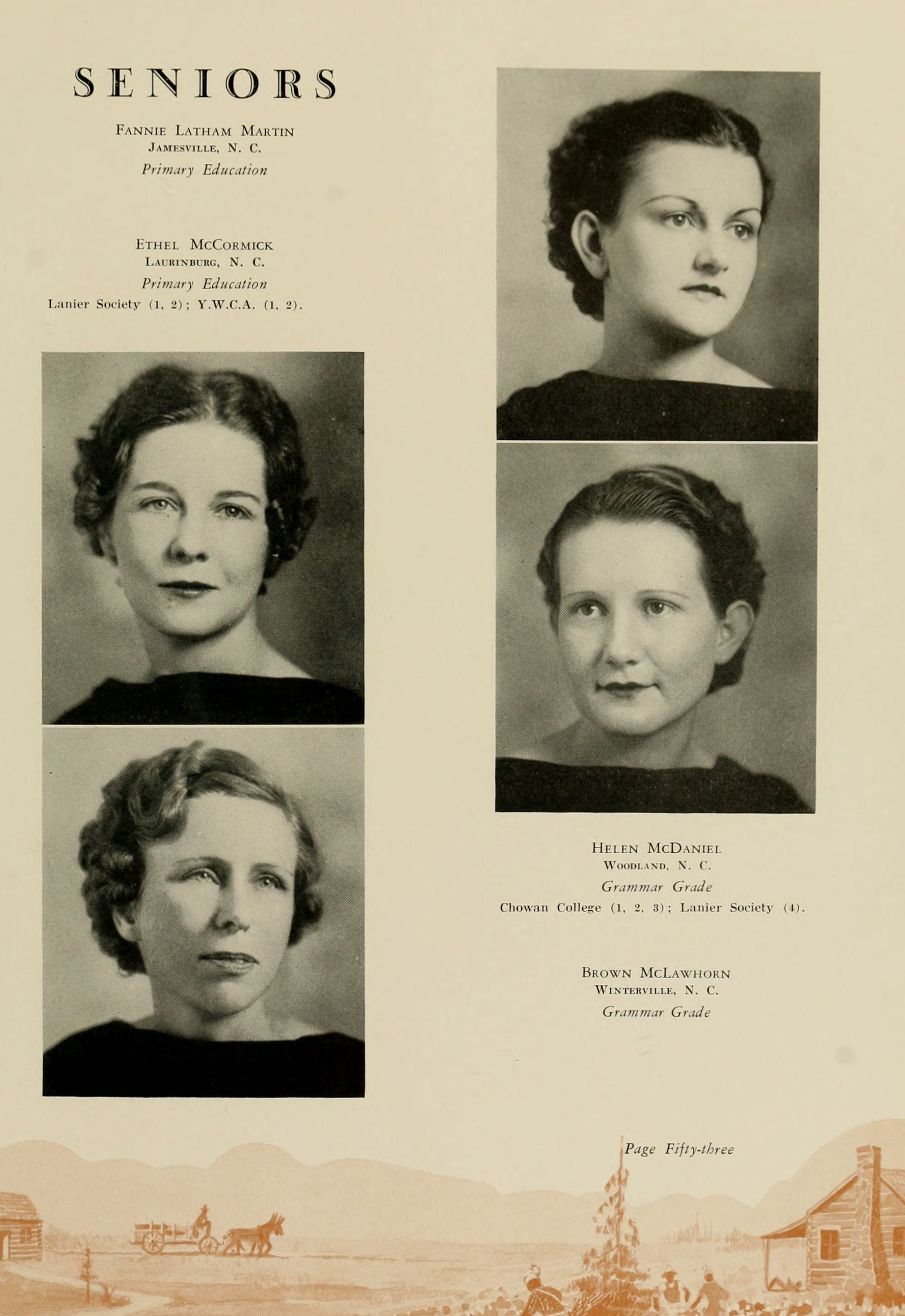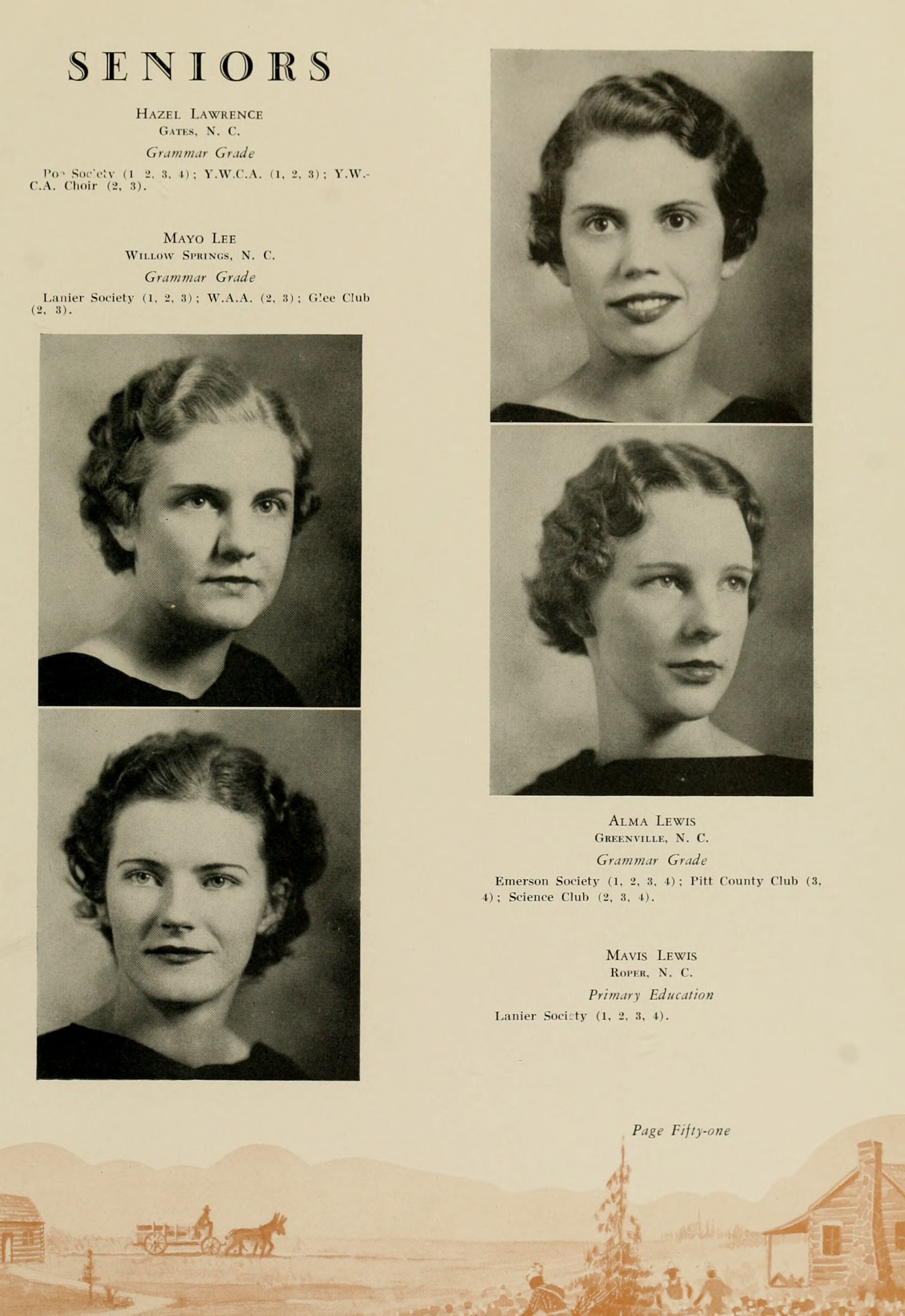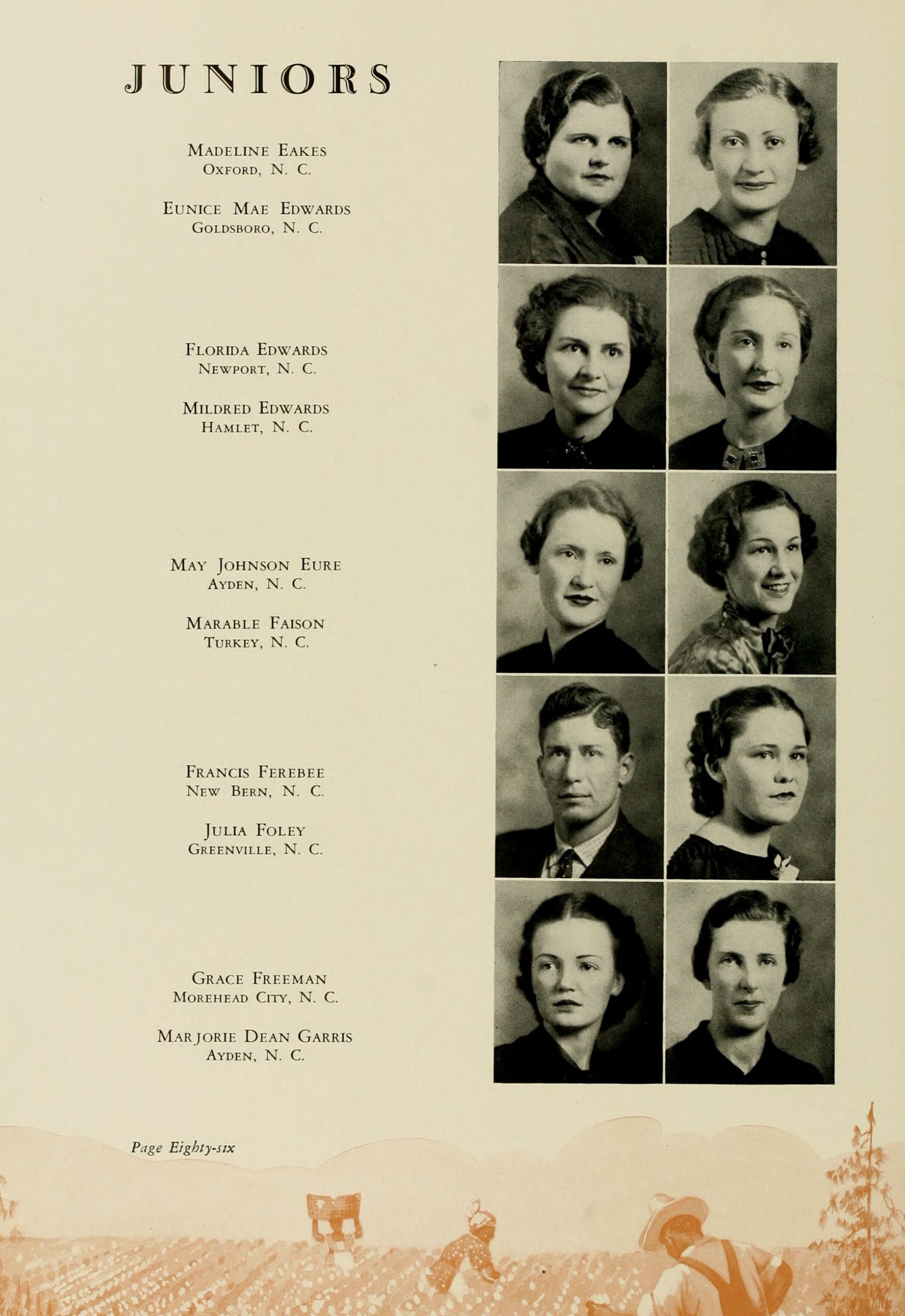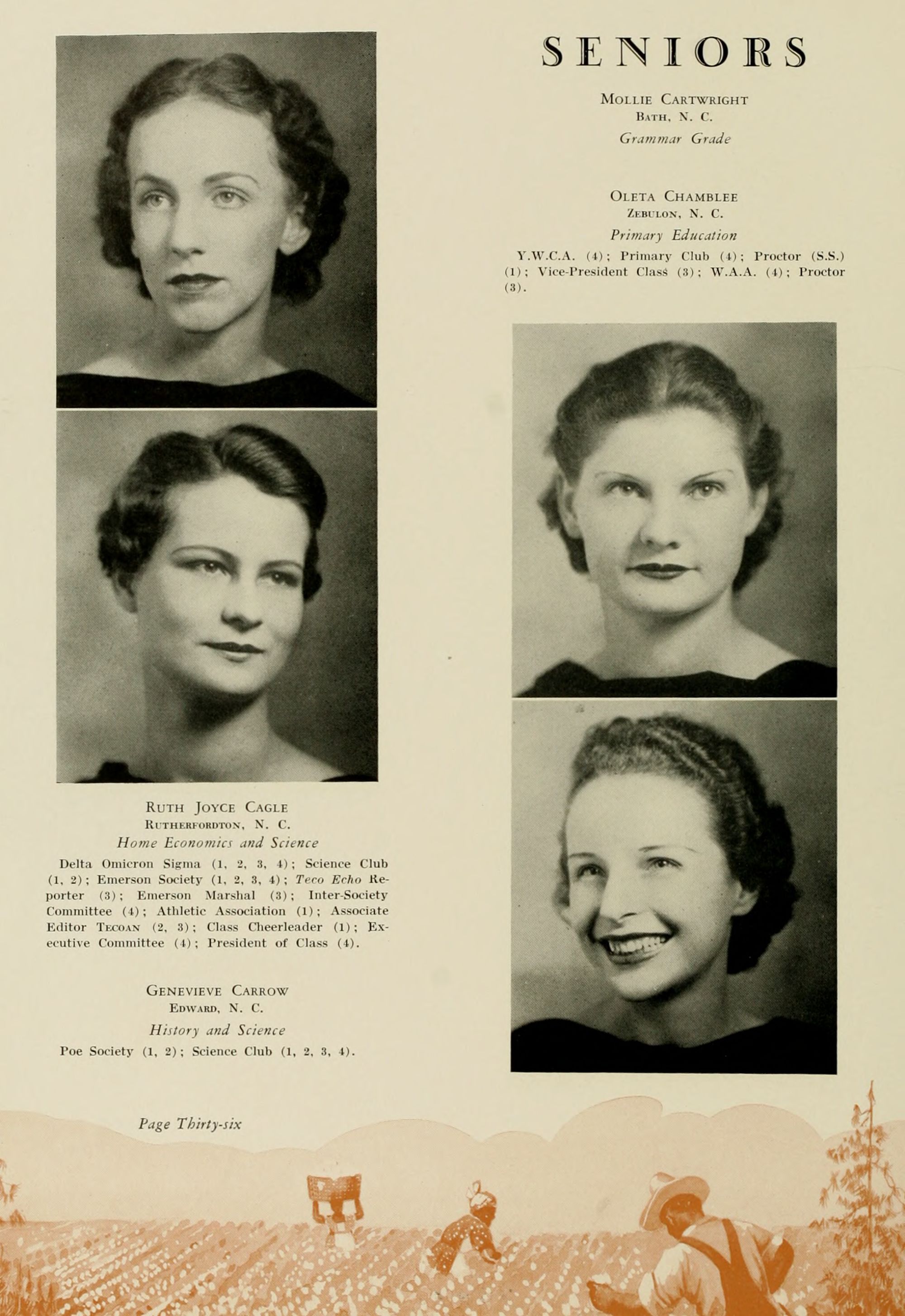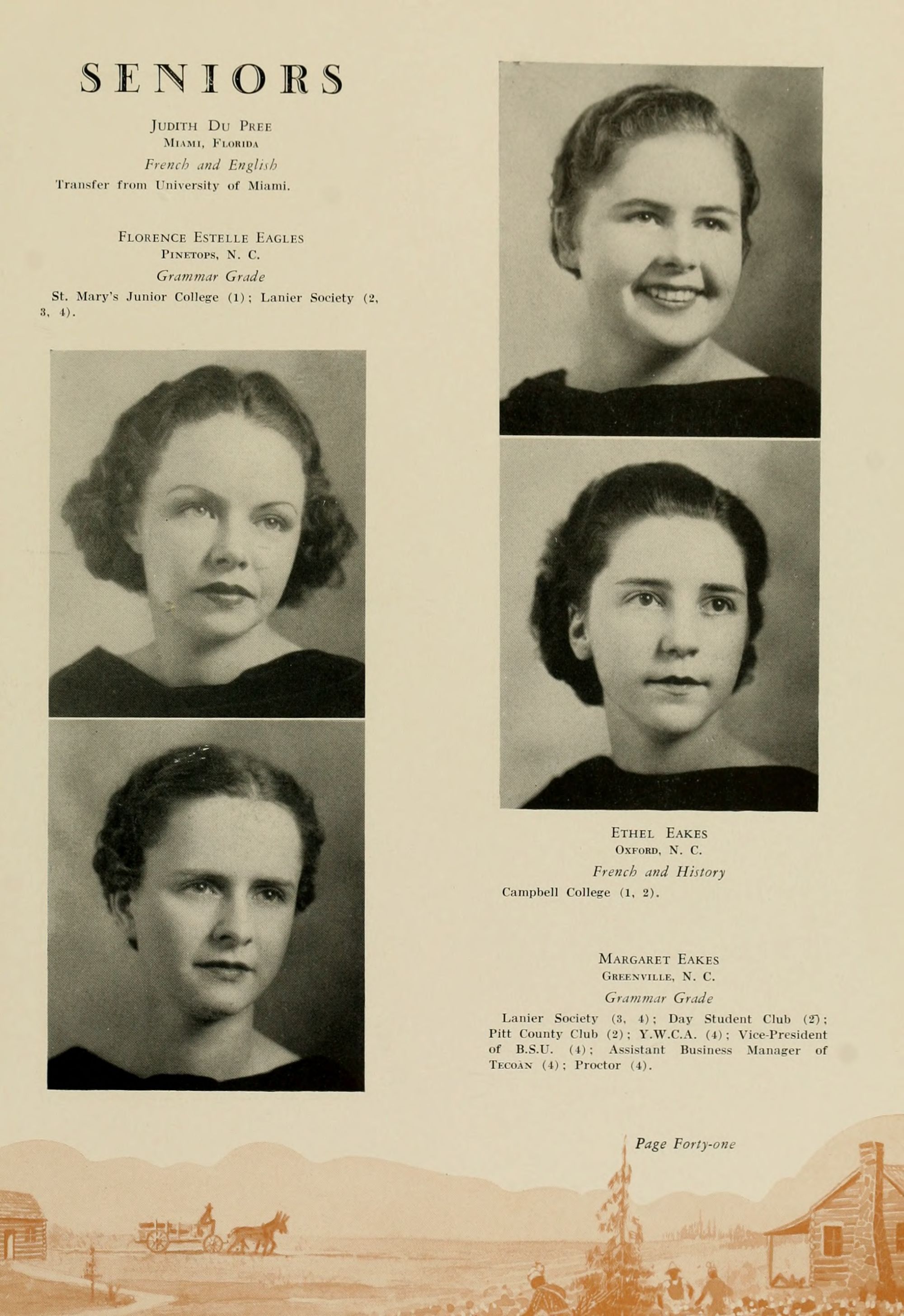 When Miss Morton began her duties as Dean of Women at East Carolina Teachers College in 1925, she entered wholeheartedly into the enterprise of making this institution one of the outstanding colleges of our country. With ceaseless effort and undaunted spirit, she is accomplishing her purpose. Miss Morton understands young women and helps young women to understand themselves. Those girls who have come to her with their problems have found that she is always willing to help them and they go away with a clearer understanding and a possible solution.
