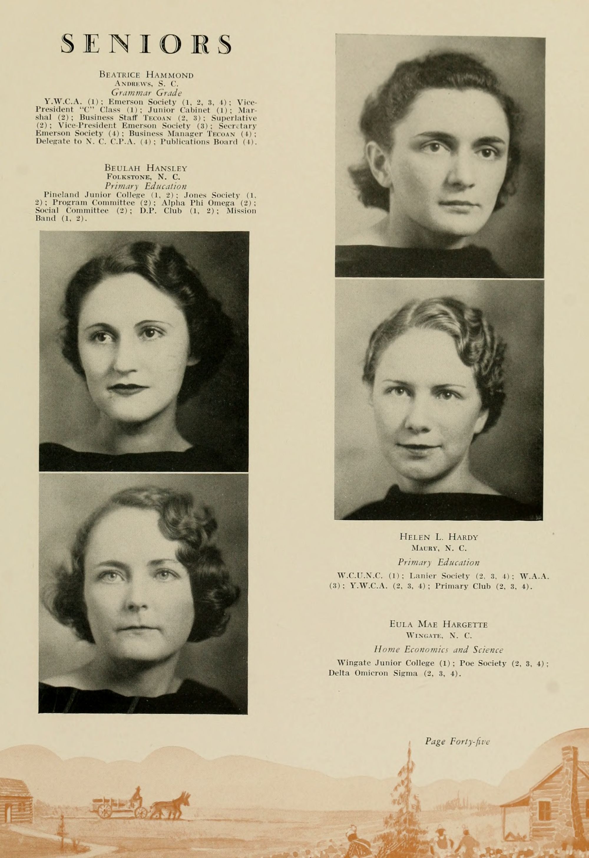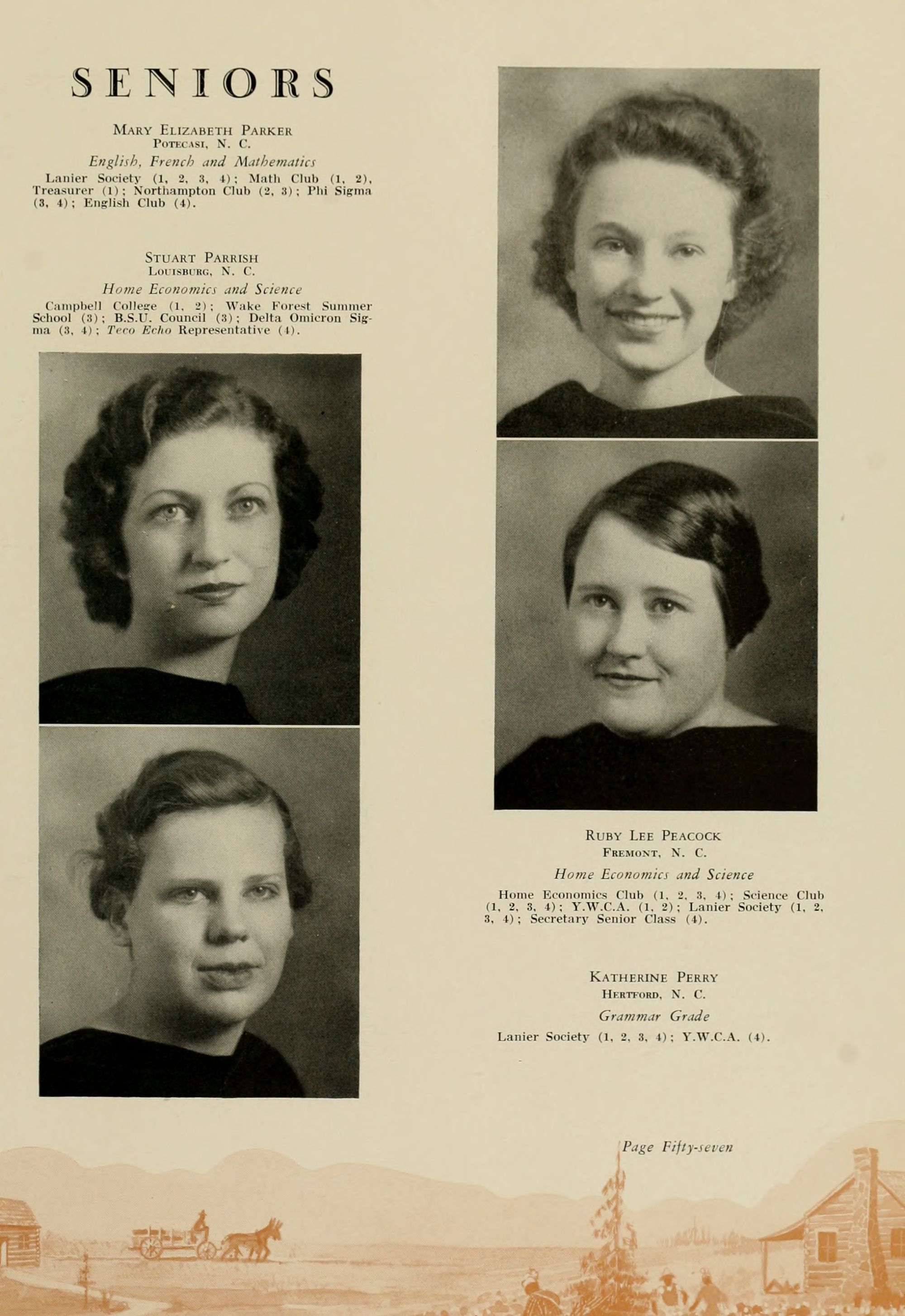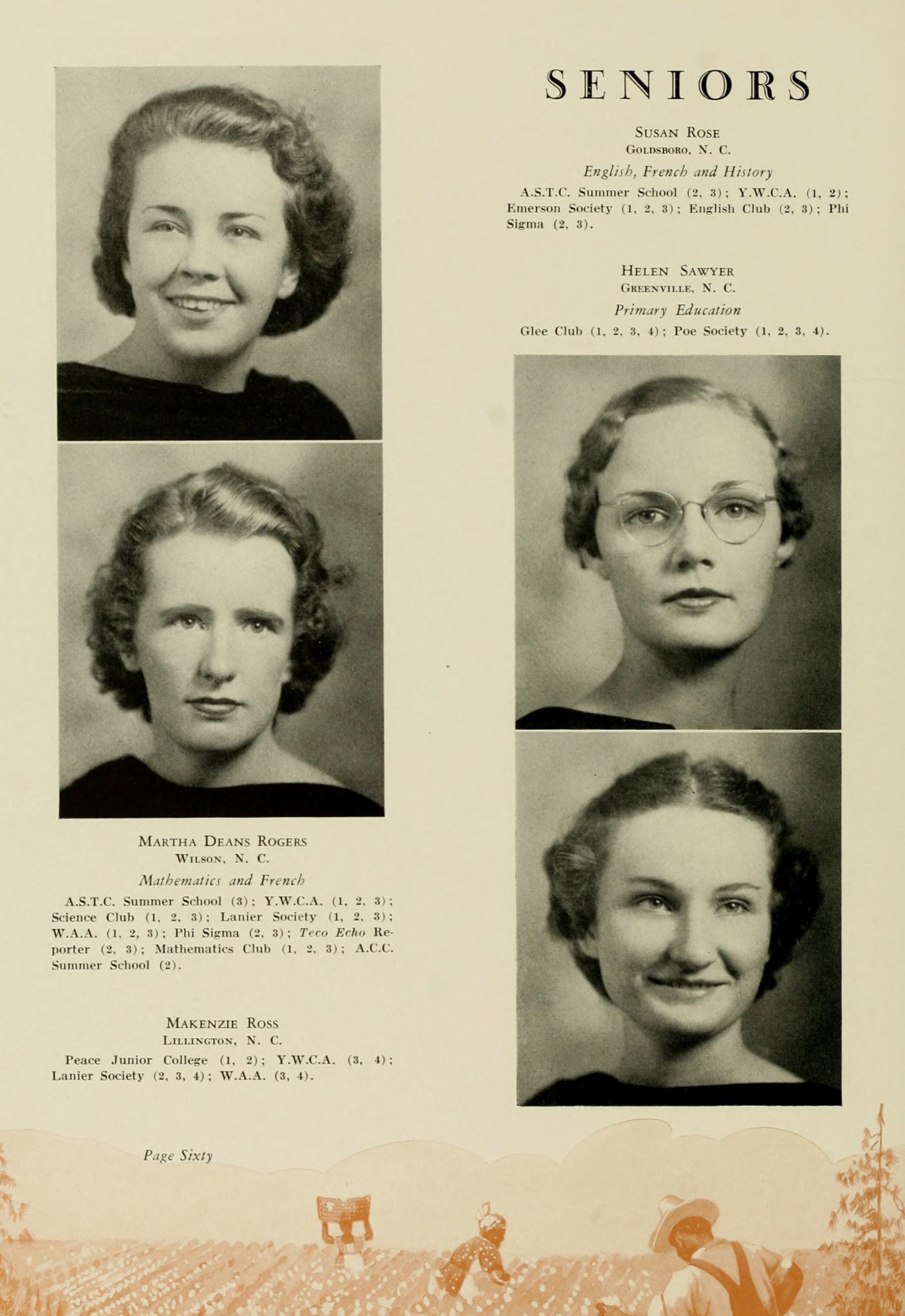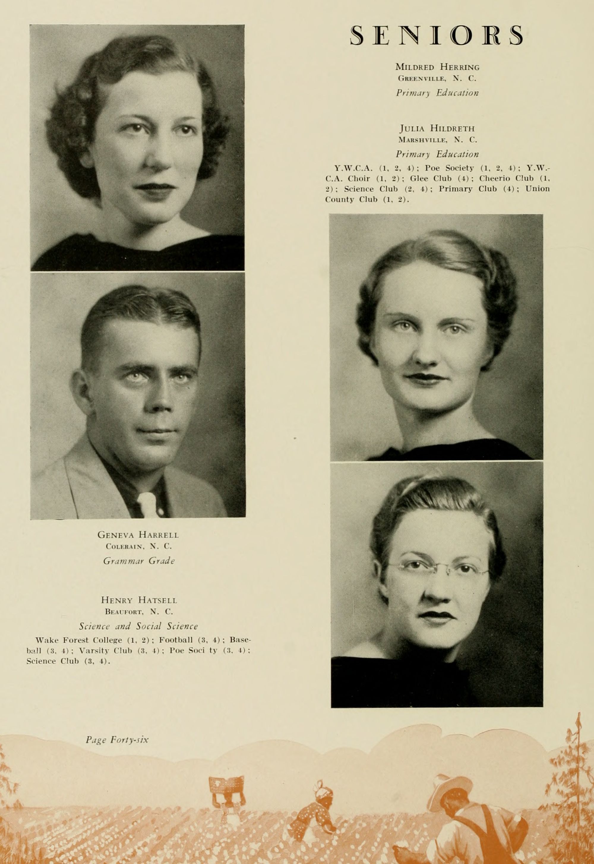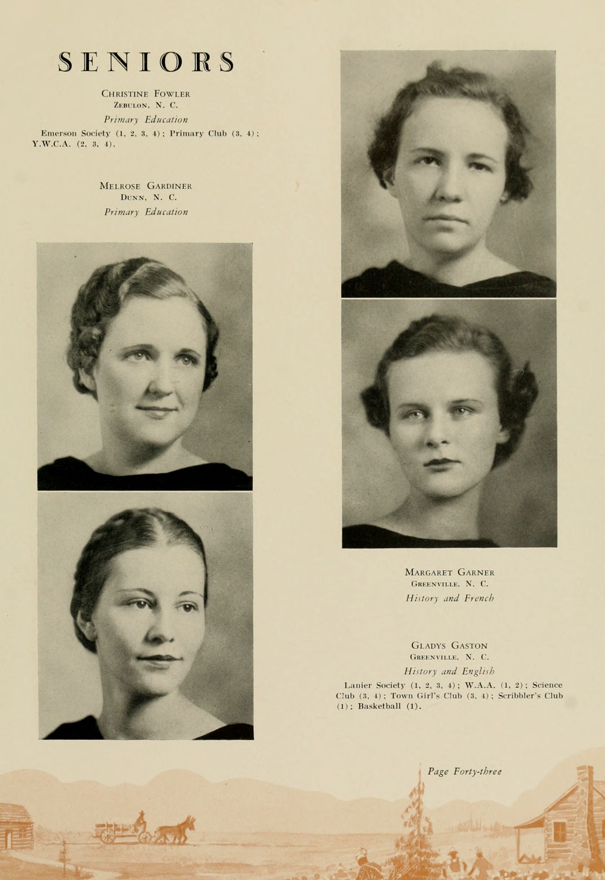 When Miss Morton began her duties as Dean of Women at East Carolina Teachers College in 1925, she entered wholeheartedly into the enterprise of making this institution one of the outstanding colleges of our country. With ceaseless effort and undaunted spirit, she is accomplishing her purpose. Miss Morton understands young women and helps young women to understand themselves. Those girls who have come to her with their problems have found that she is always willing to help them and they go away with a clearer understanding and a possible solution.