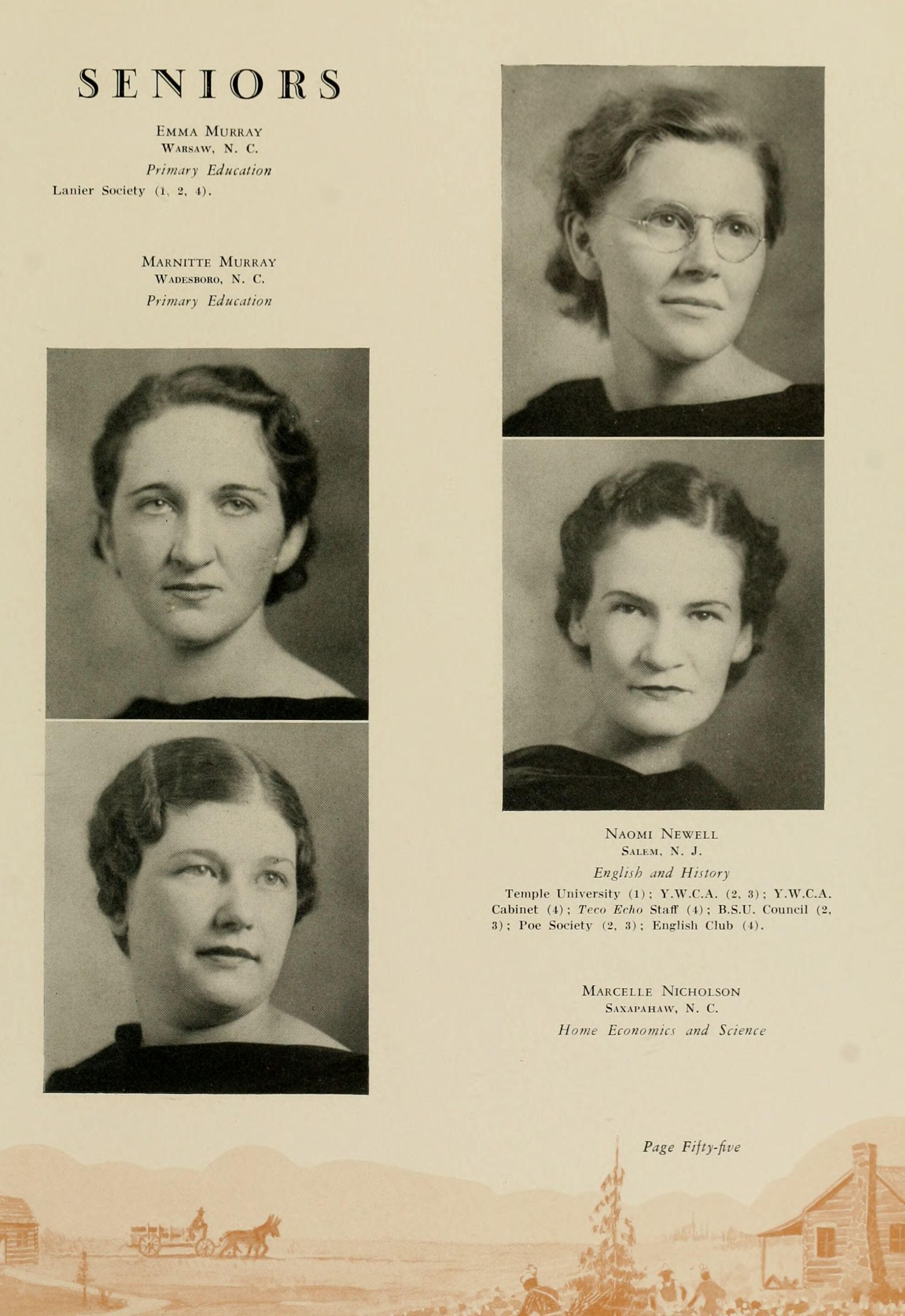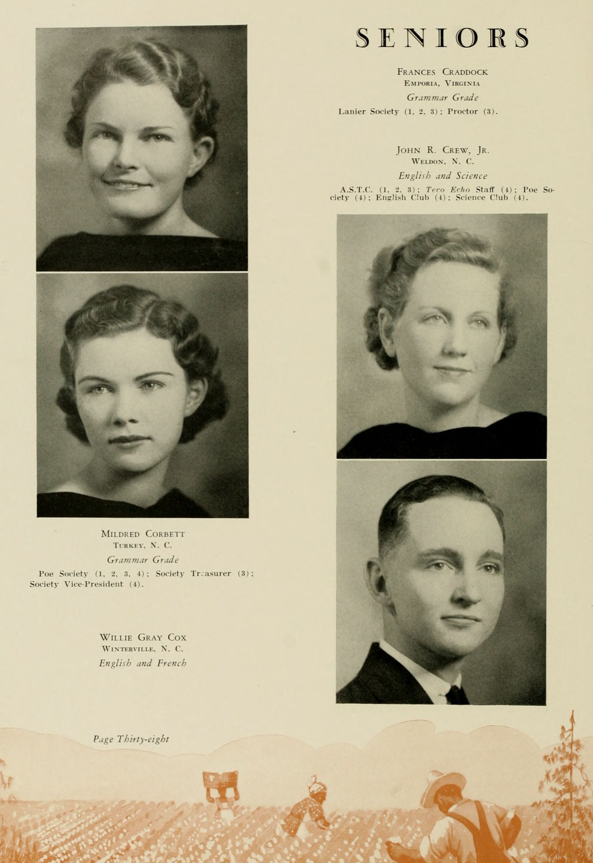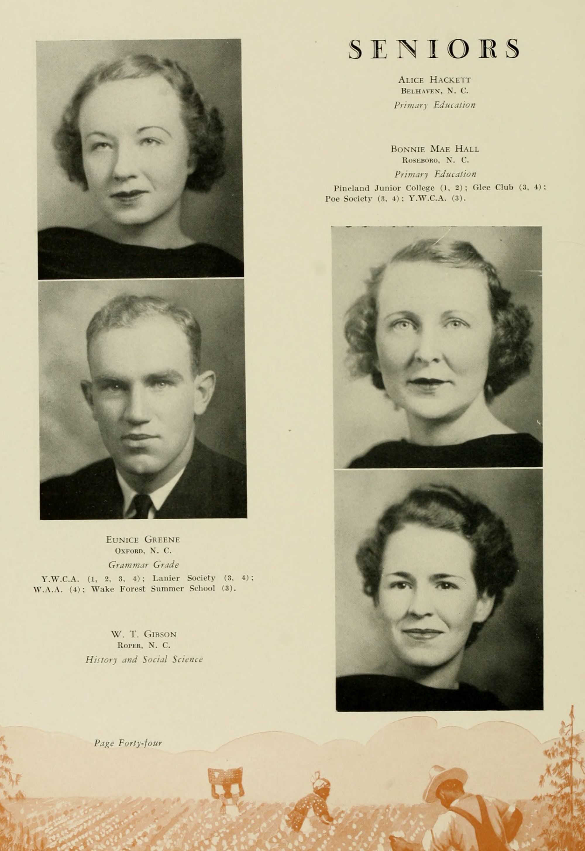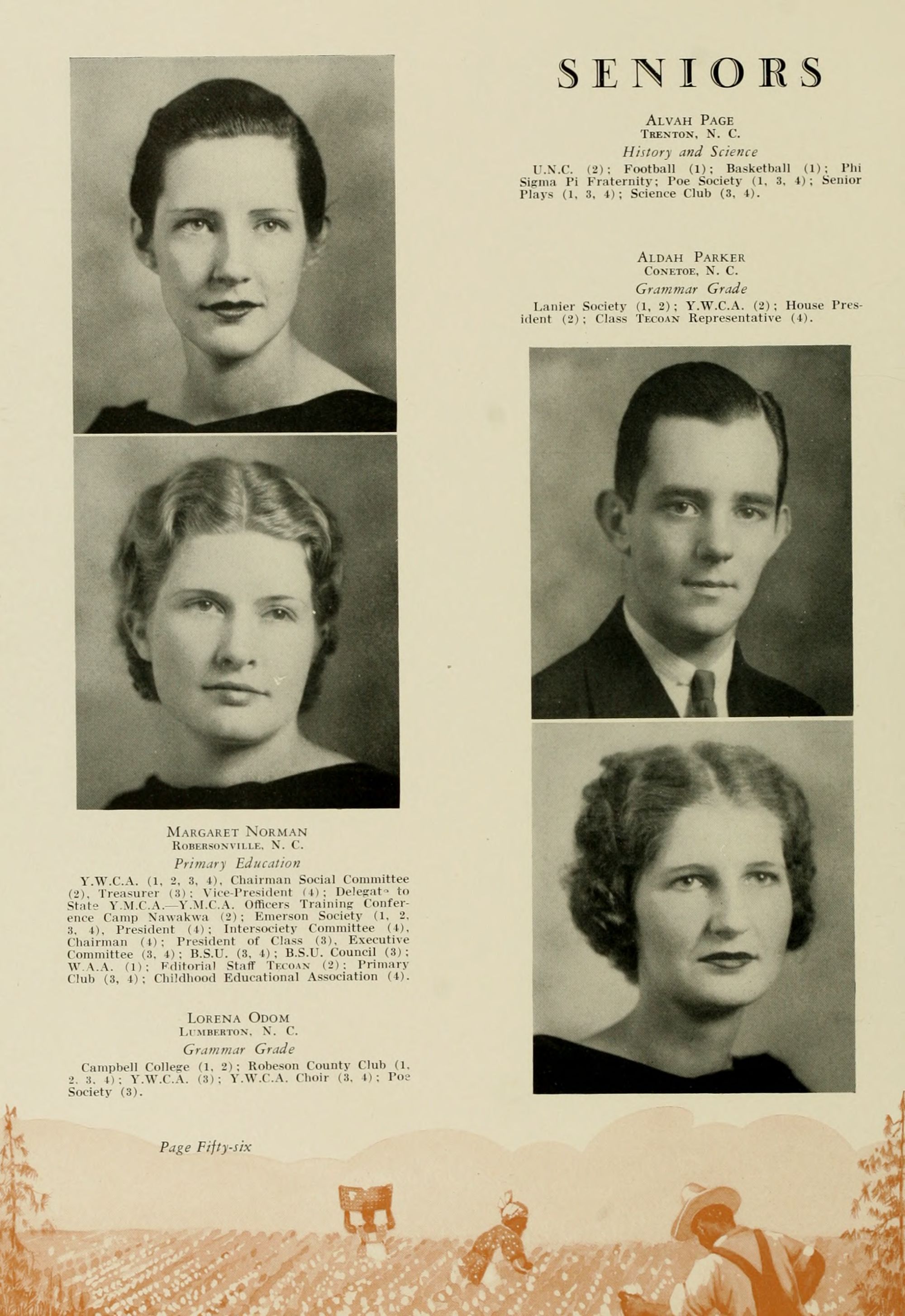 When Miss Morton began her duties as Dean of Women at East Carolina Teachers College in 1925, she entered wholeheartedly into the enterprise of making this institution one of the outstanding colleges of our country. With ceaseless effort and undaunted spirit, she is accomplishing her purpose. Miss Morton understands young women and helps young women to understand themselves. Those girls who have come to her with their problems have found that she is always willing to help them and they go away with a clearer understanding and a possible solution.