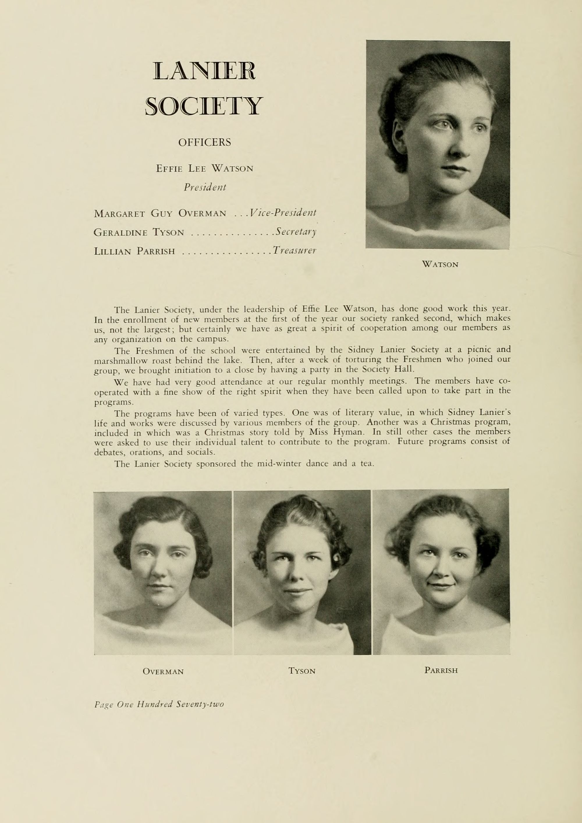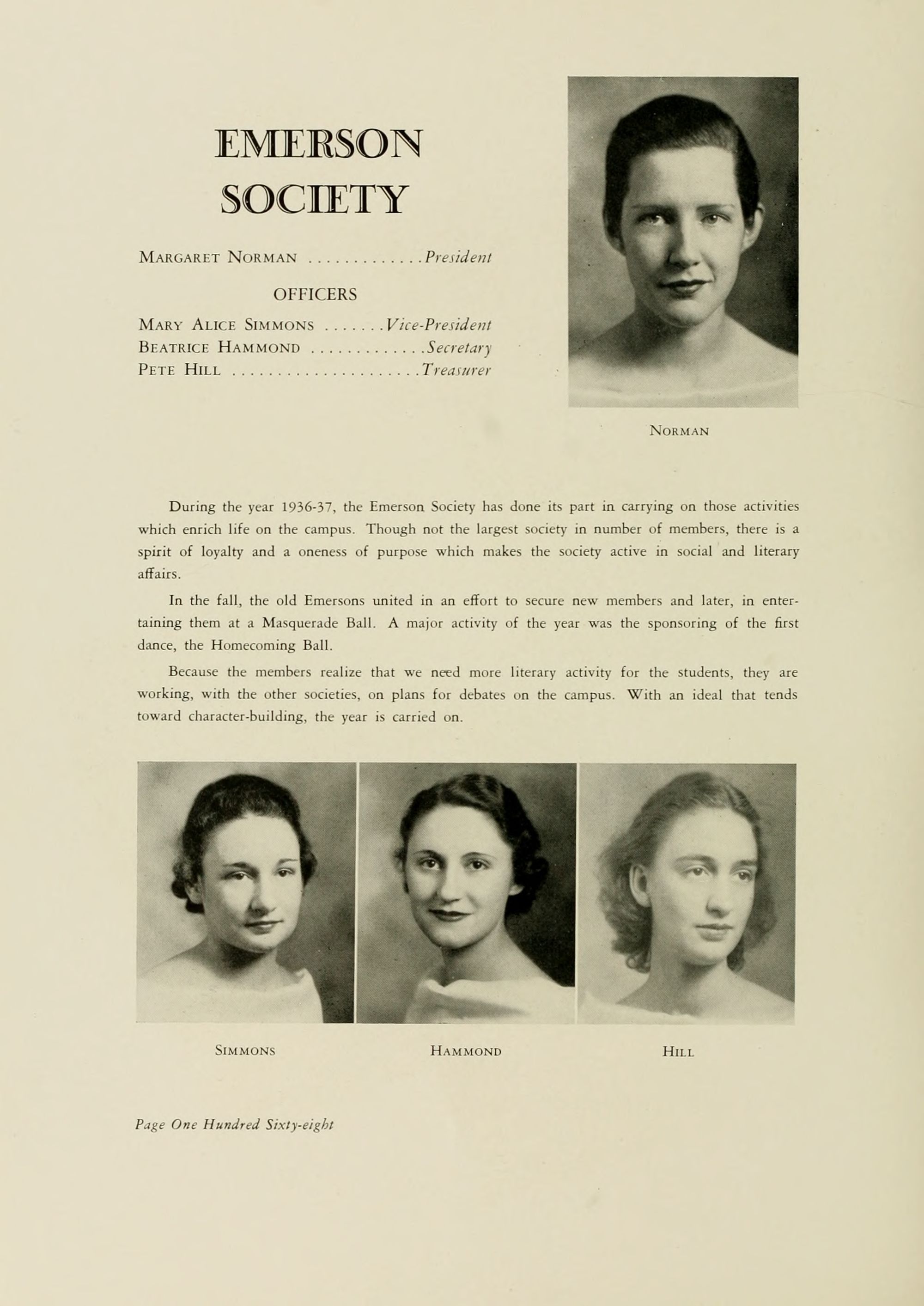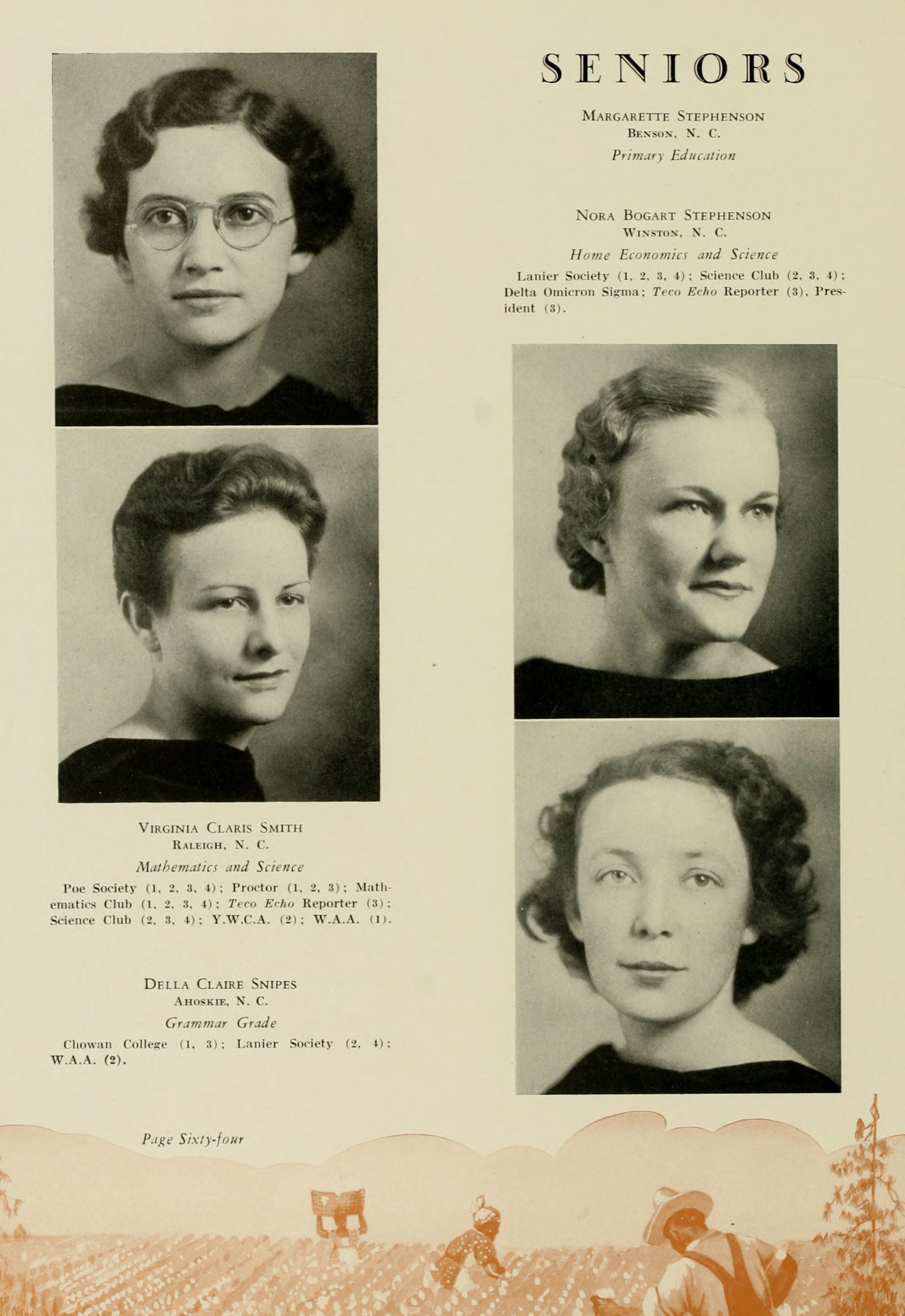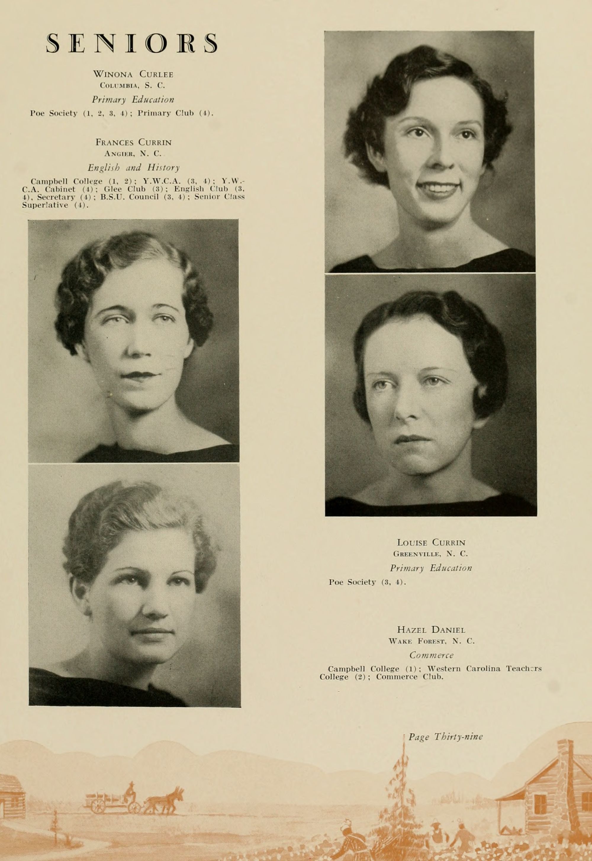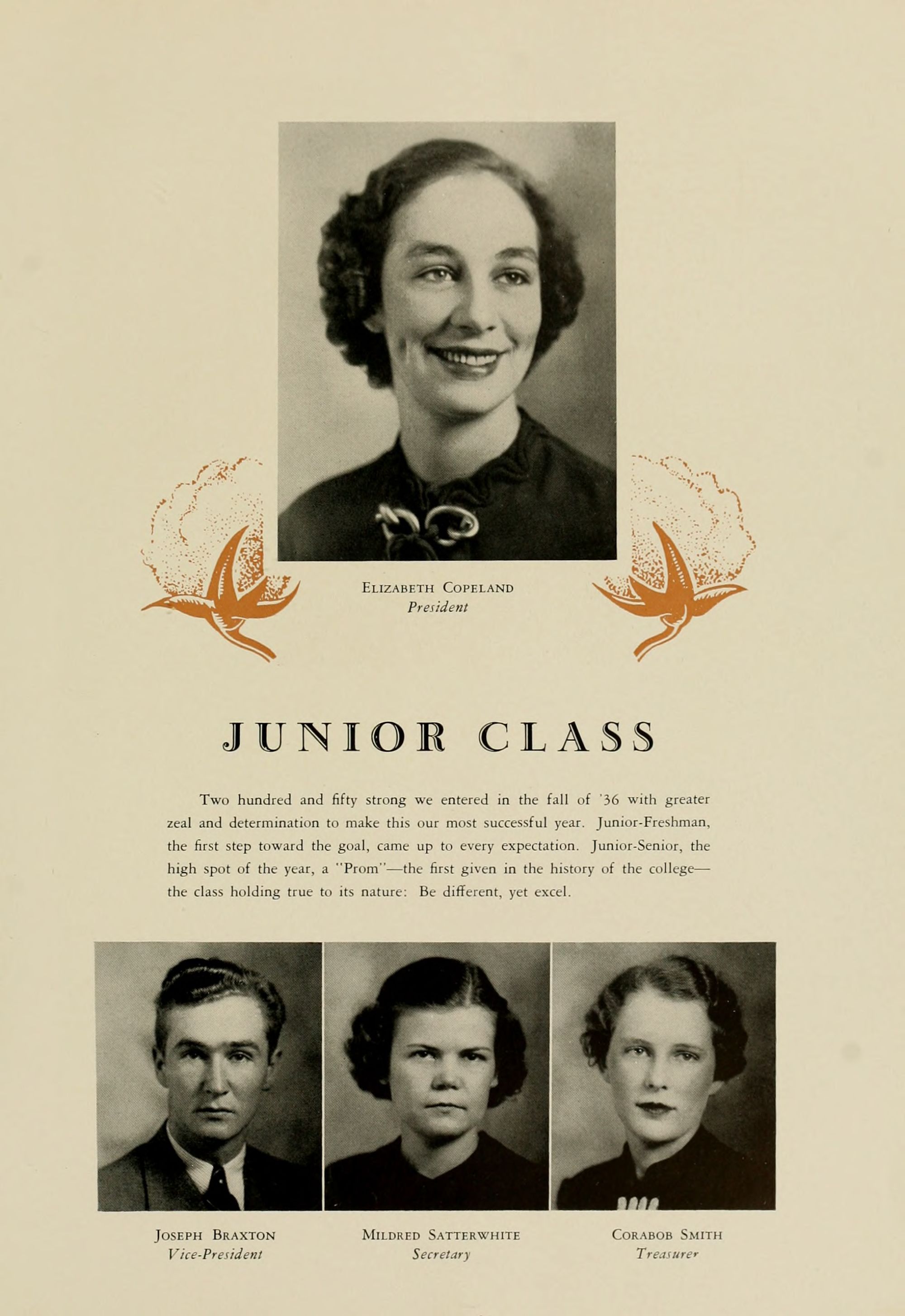 When Miss Morton began her duties as Dean of Women at East Carolina Teachers College in 1925, she entered wholeheartedly into the enterprise of making this institution one of the outstanding colleges of our country. With ceaseless effort and undaunted spirit, she is accomplishing her purpose. Miss Morton understands young women and helps young women to understand themselves. Those girls who have come to her with their problems have found that she is always willing to help them and they go away with a clearer understanding and a possible solution.