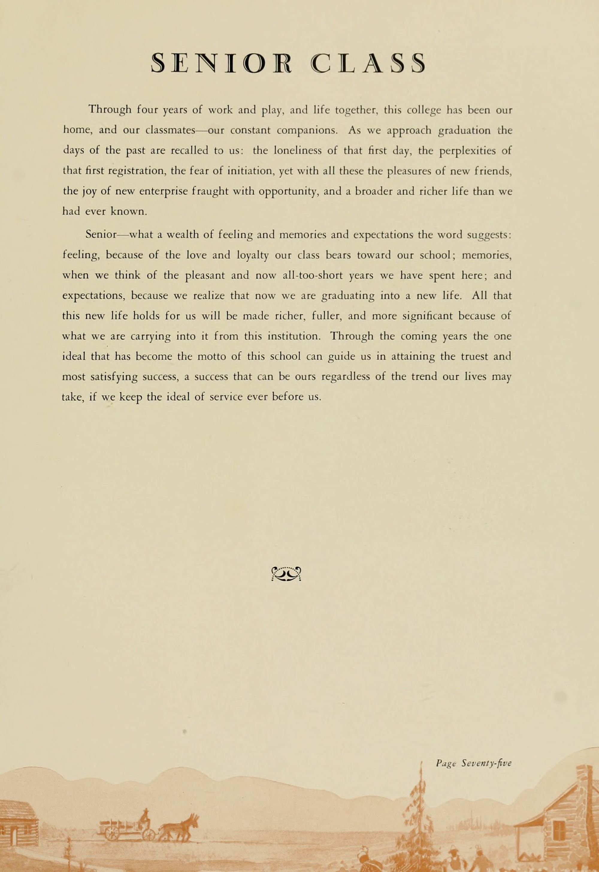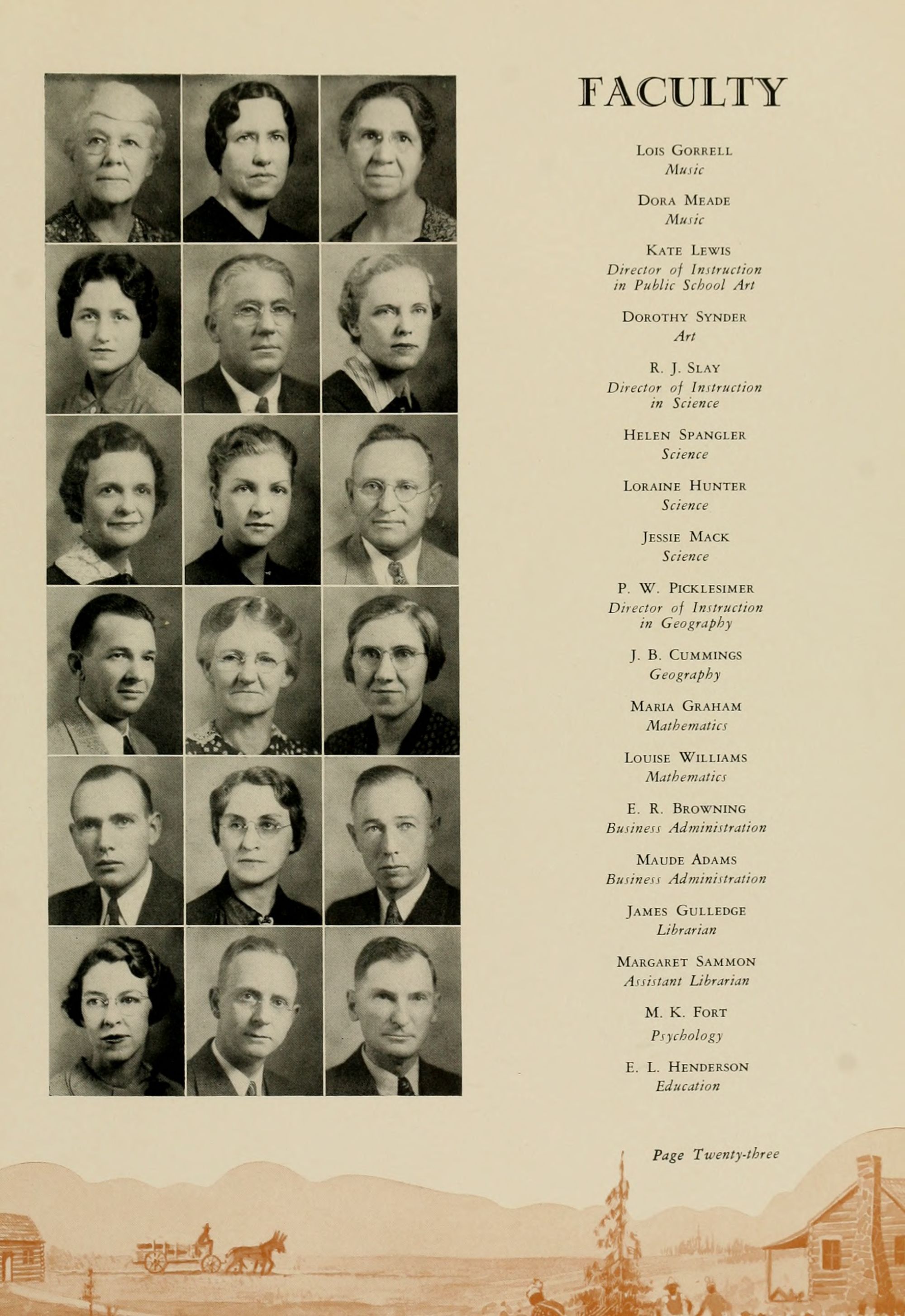 Our faculty members are well prepared in their various fields, and they are vitally interested in the students. It is their untiring efforts to serve the students and our personal contact with them that makes our college life so enjoyable.