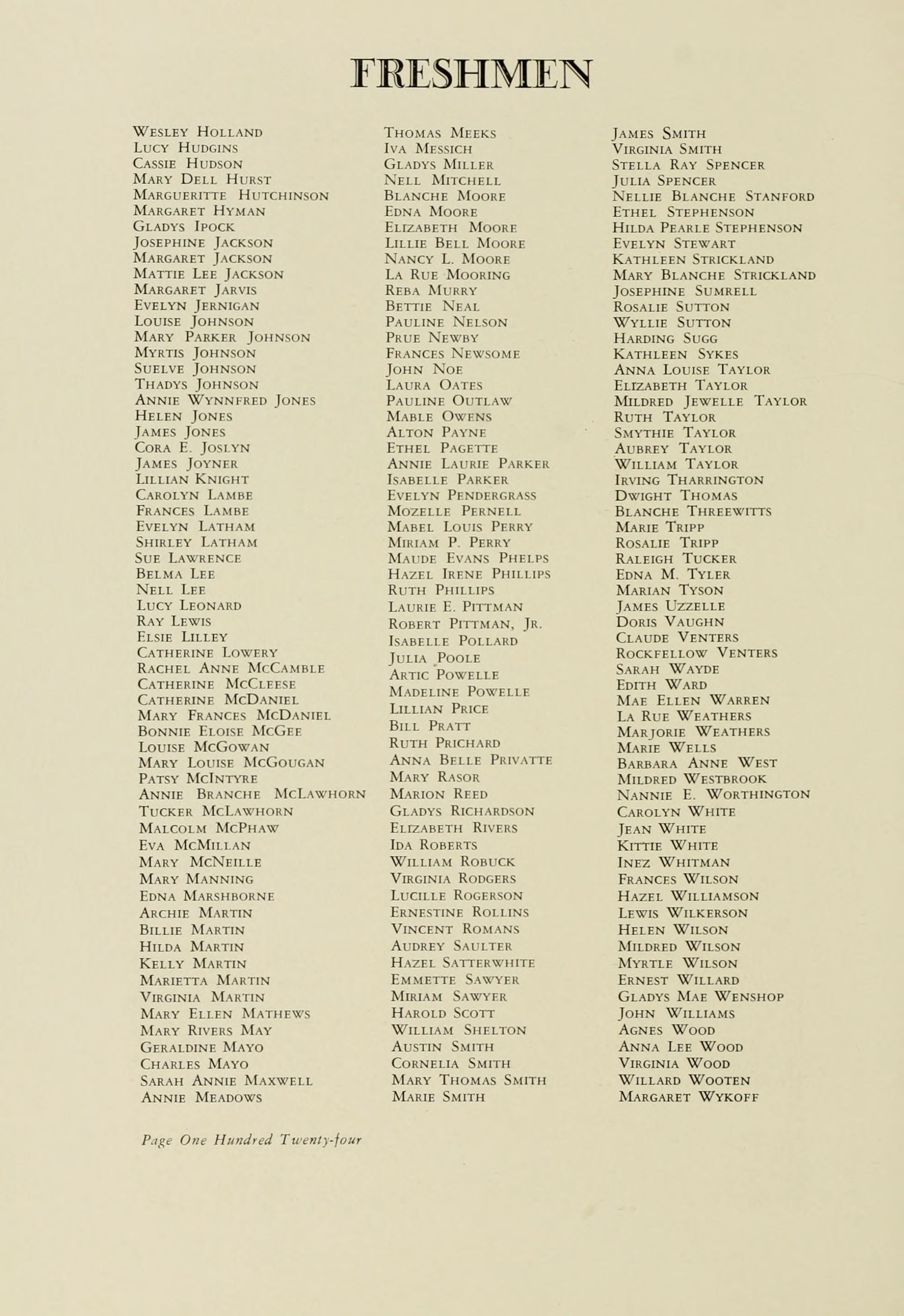 Thirteen years after the opening of the college all but three of the original staff remained in the employment of the college. At present there are five active charter mem- bers on the campus. They are: Dr. Leon Meadows, Mamie E. Jenkins, Maria D. Graham, Sallie Joyner Davis, and Kate W. Lewis.
