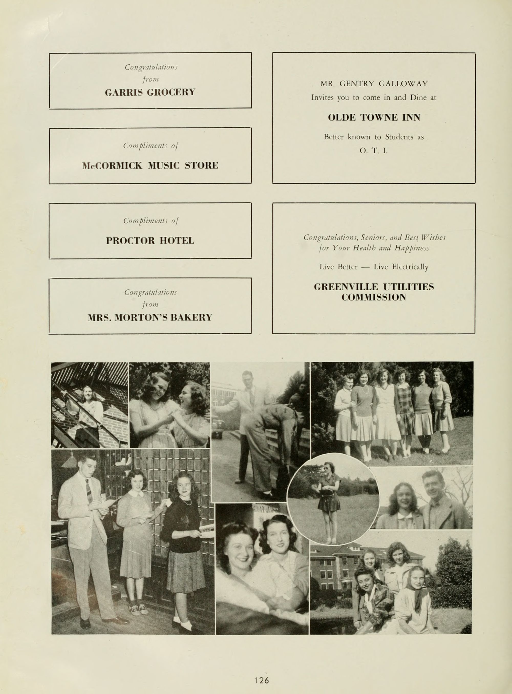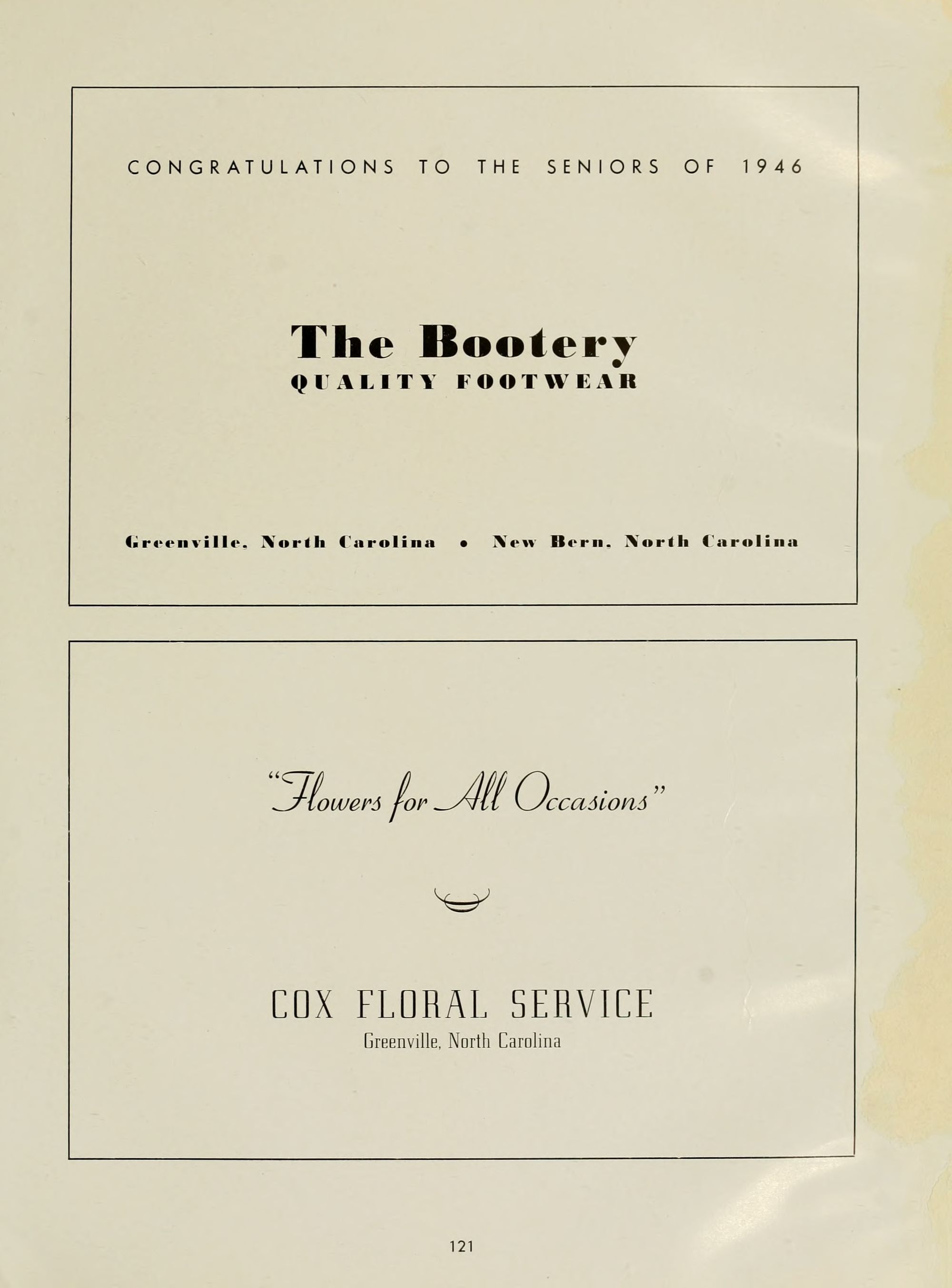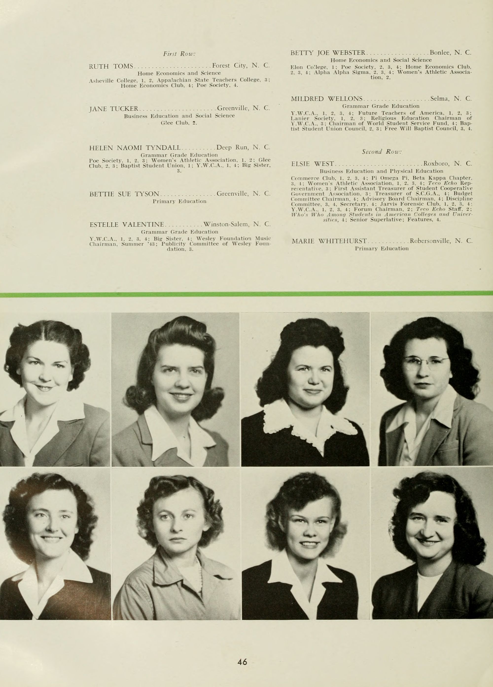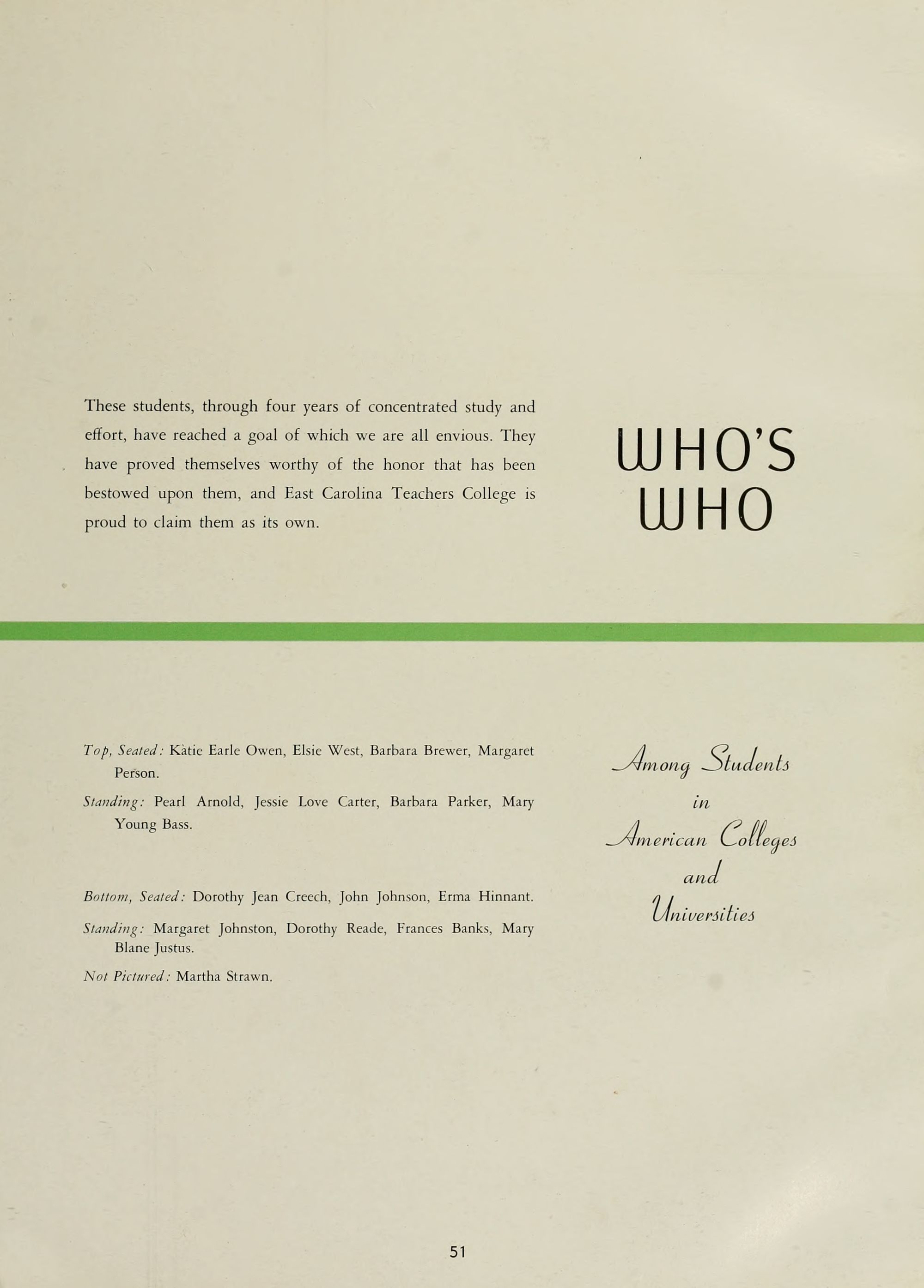 To you, especially the graduates, we give this yearbook in hopes that it will leave the brightest picture possible in your mind of East Carolina Teachers College and your friends from whom you are parting. We hope you will forget all the headaches you have had and let this be a true remembrance of this school year. It is your book. You gave us our ideas; you gave us our material; yon gave life to the college; but most of all, you gave us your cooperation and school spirit. All these things made this yearbook so it is really a part of every student here and we hope you will cherish it as such.