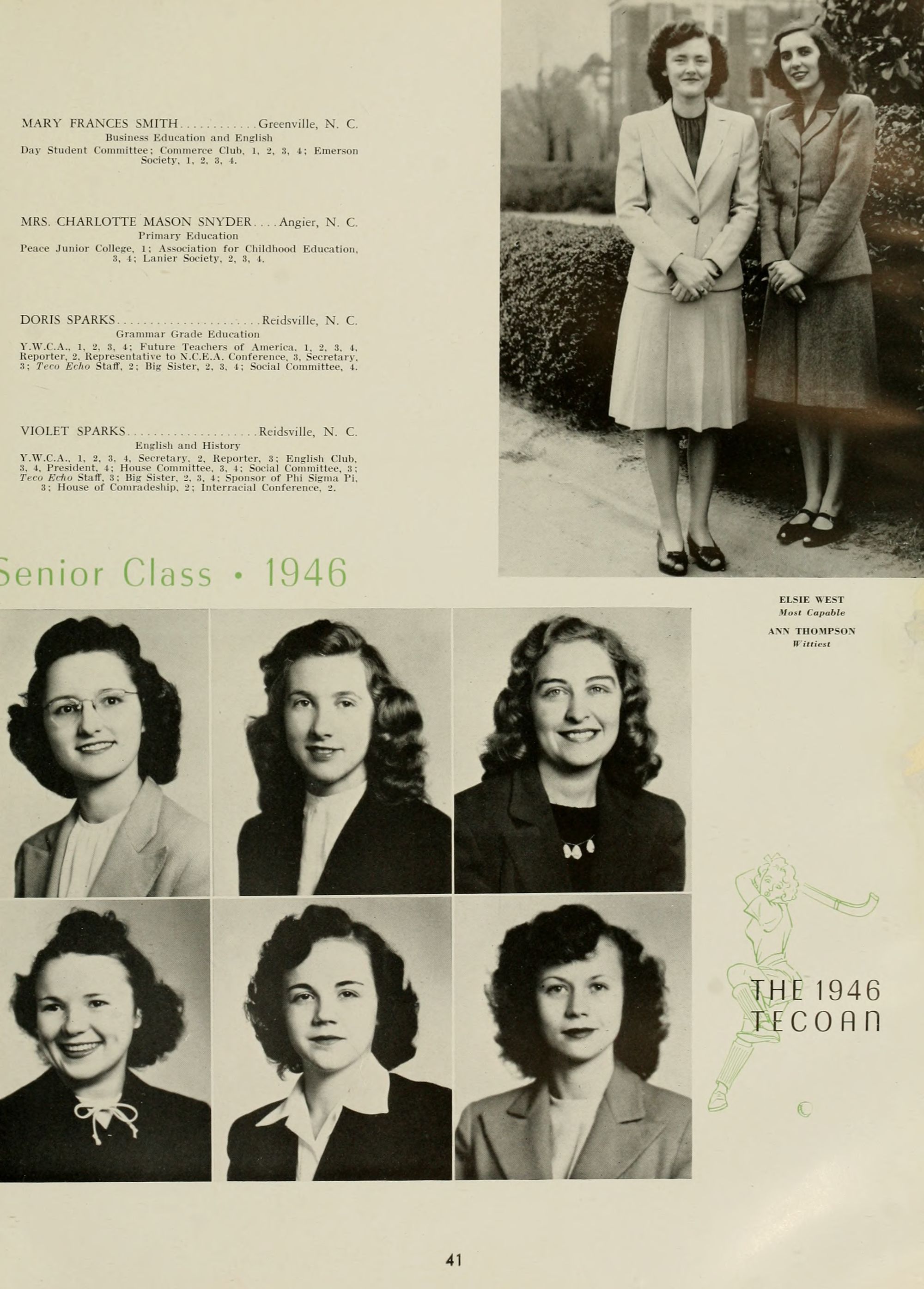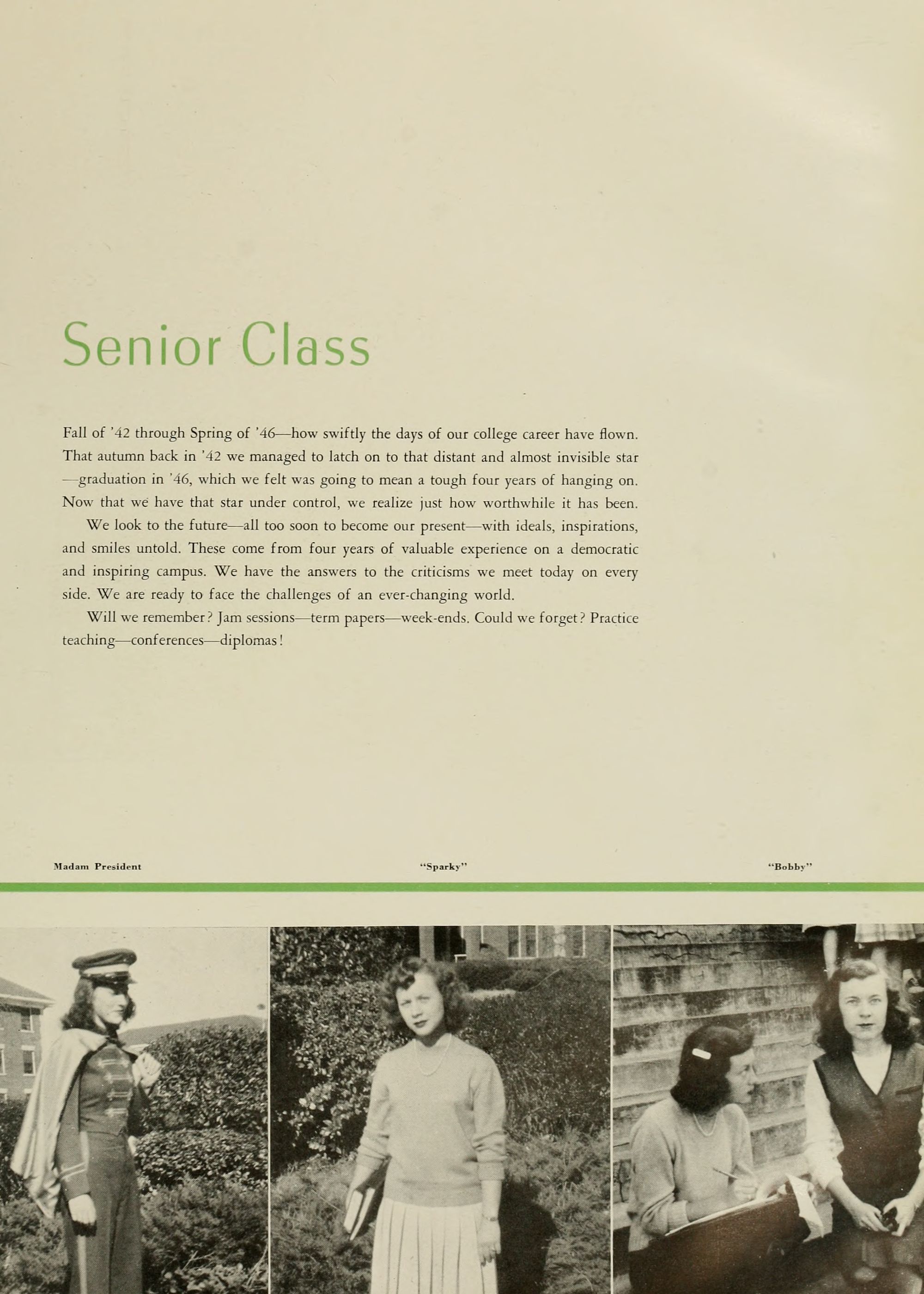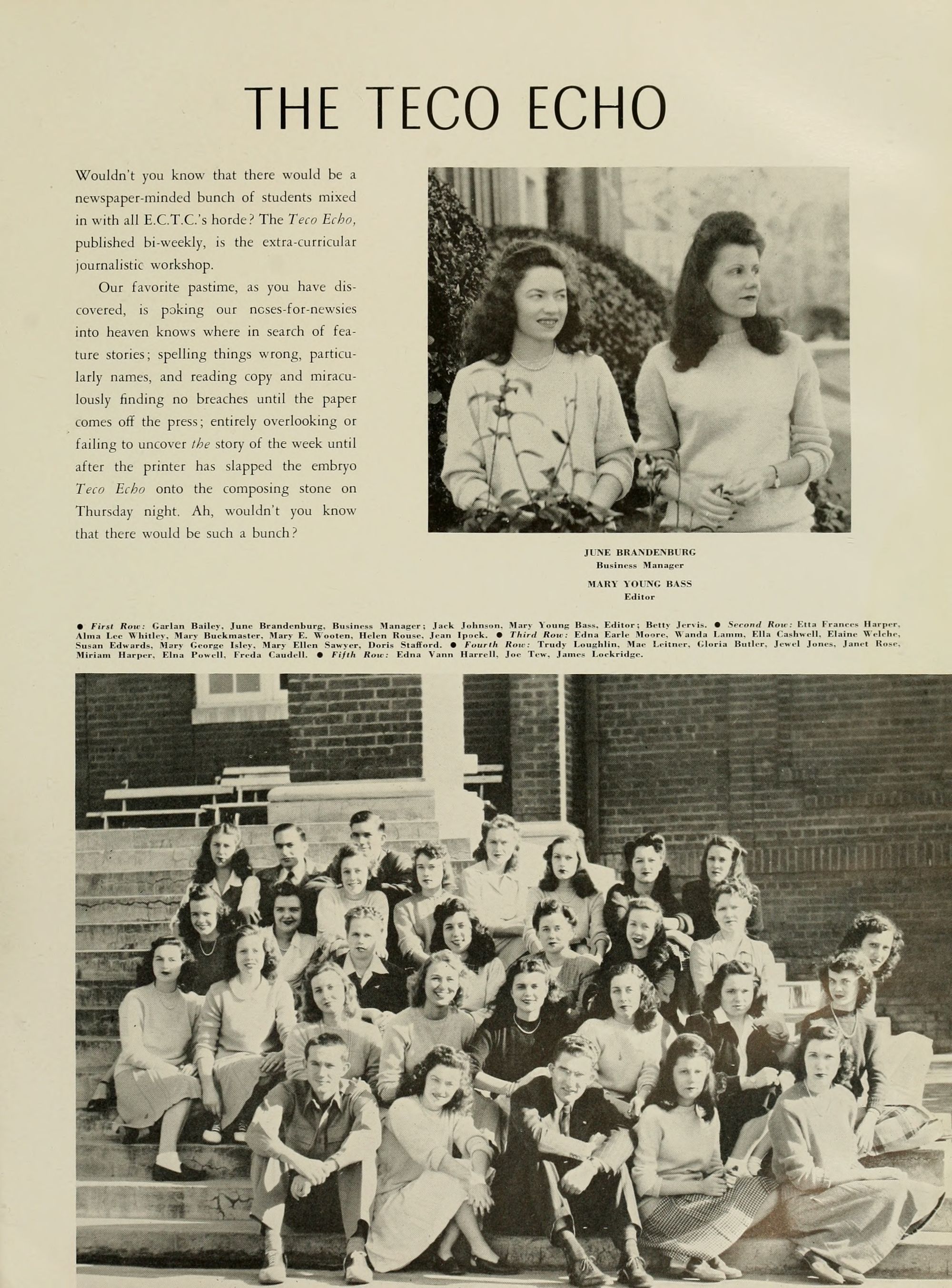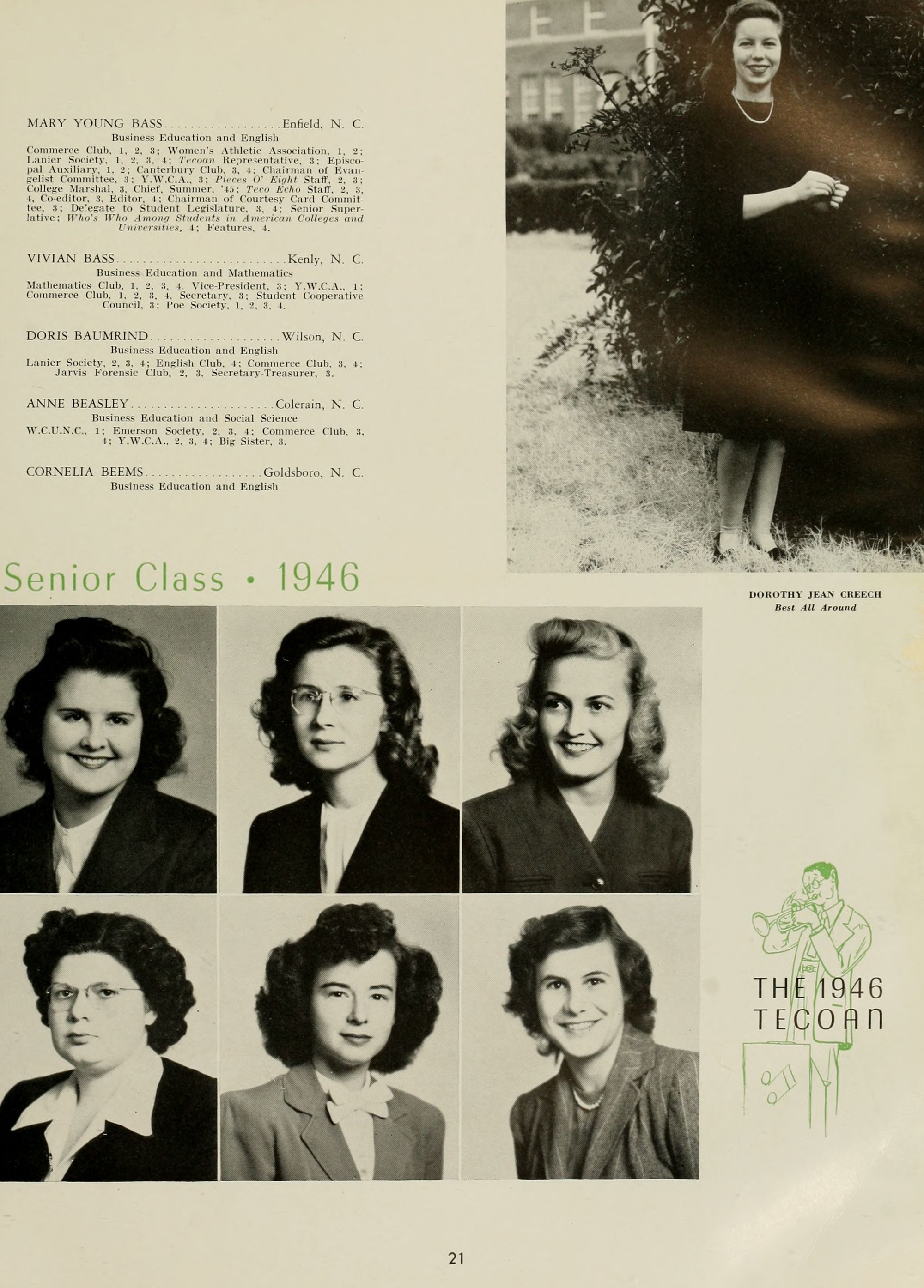 To you, especially the graduates, we give this yearbook in hopes that it will leave the brightest picture possible in your mind of East Carolina Teachers College and your friends from whom you are parting. We hope you will forget all the headaches you have had and let this be a true remembrance of this school year. It is your book. You gave us our ideas; you gave us our material; yon gave life to the college; but most of all, you gave us your cooperation and school spirit. All these things made this yearbook so it is really a part of every student here and we hope you will cherish it as such.
