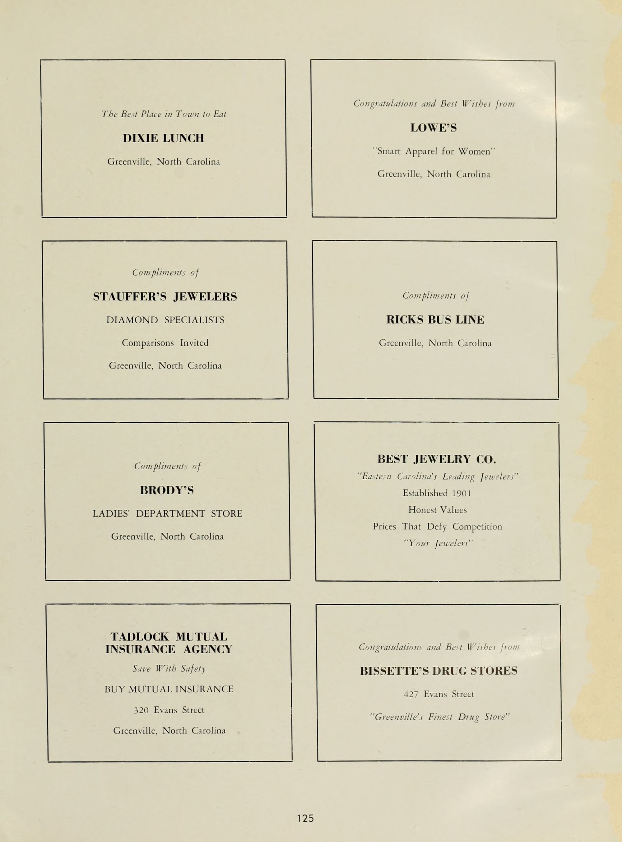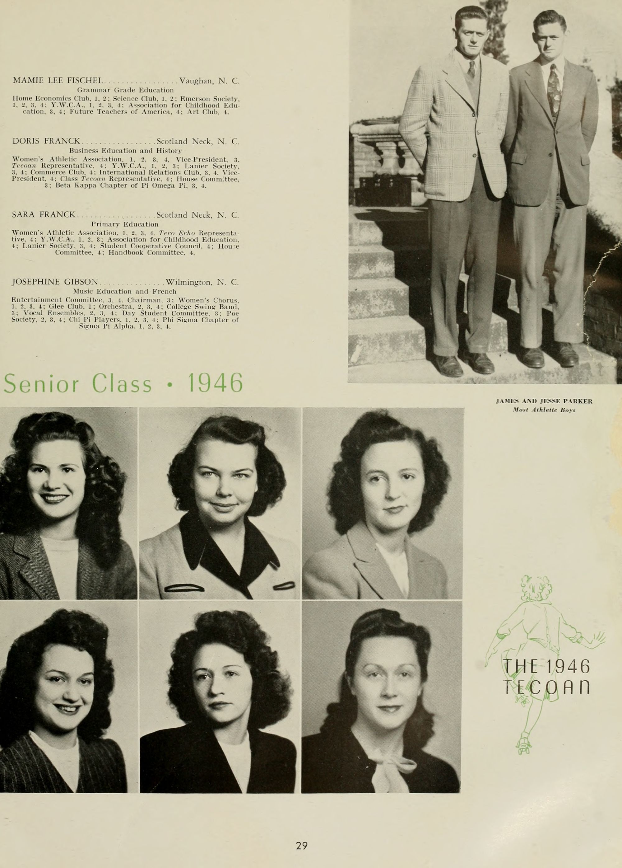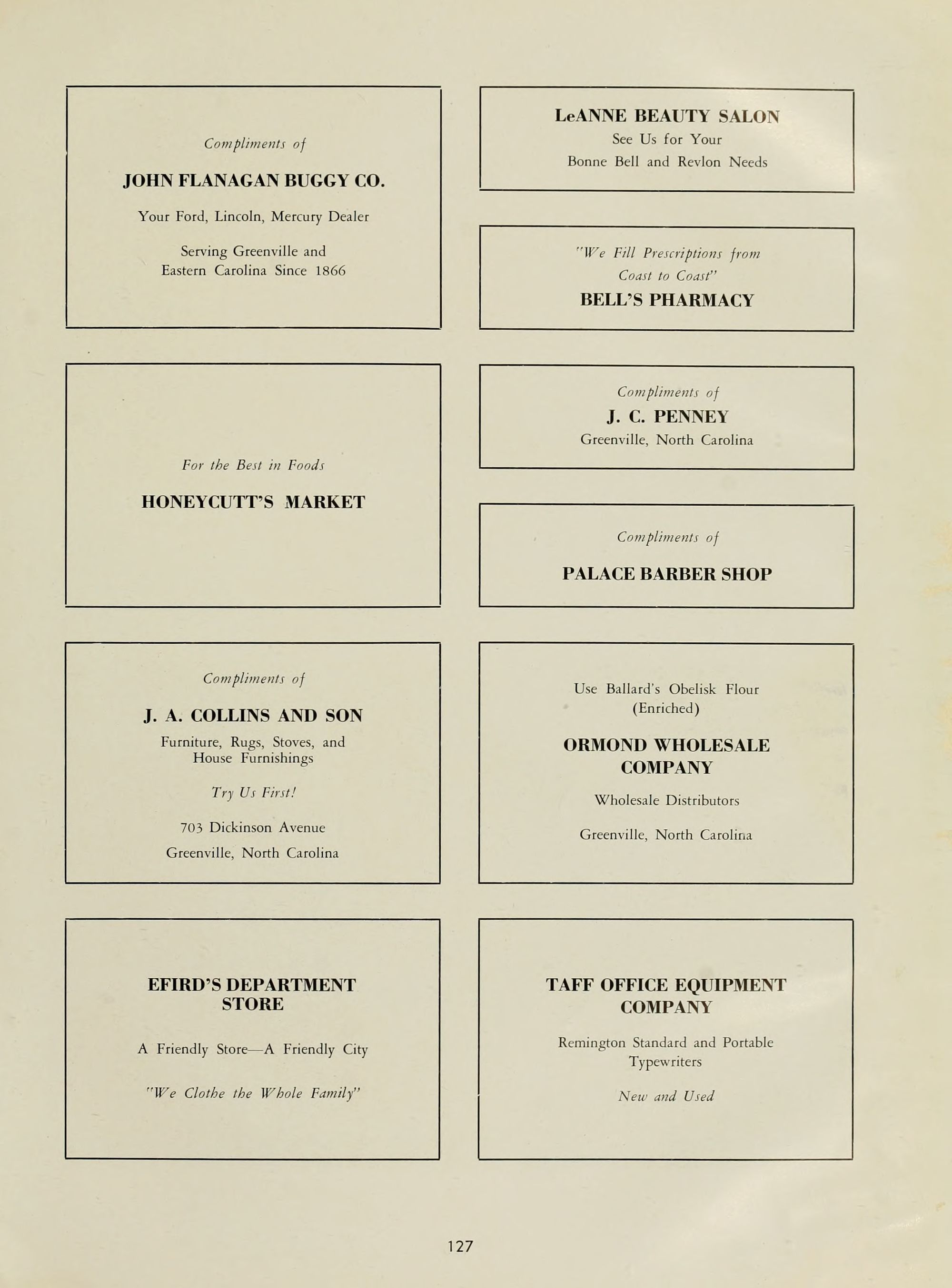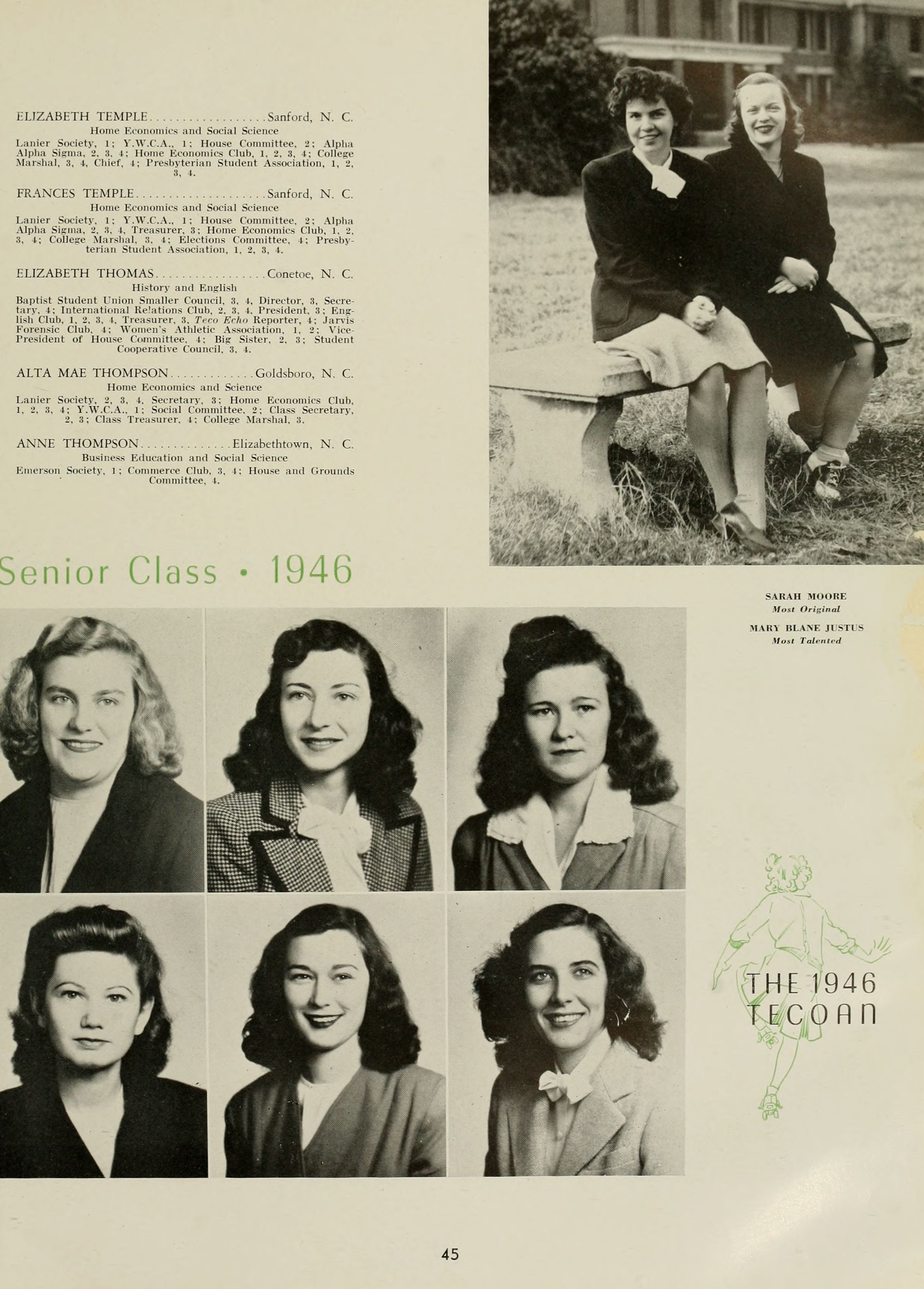 To you, especially the graduates, we give this yearbook in hopes that it will leave the brightest picture possible in your mind of East Carolina Teachers College and your friends from whom you are parting. We hope you will forget all the headaches you have had and let this be a true remembrance of this school year. It is your book. You gave us our ideas; you gave us our material; yon gave life to the college; but most of all, you gave us your cooperation and school spirit. All these things made this yearbook so it is really a part of every student here and we hope you will cherish it as such.