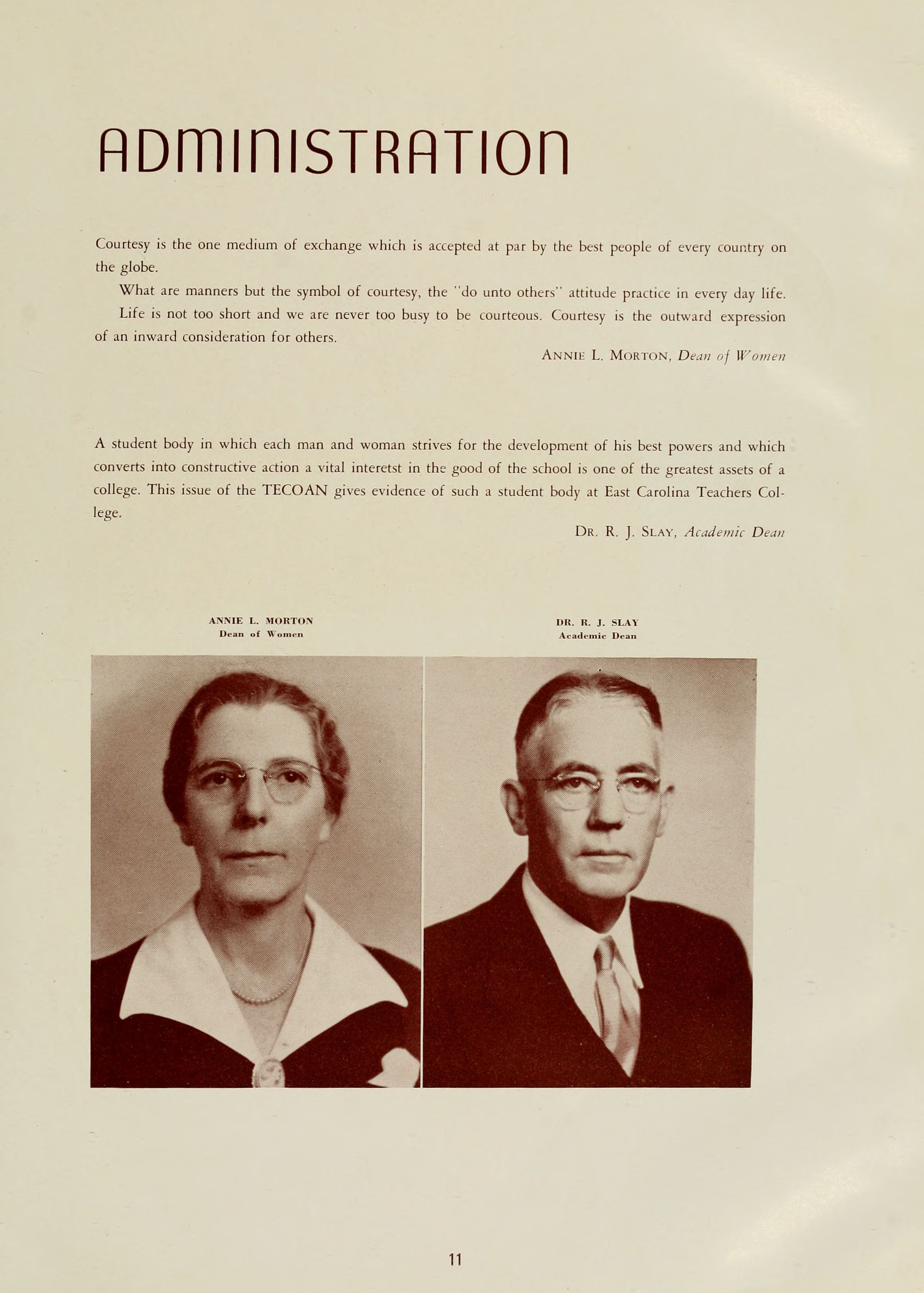 A student body in which each man and woman strives for the development of his best powers and which converts into constructive action a vital interetst in the good of the school is one of the greatest assets of a college. This issue of the TECOAN gives evidence of such a student body at East Carolina Teachers Col- lege.