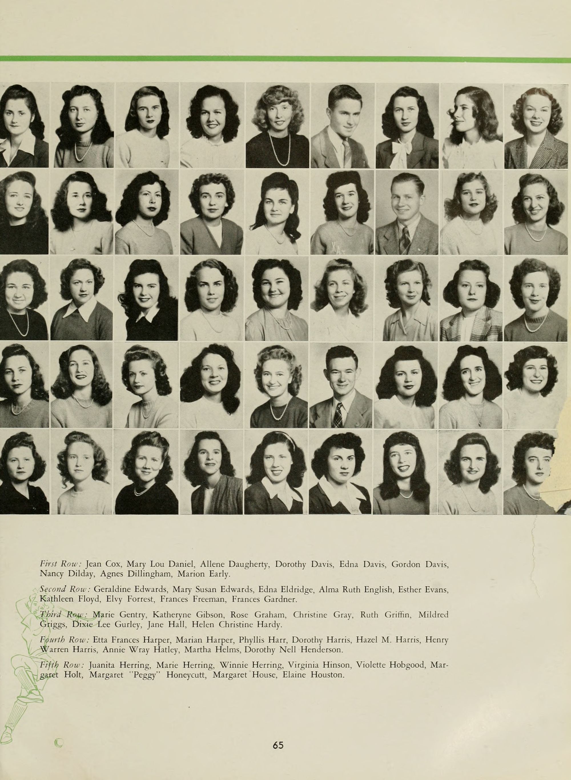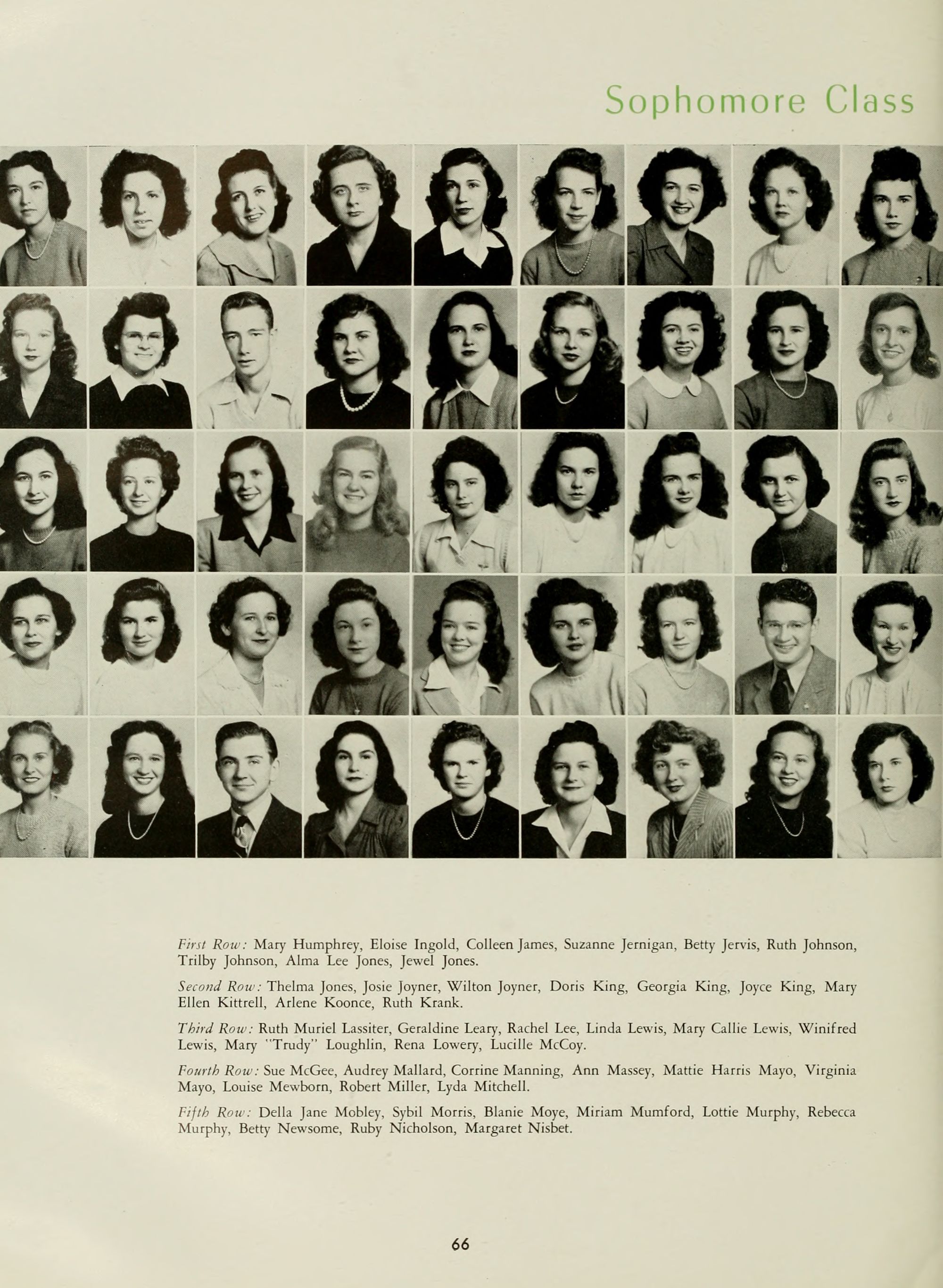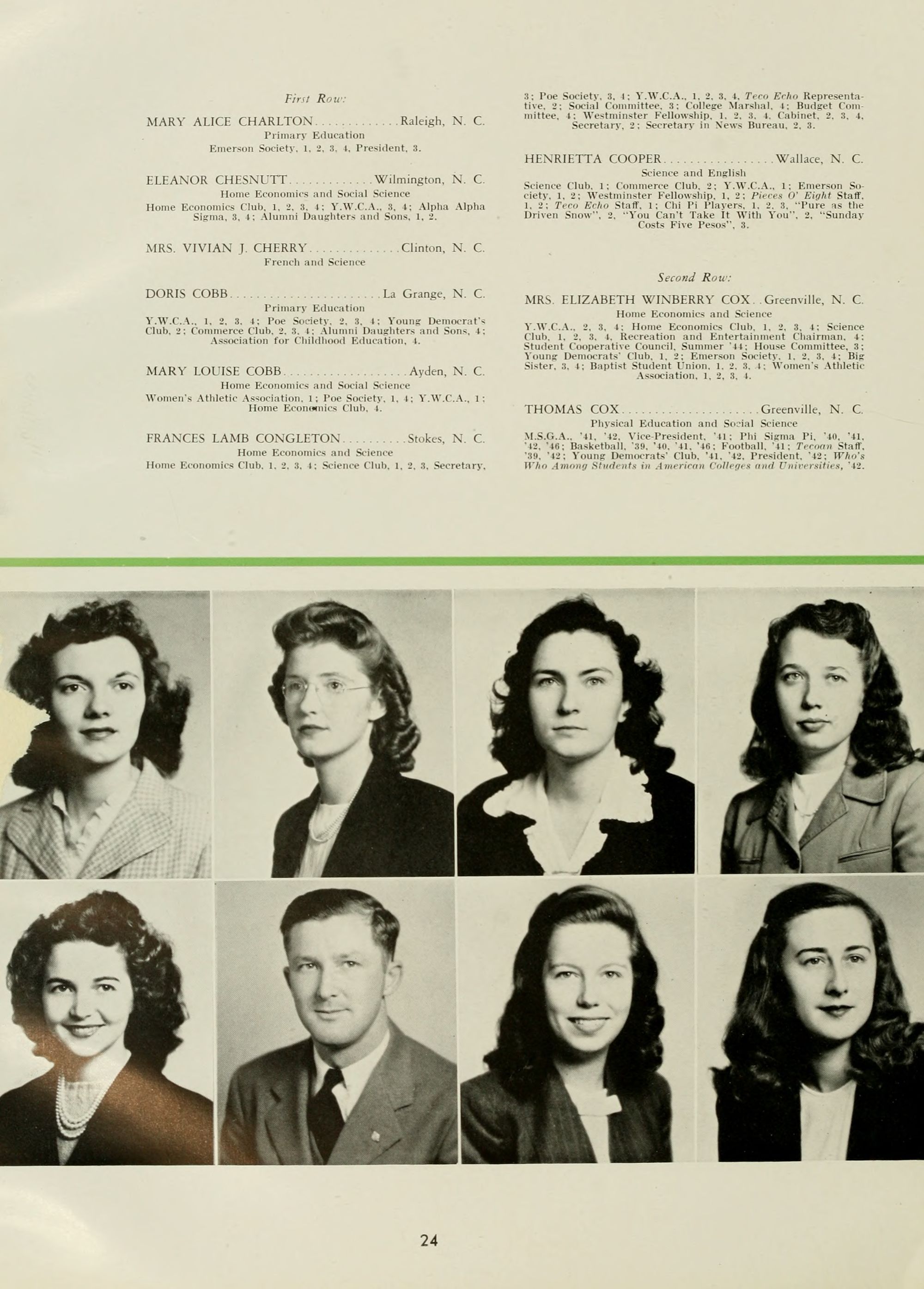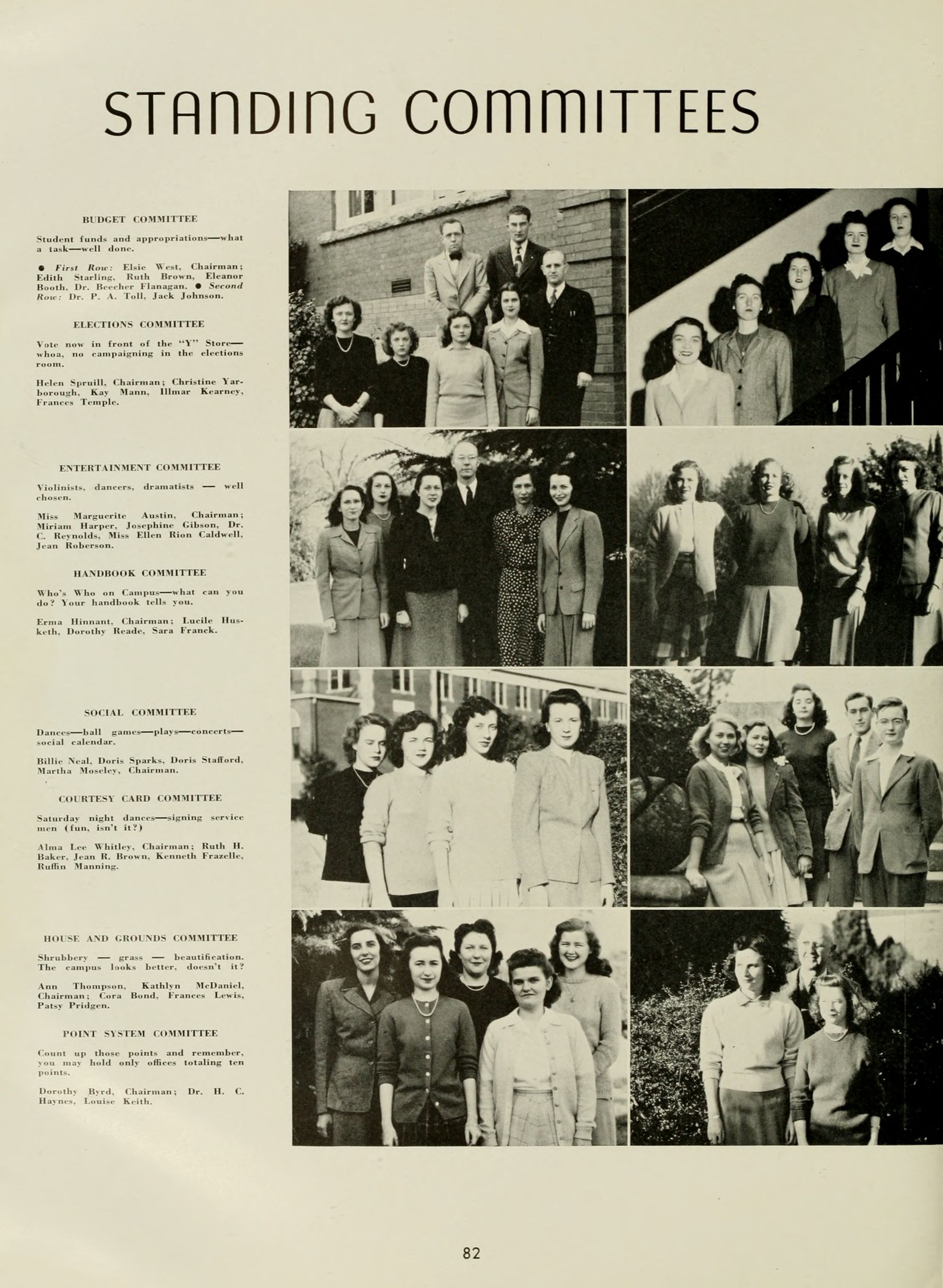 Mary H. Greene, English; Louise Greer, English; Lois Grigsby, English; Joyce Hil Hales, Commerce; Dr. H. C. Haynes, Education and Psychology; E. C. Hollar History; Emma L. Hooper, English.