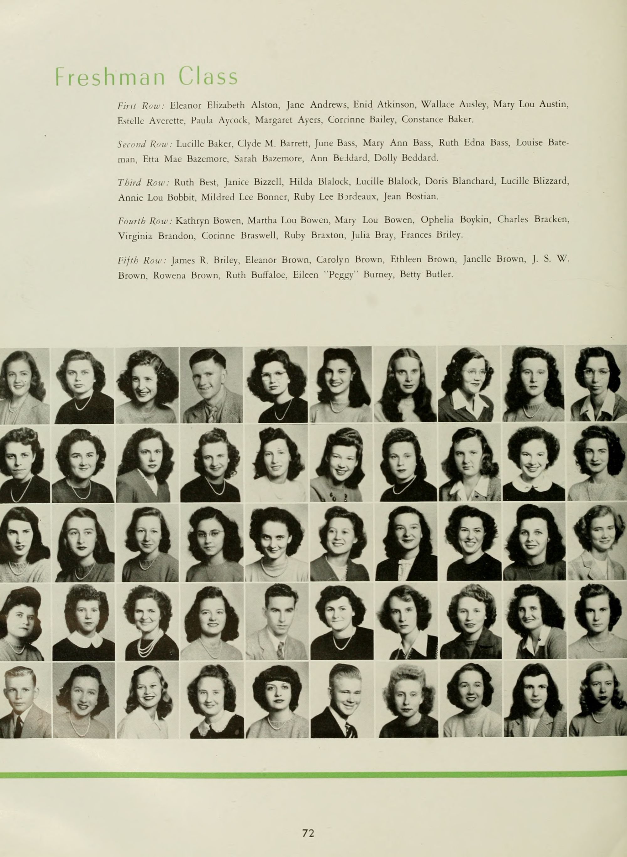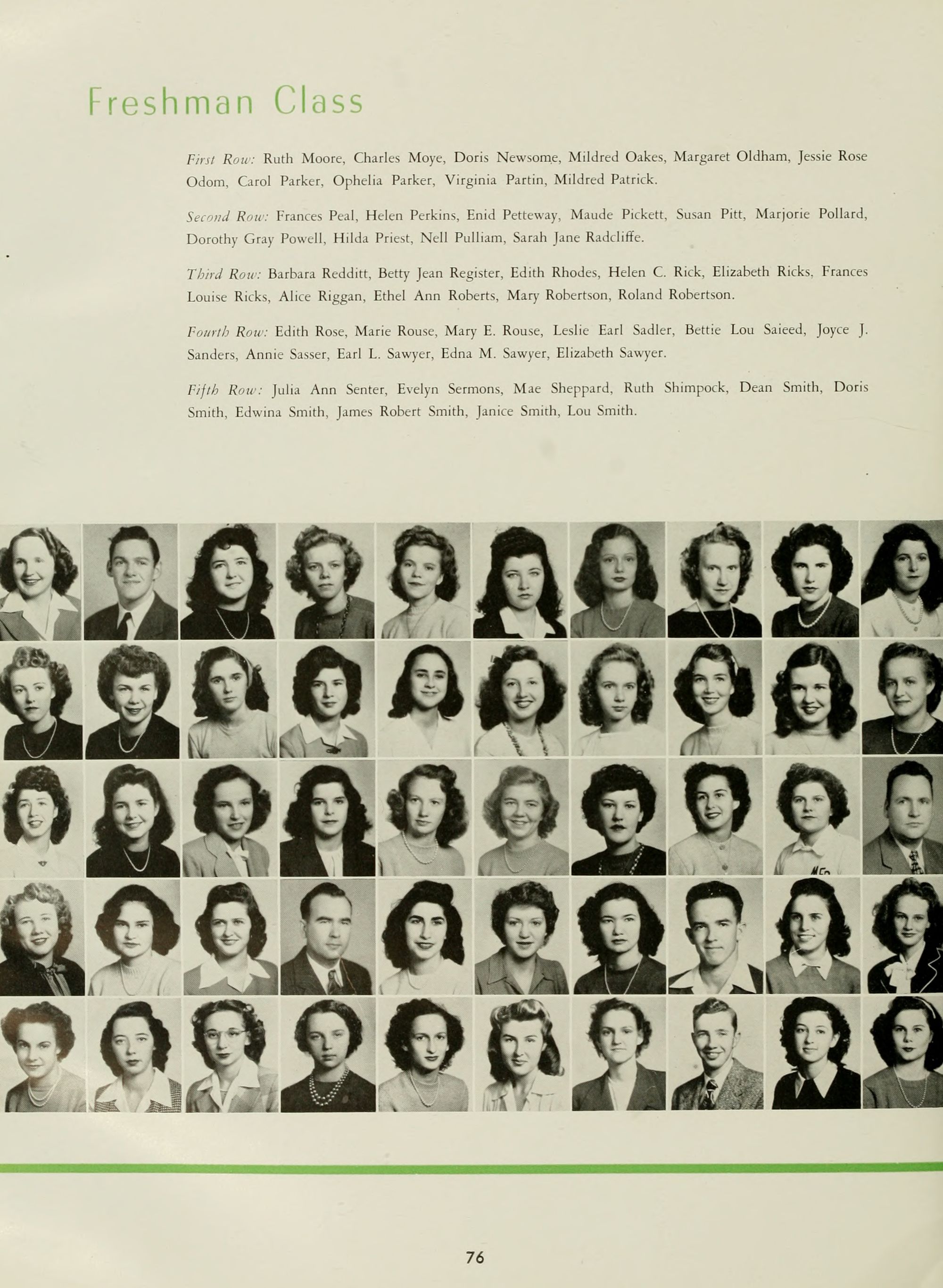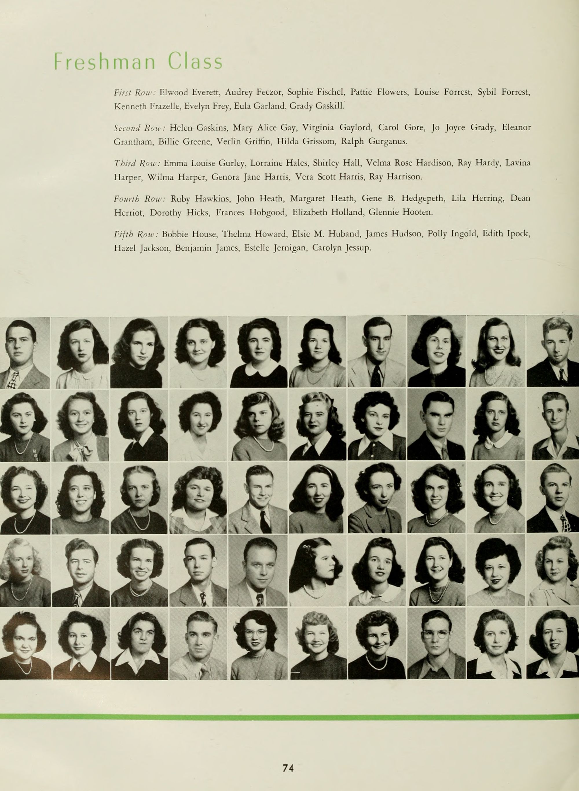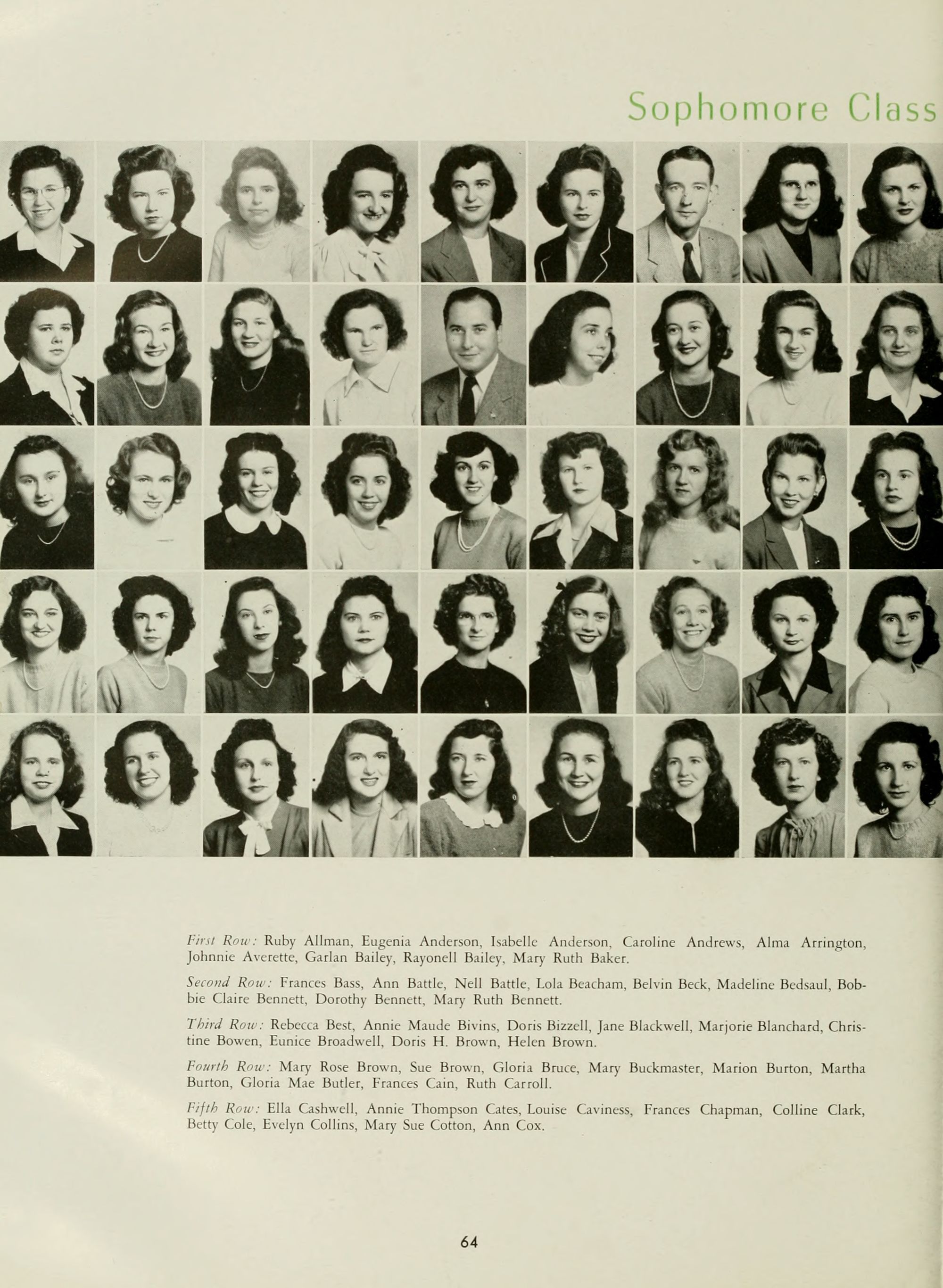 Mary H. Greene, English; Louise Greer, English; Lois Grigsby, English; Joyce Hil Hales, Commerce; Dr. H. C. Haynes, Education and Psychology; E. C. Hollar History; Emma L. Hooper, English.