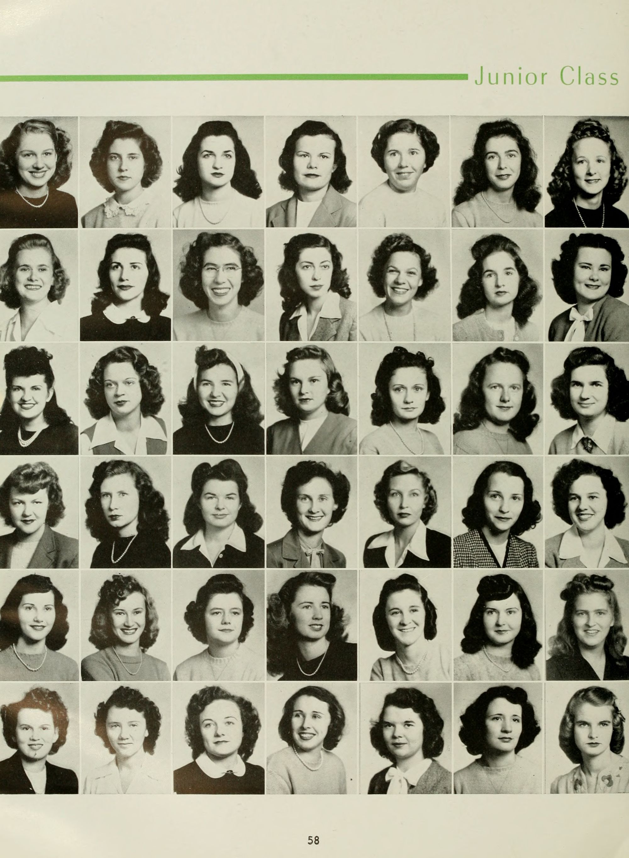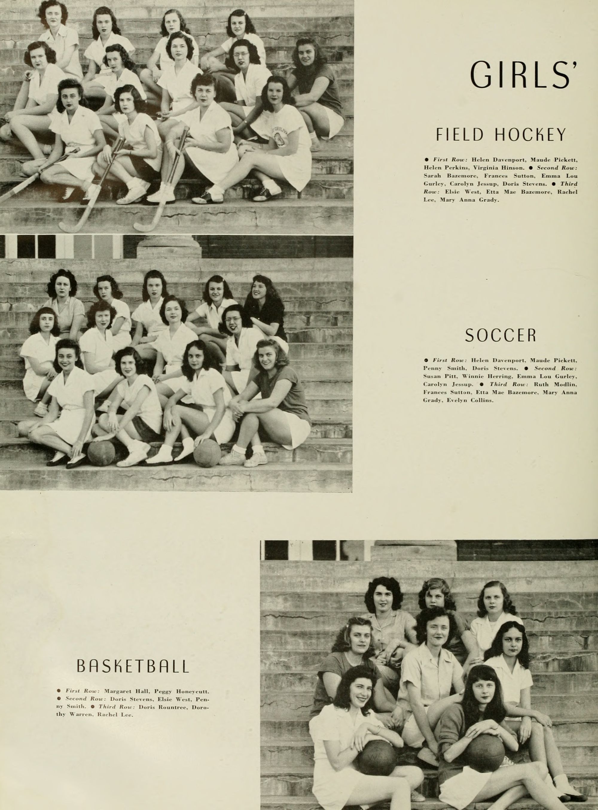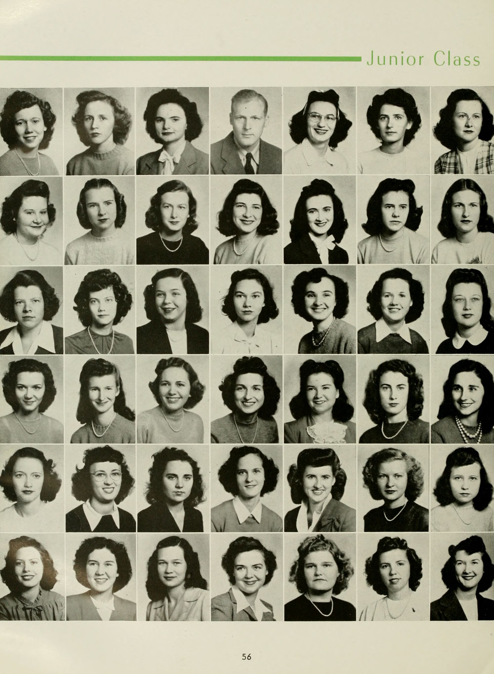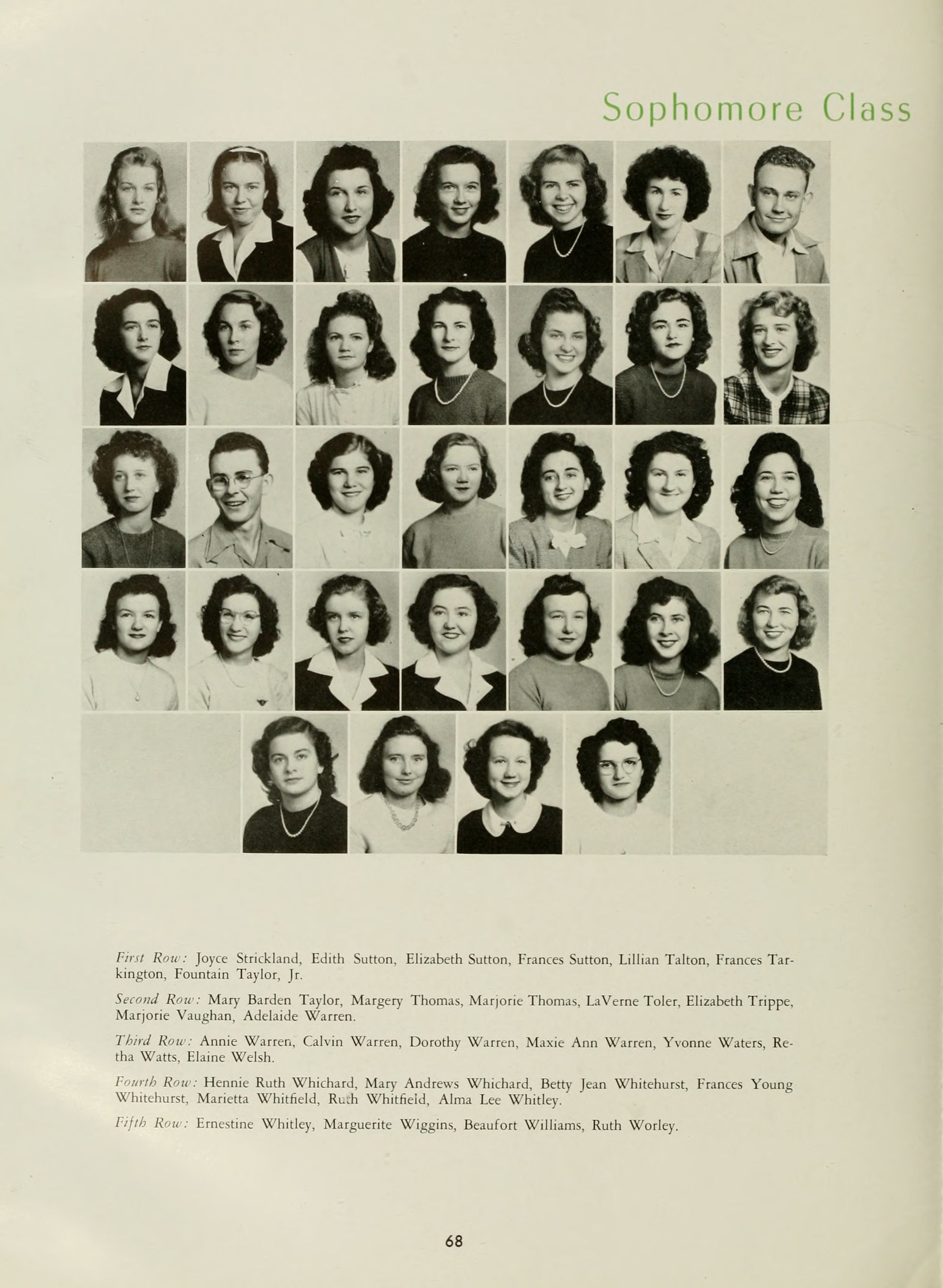 Mamie E. Jenkins, English; Mabel Lacy, Home Economics; Jean M. Lane, Art; Velma Lowe, Commerce; Harold McDougle, Music; W. E. Marshall, History; Dr. Paul A. Murray, History.