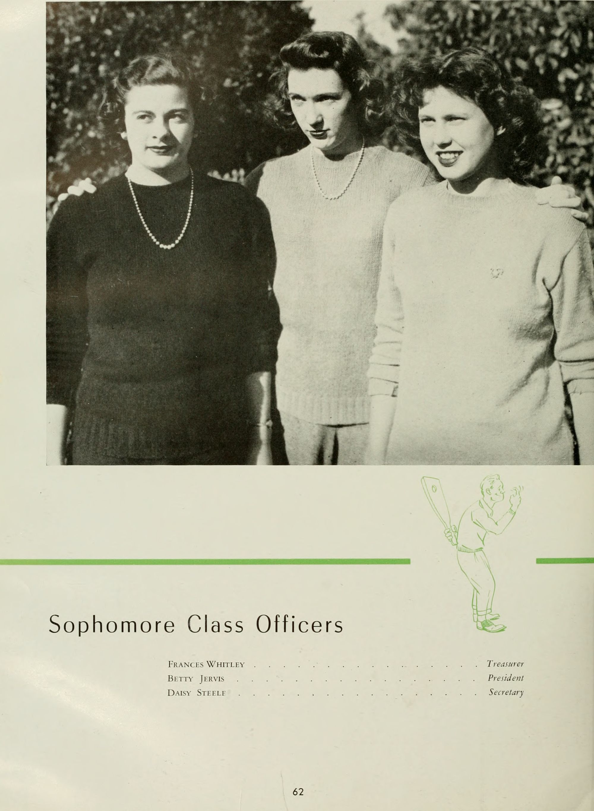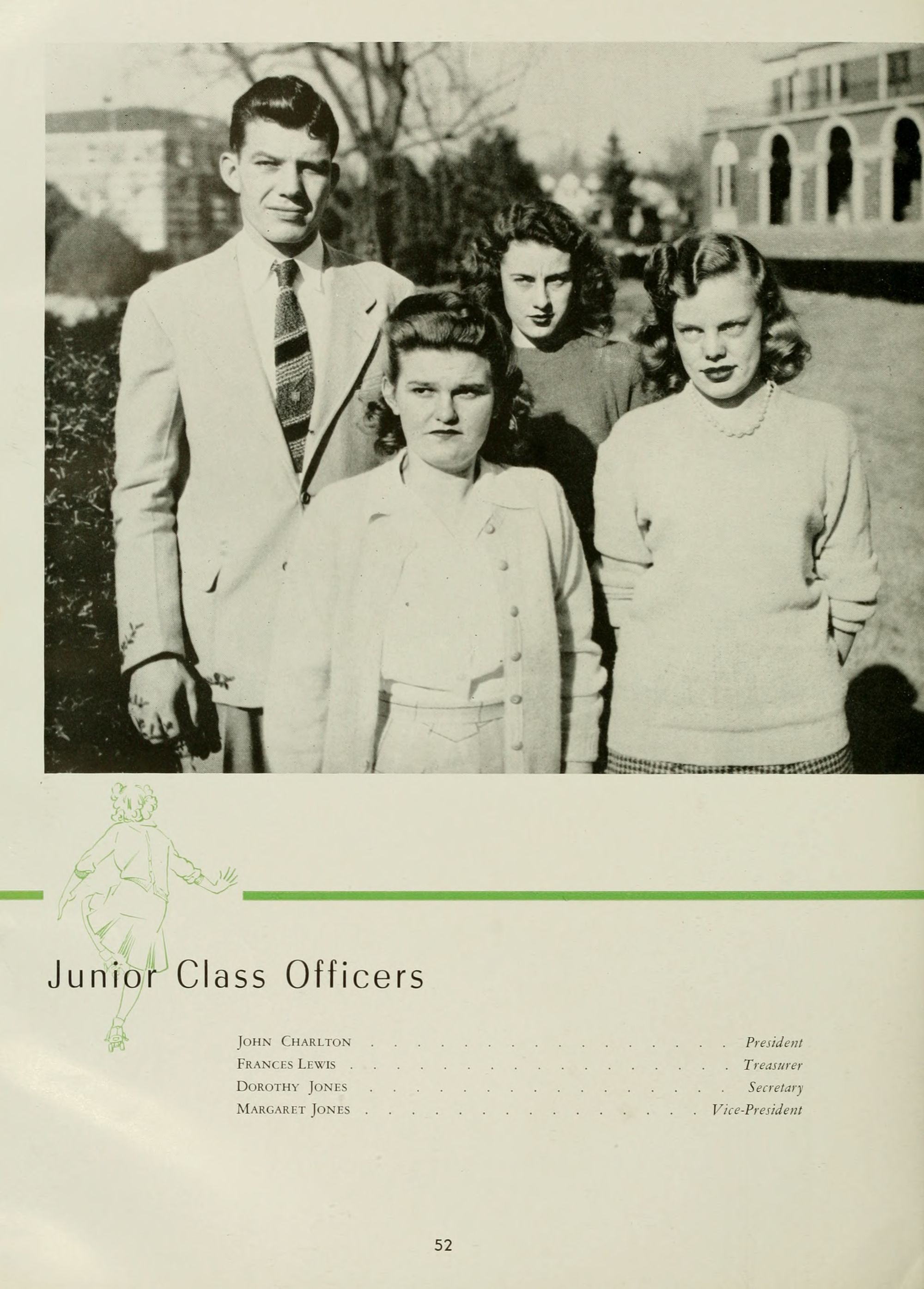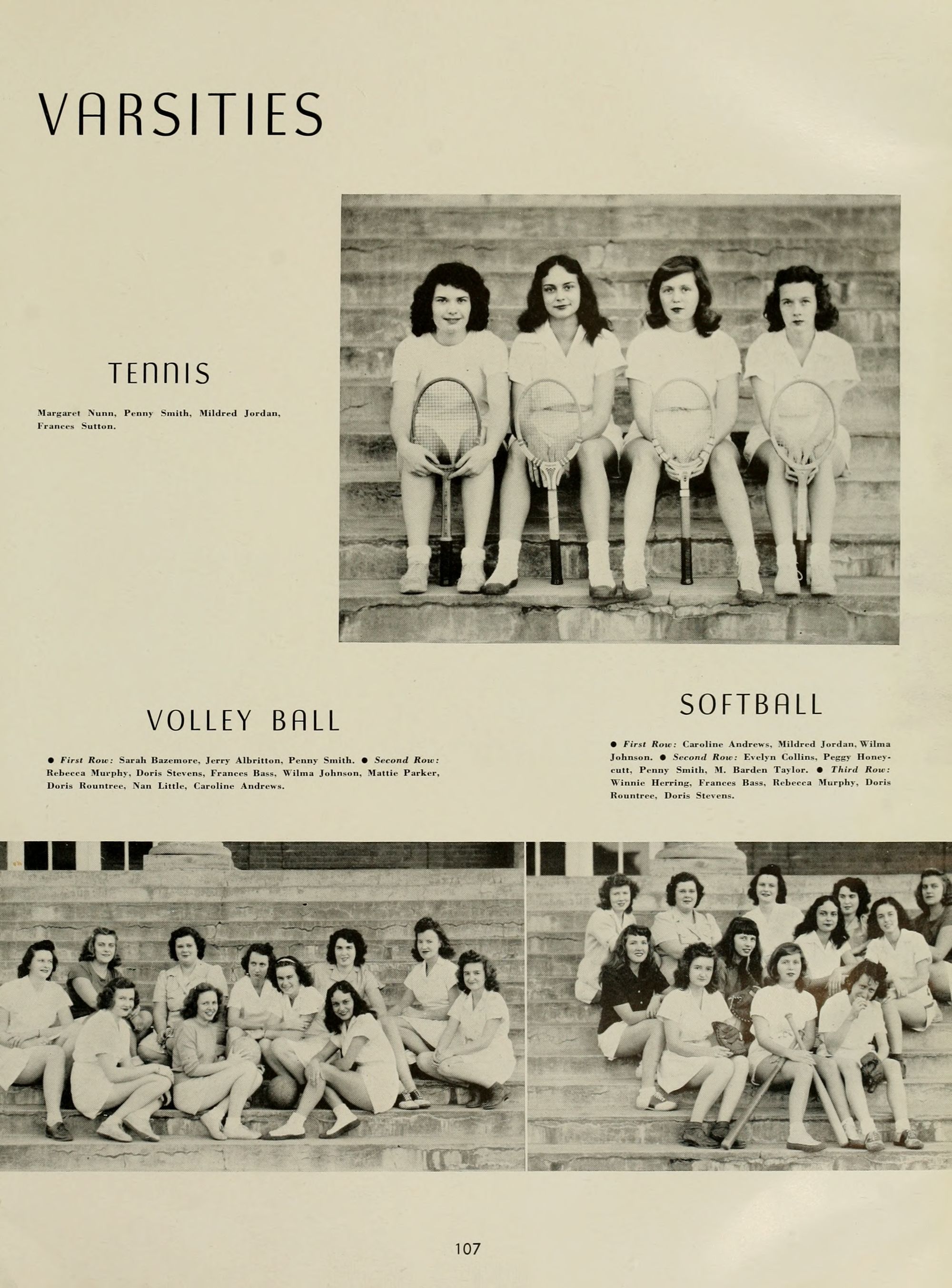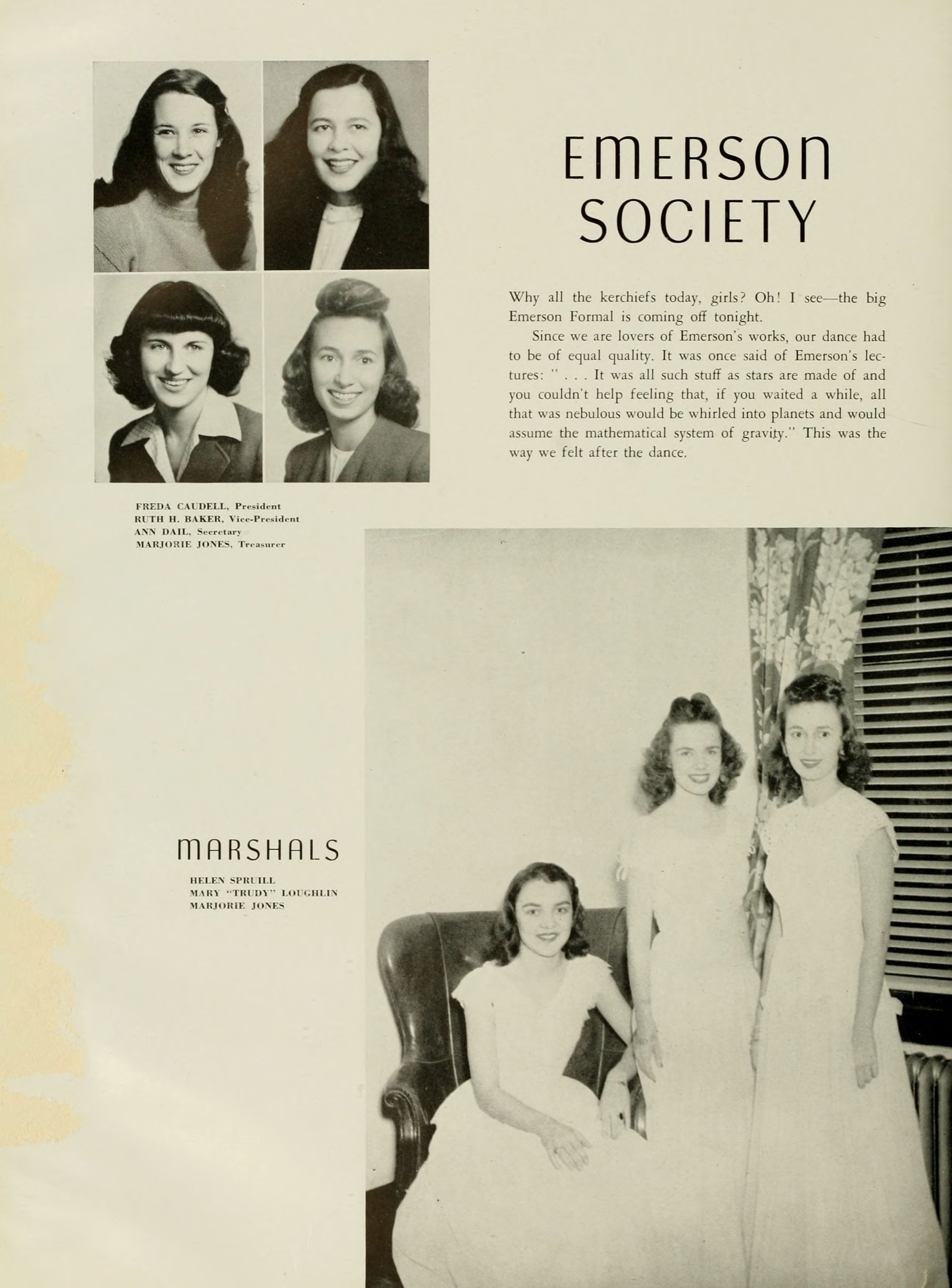 Ruth Garner, Alumni Secretary; Edna M. Loftin, Assistant Secretary; Sallie Nor- wood, Dormitory Counselor; Mildred Owens, Bookkeeper; Kathleen Venters, Dormi- tory Housekeeper; Ruth White, Assistant Dean of Women; Stella Grogan, Super- intendent of the Infirmary.