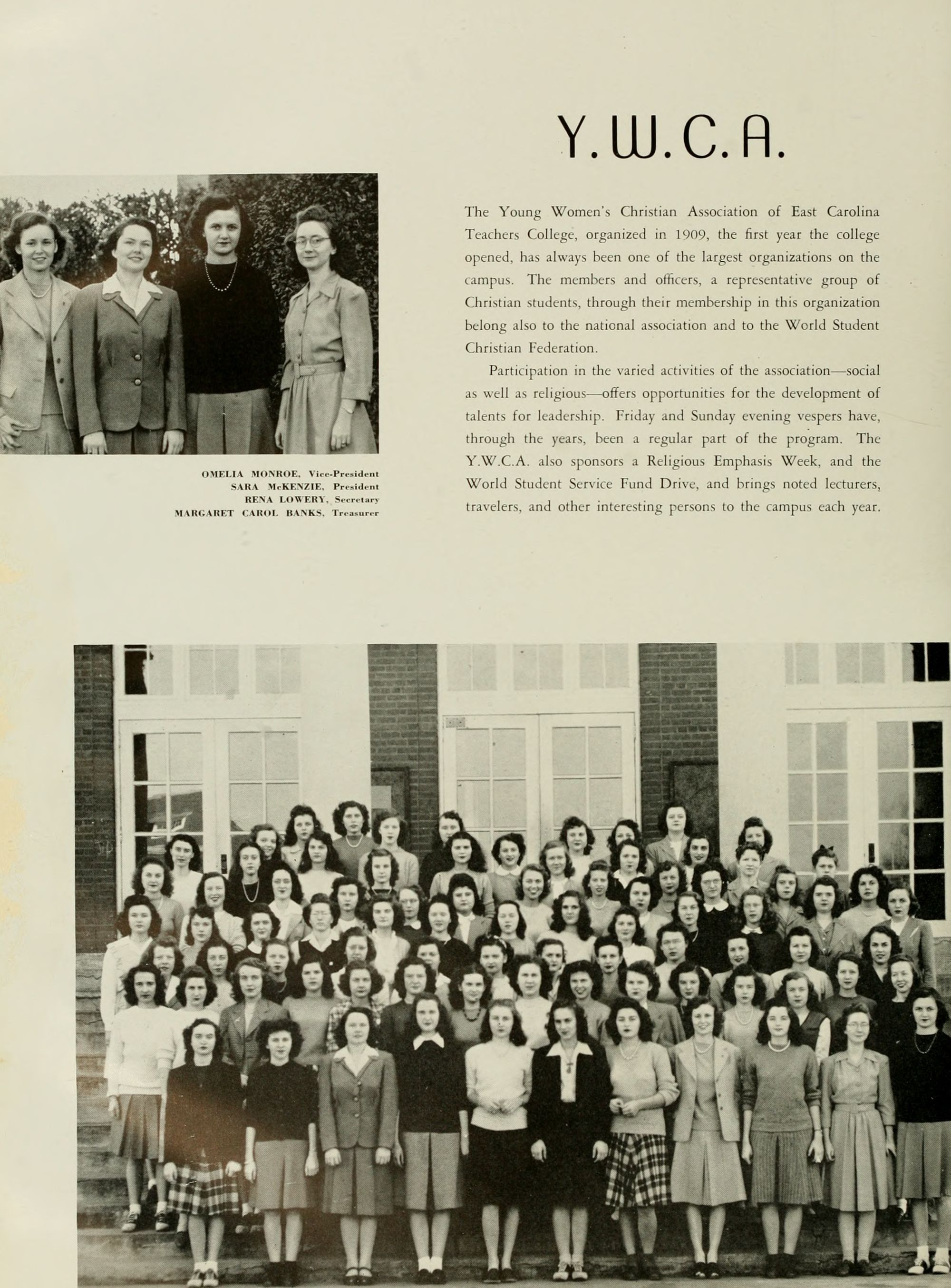 We shall always remember Mr. M. L. Wright as an educator and a stu- dent of human needs. A servant of East Carolina Teachers College, he was always alert for new opportunities to enhance and expand the insti- tution's services to the masses of North Carolina and the nation. That is progress; that is achievement. With him, public service was a passion, an ideal that must never be overshadowed by personal ambitions. The beautification of our campus, a living memorial, will always be looked upon in deep gratitude to our beloved teacher and adviser.