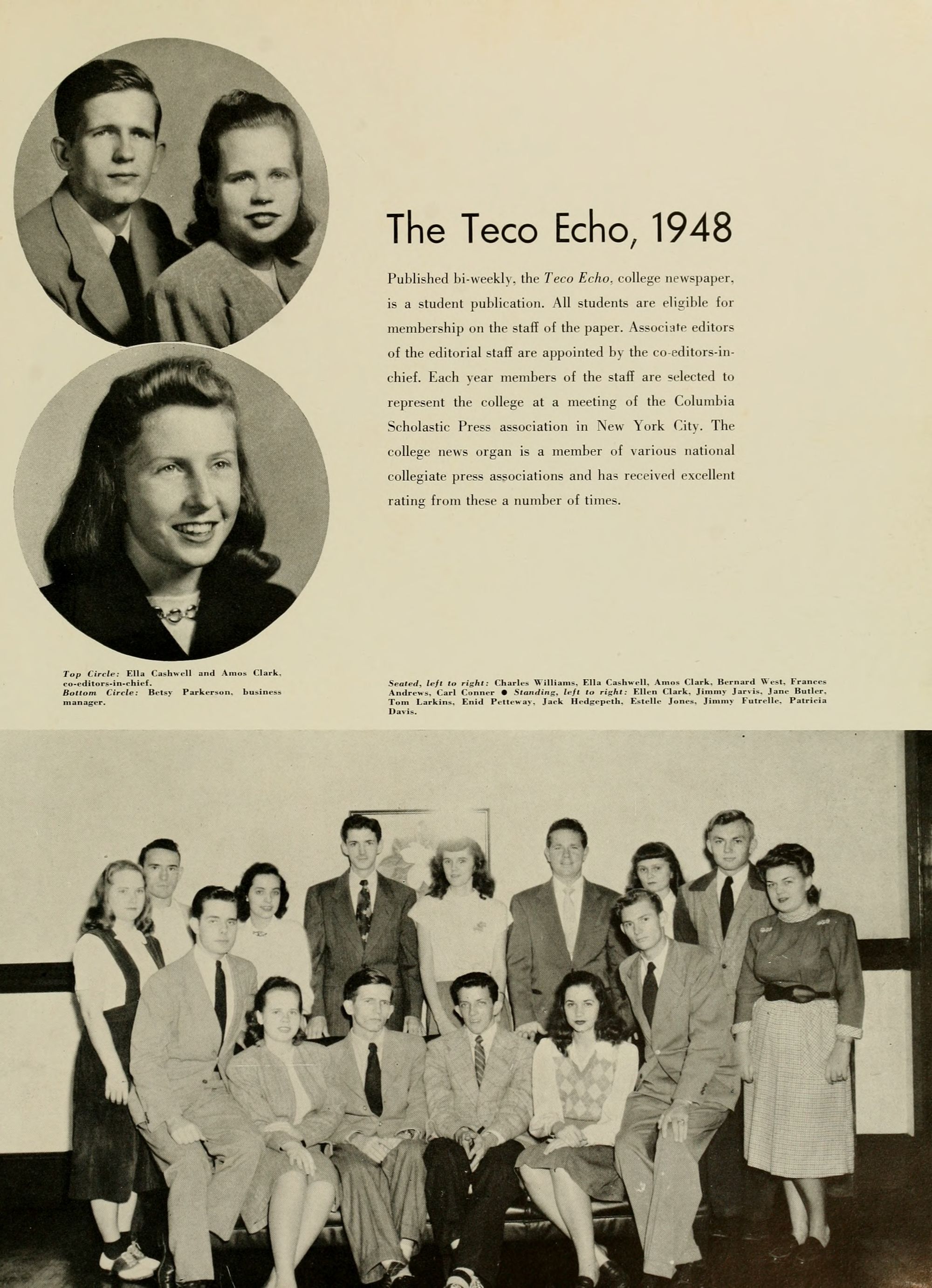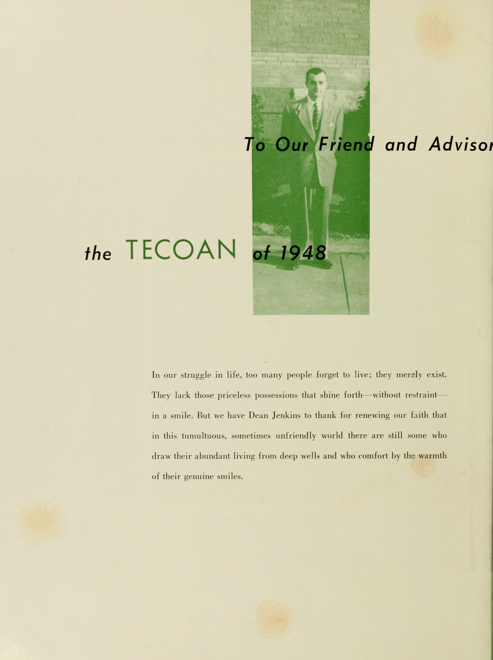 May the 1948 TECOAN bring back memories of four years well spent. To the seniors, may your steps of progress be firm and sure and not as footprints in the shifting sands of time.