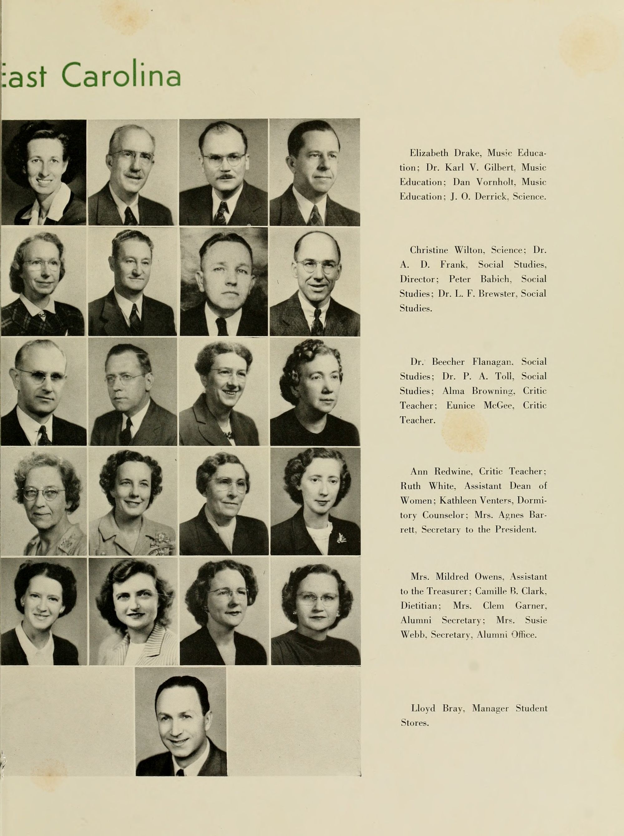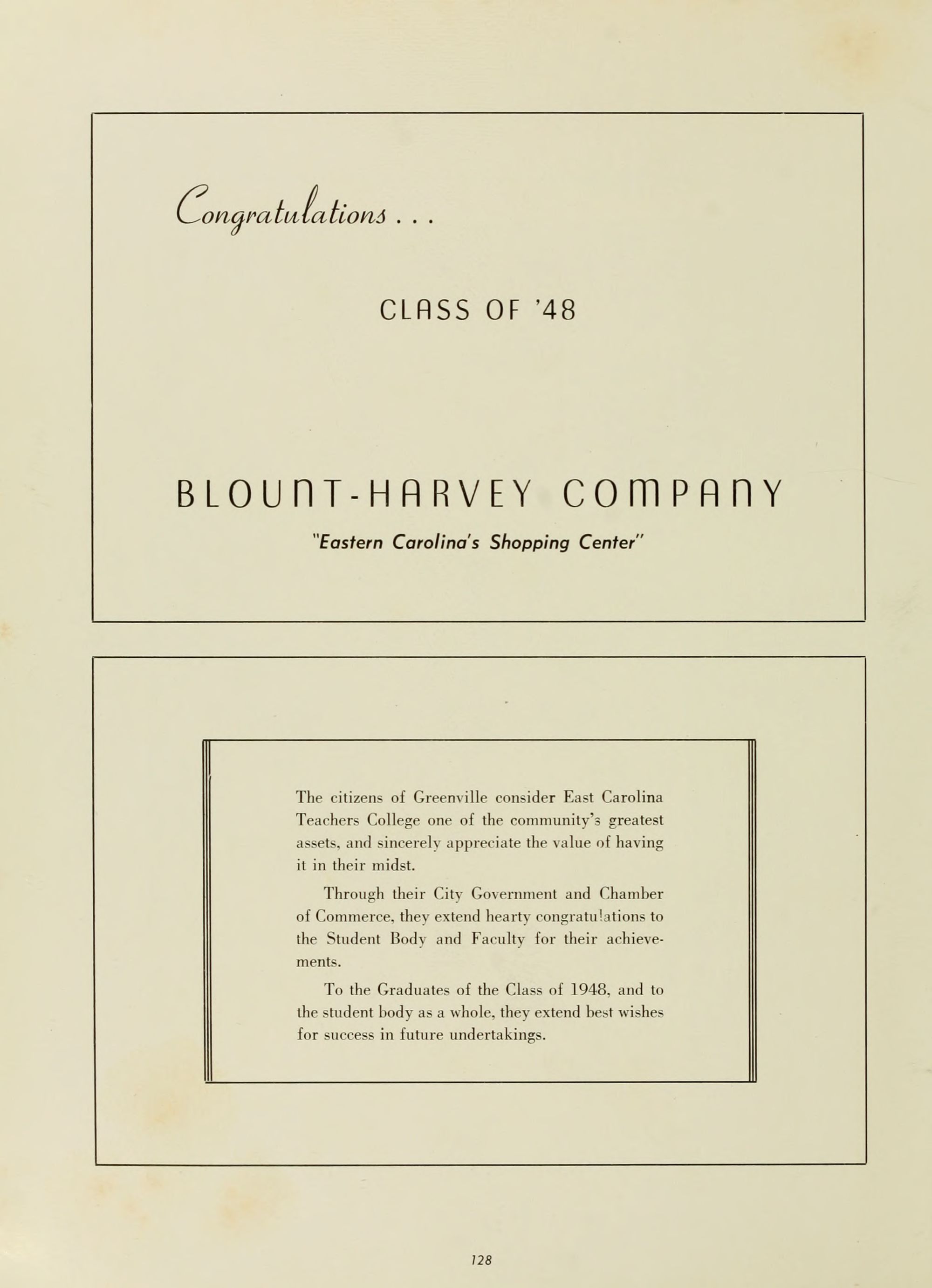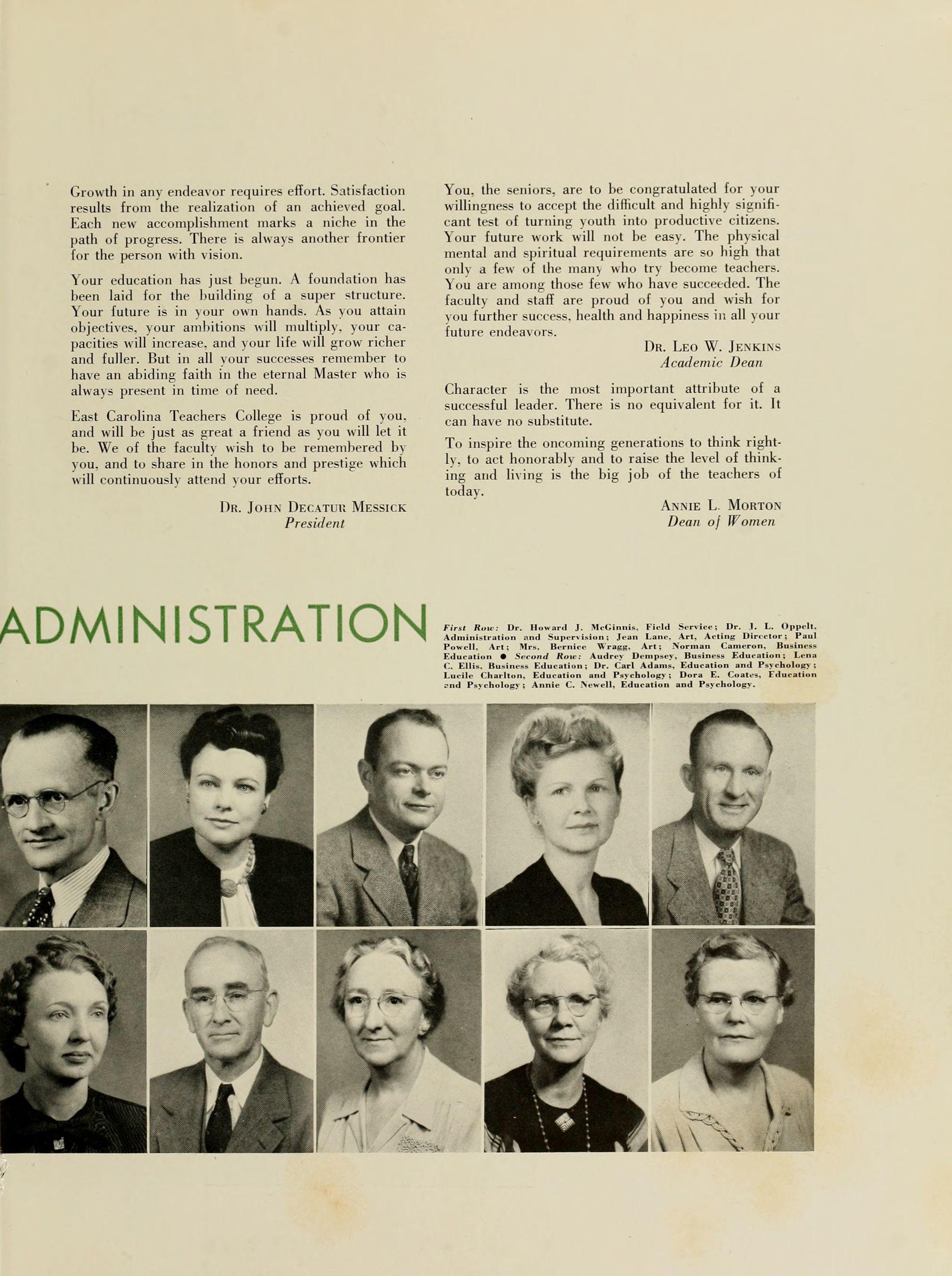East Carolina Teachers College is proud of you, and will be just as great a friend as you will let it be. We of the faculty wish to be remembered by you, and to share in the honors and prestige which will continuously attend your efforts.
